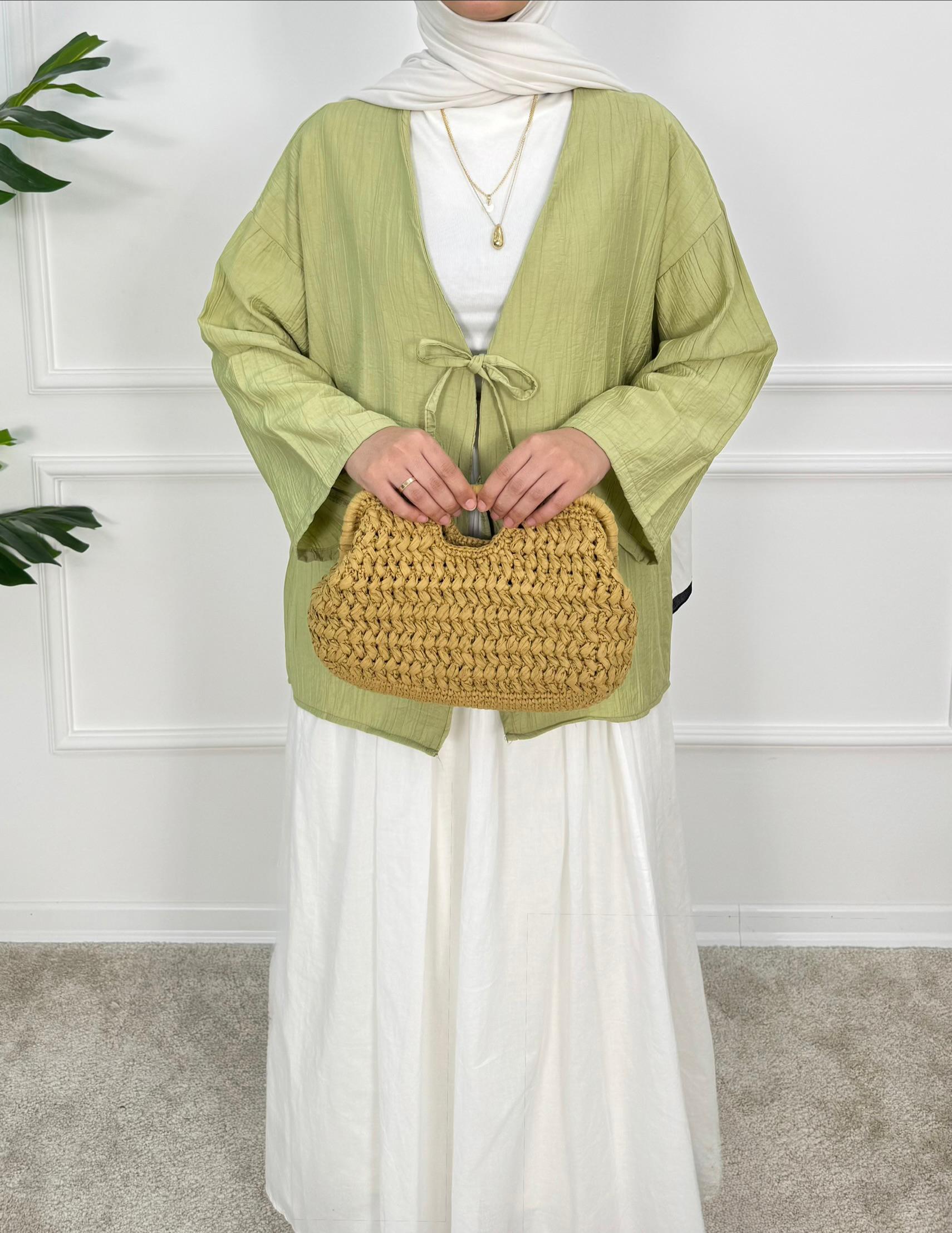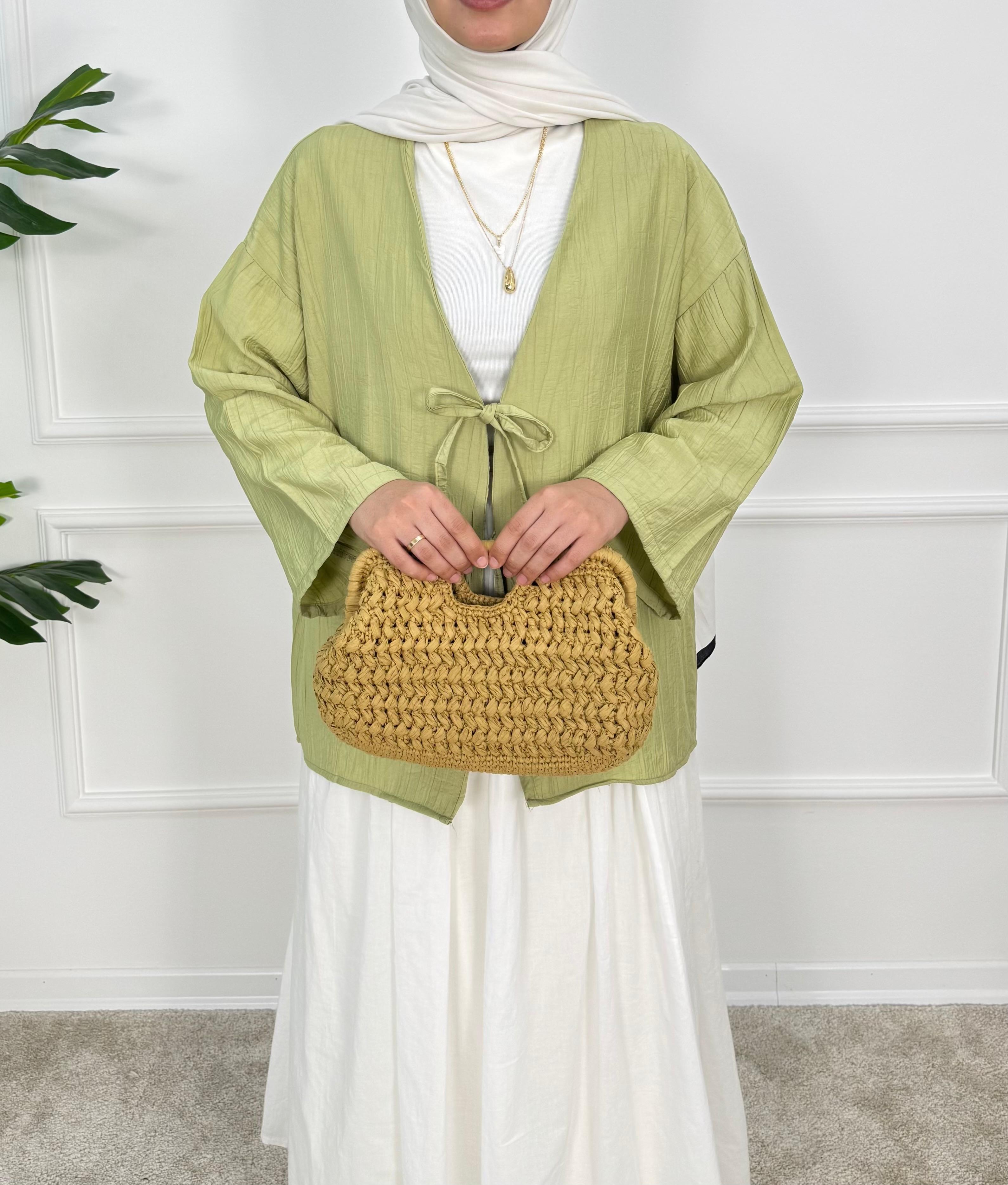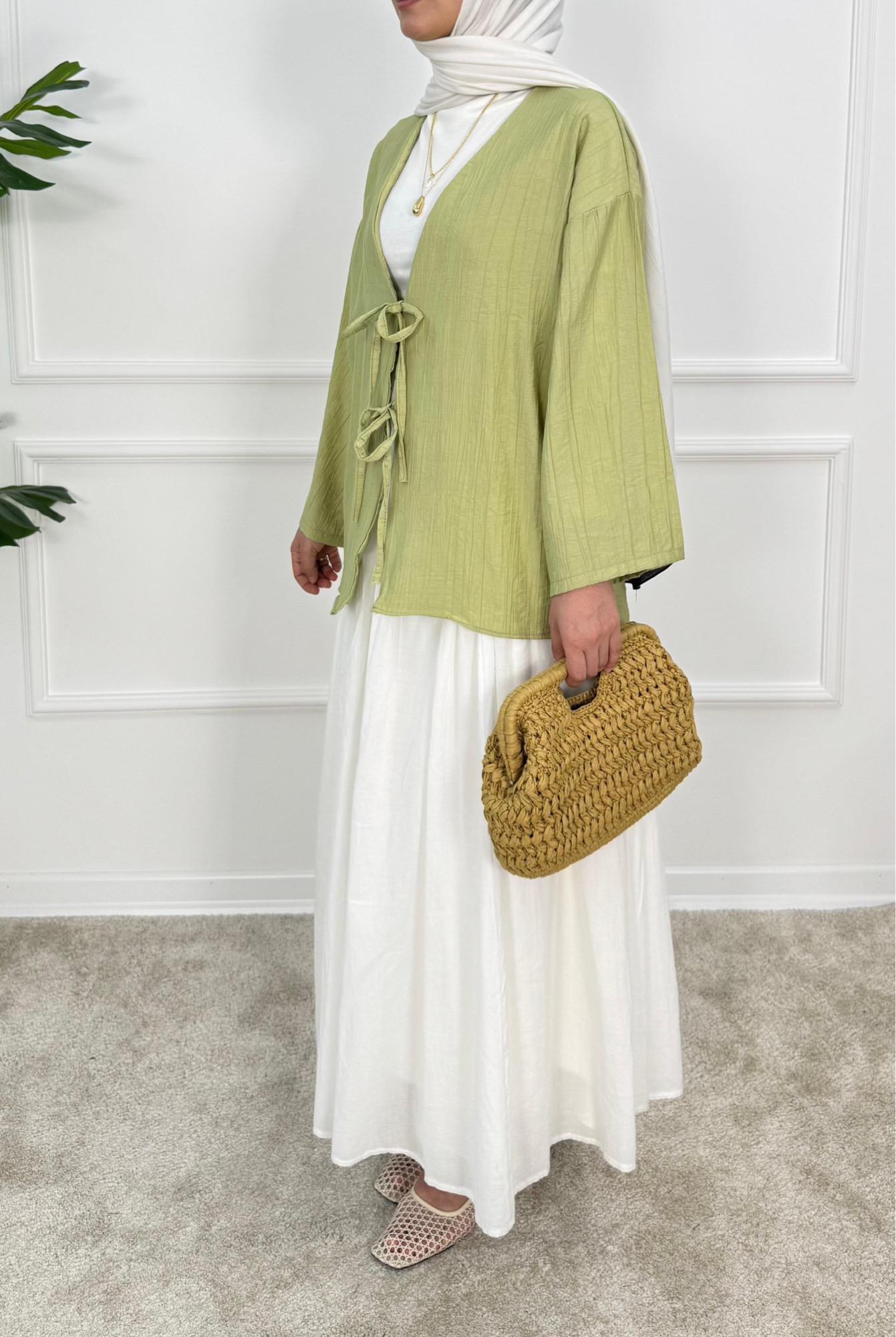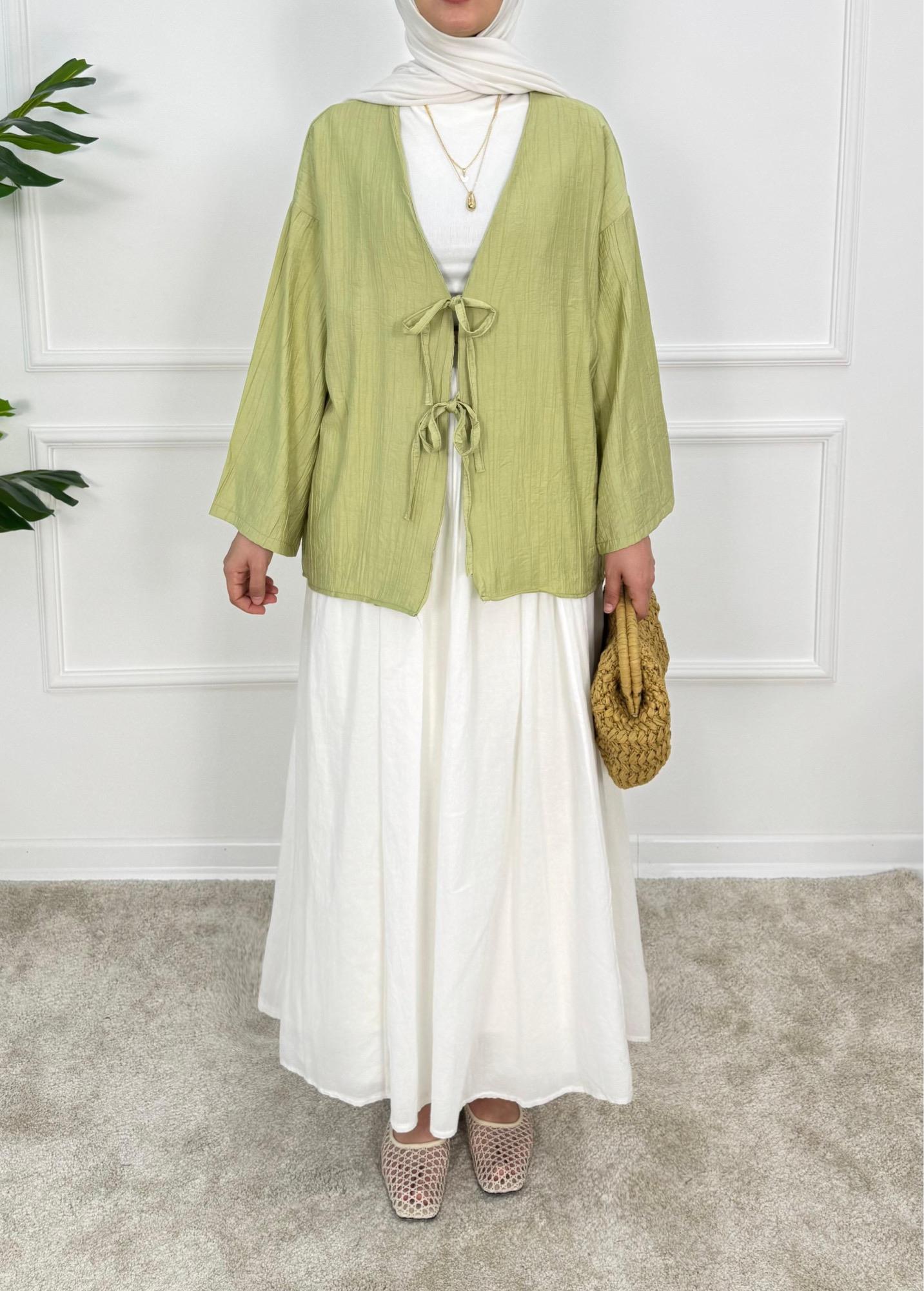 1413- çilek kumaş bağlamalı kimona -yeşil (1413)