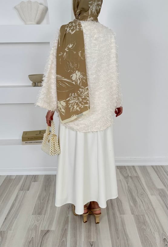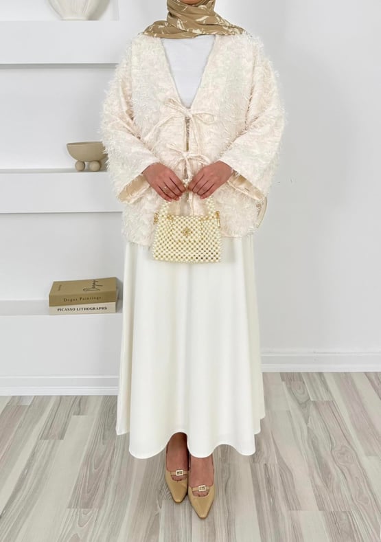 1417- saçaklı bağlamalı kimona -krem (1417)