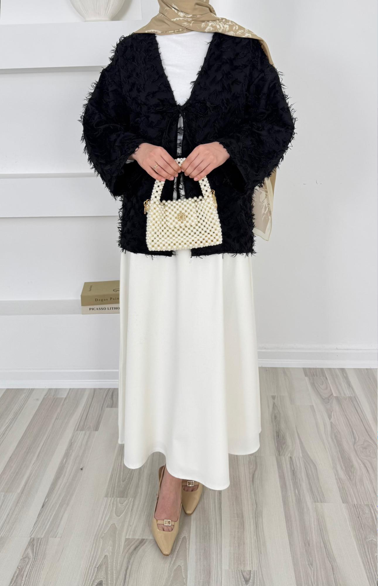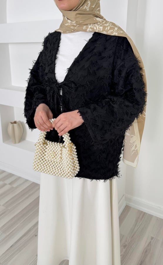 1417- saçaklı bağlamalı kimona -siyah (1417)