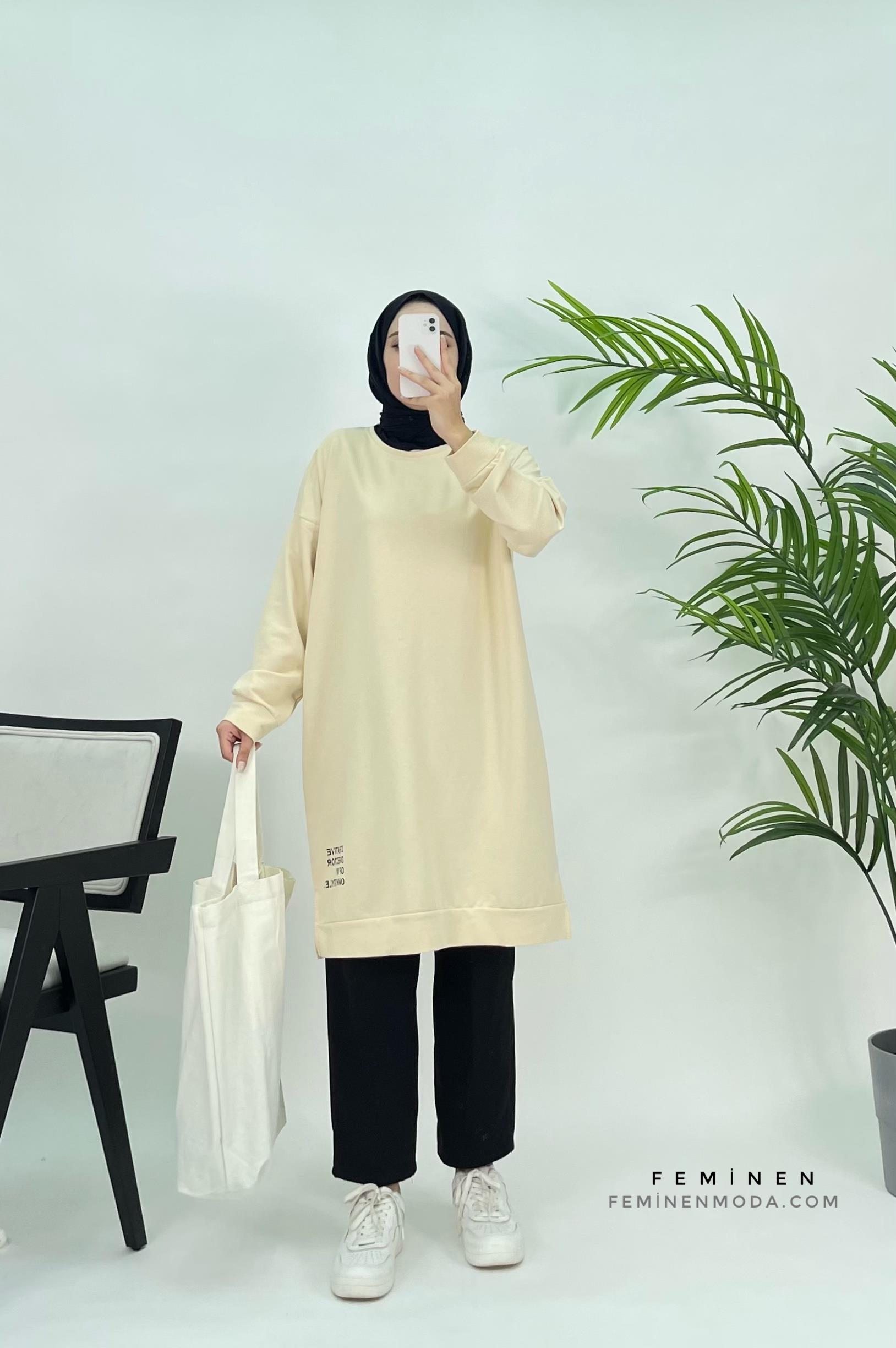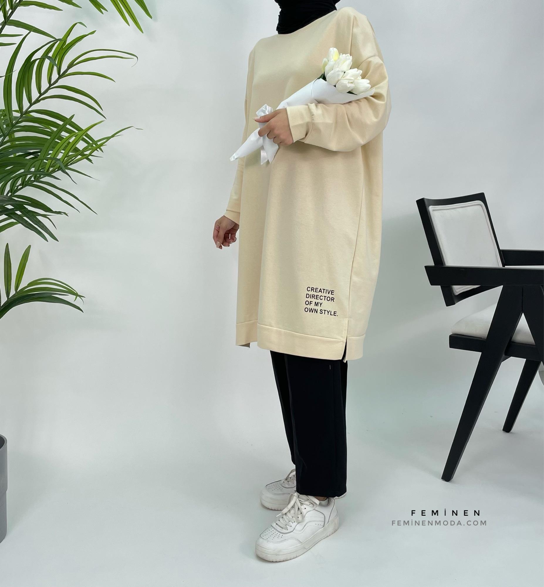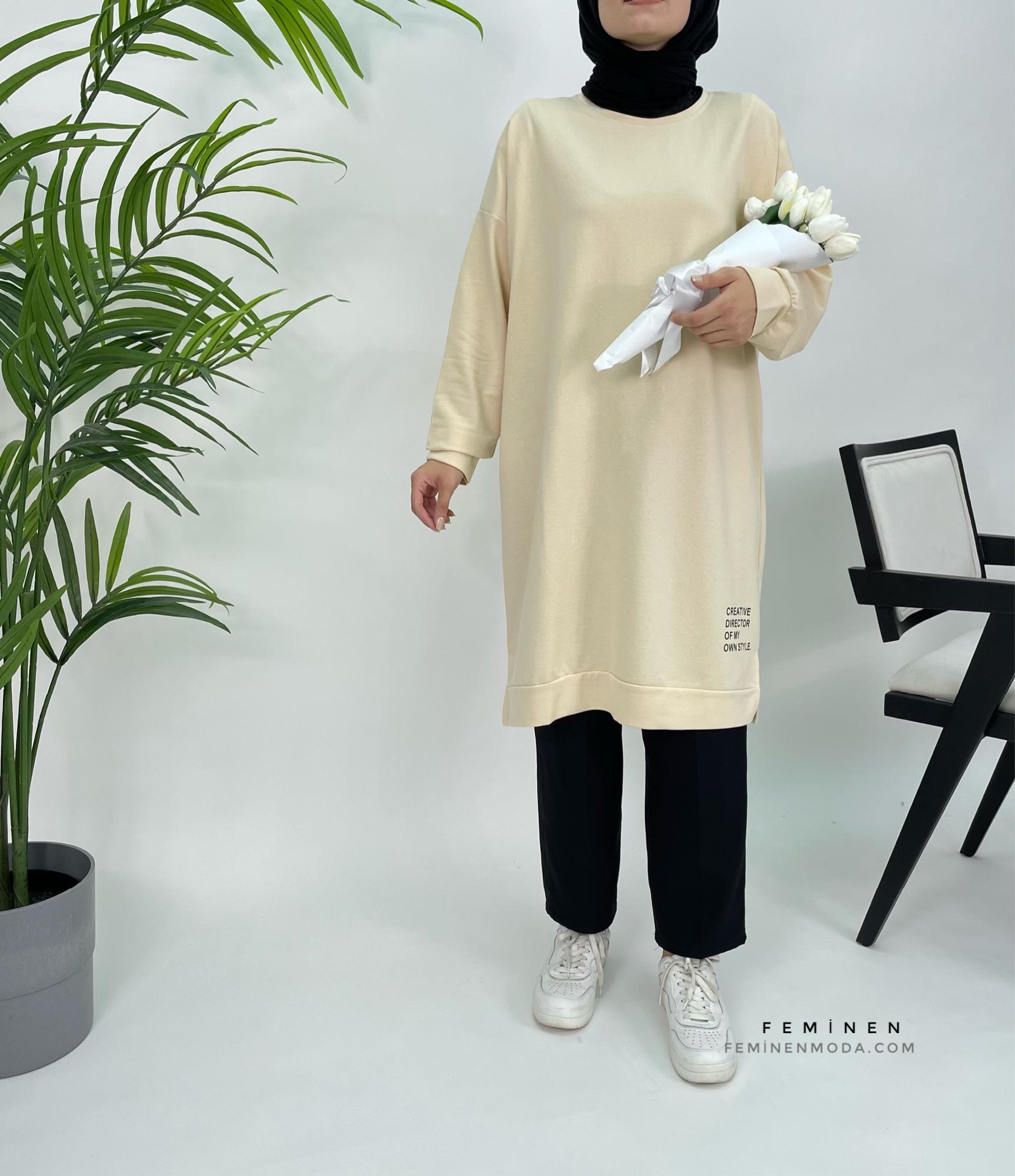 142 F57+iki iplik kumaş-eteği baskılı yırtmaçlı tunik-taş (142)