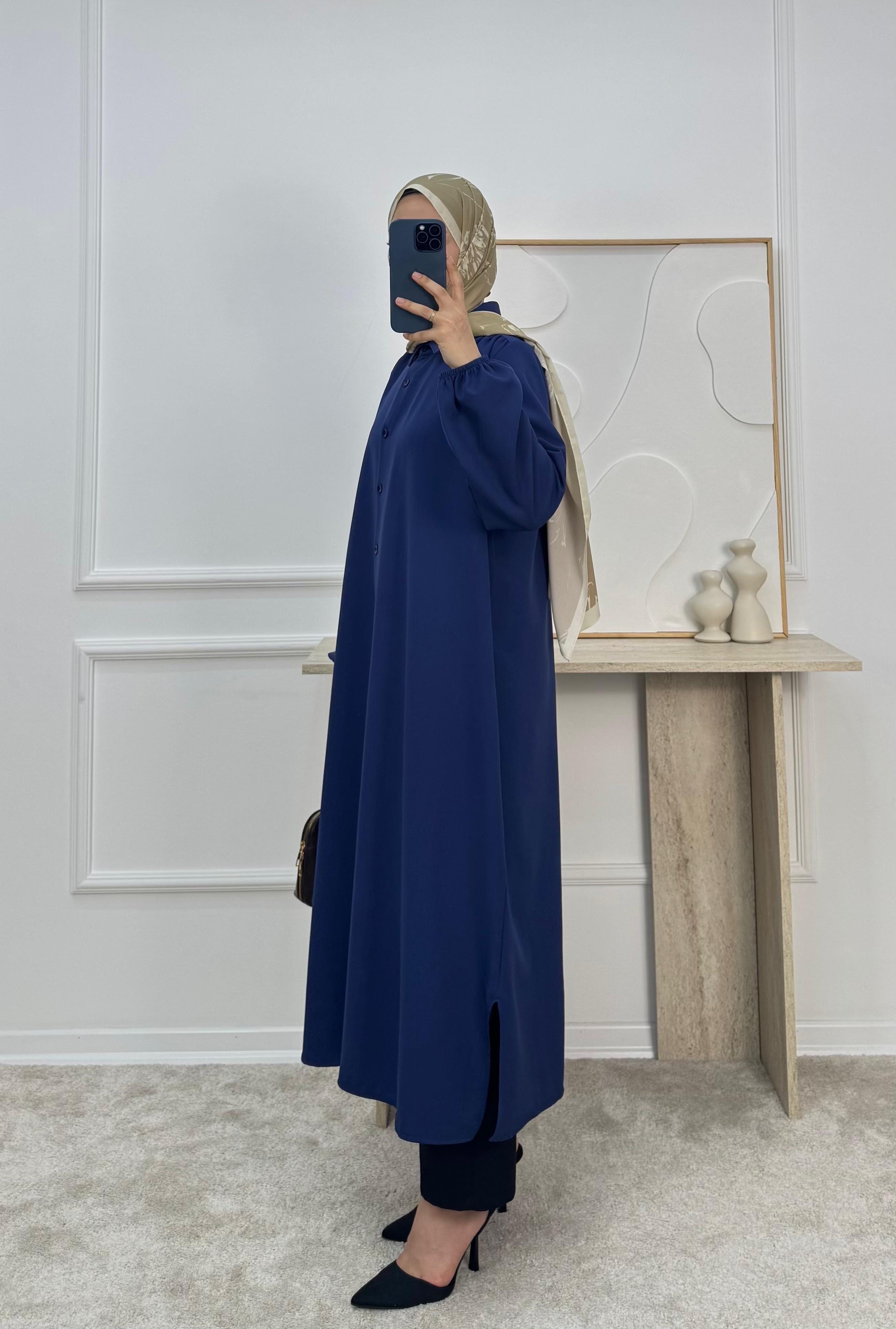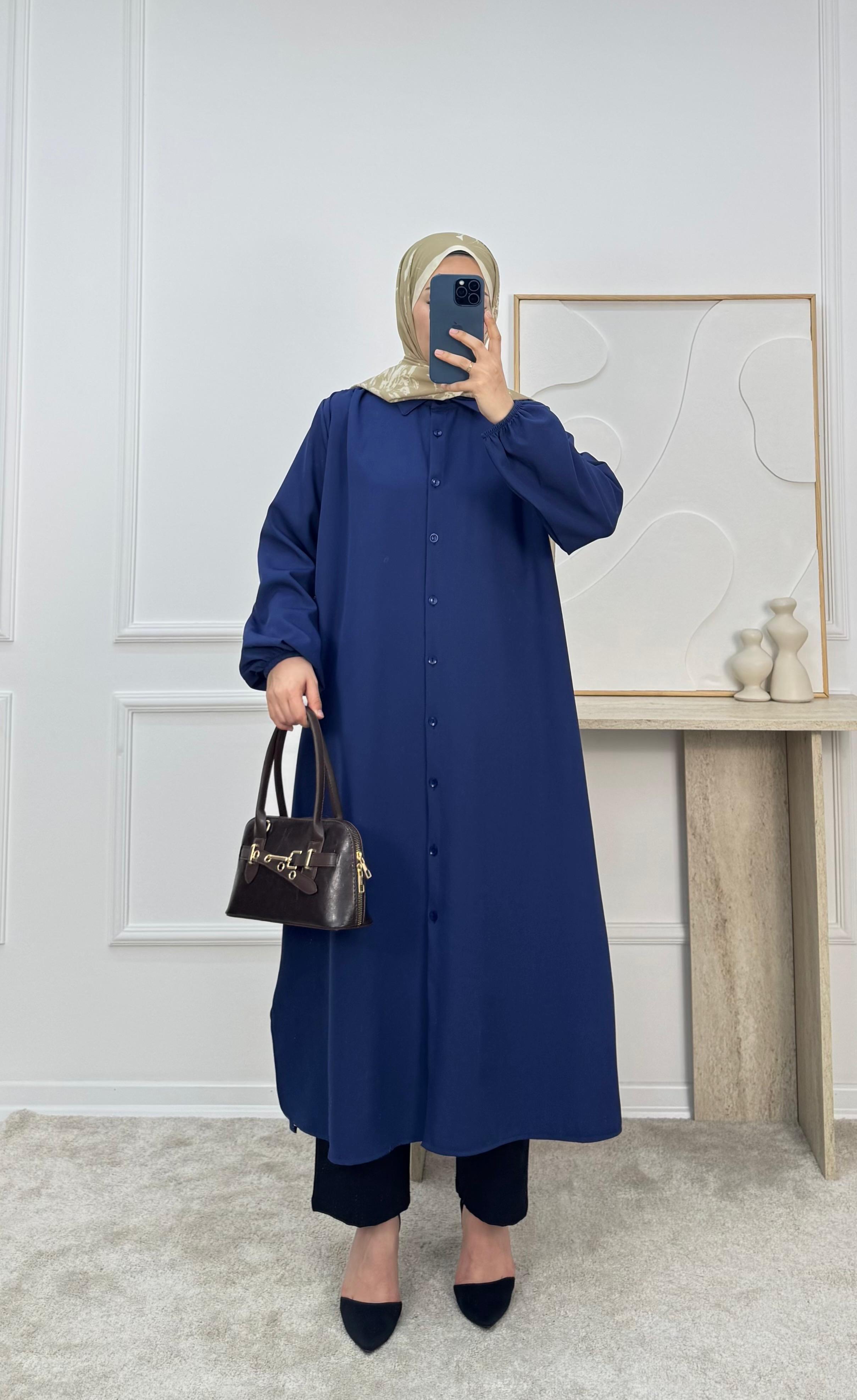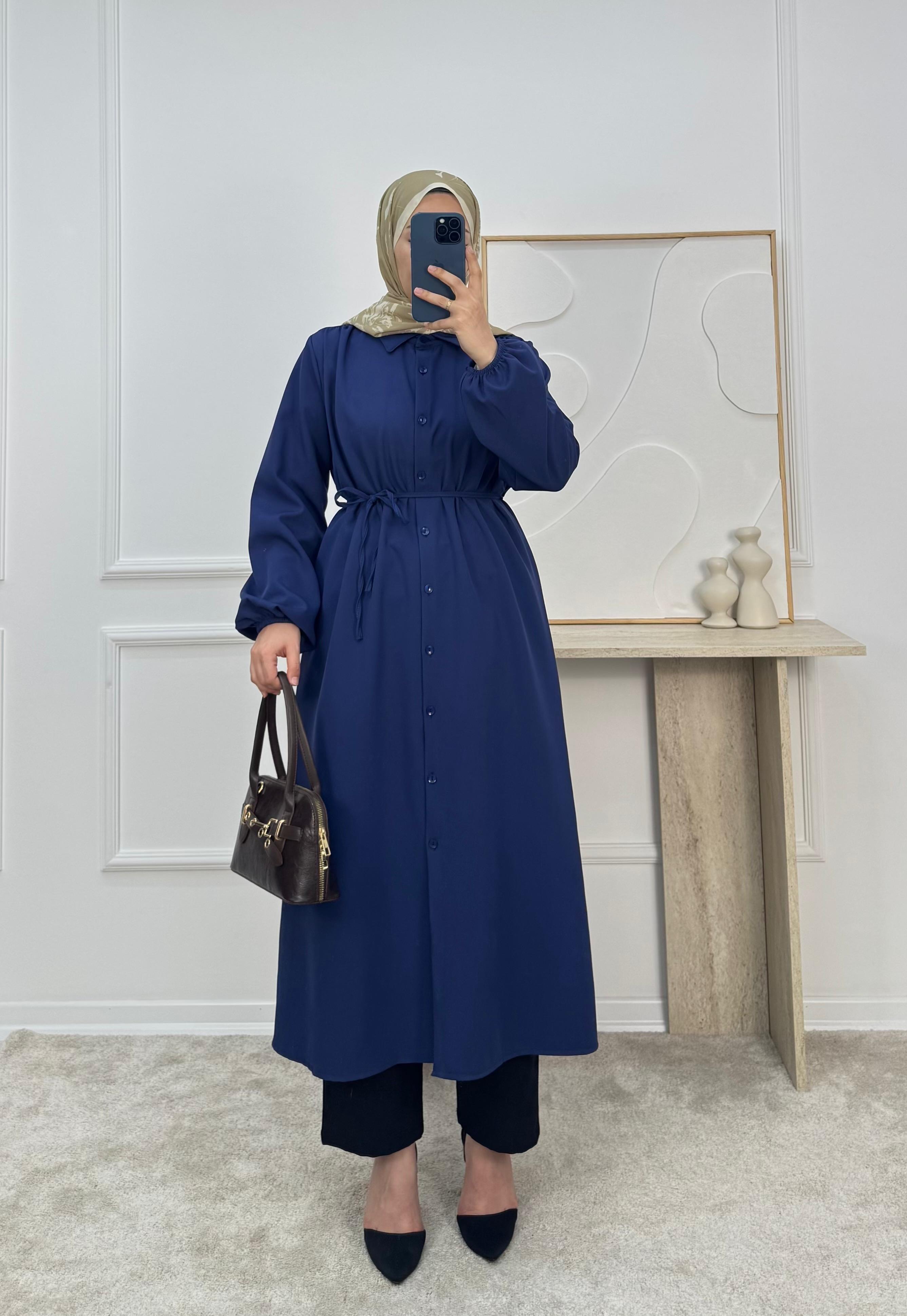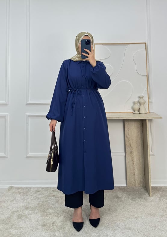 1448-dabıl kumaş bağlamalı uzun tunik-lacivert (1448)