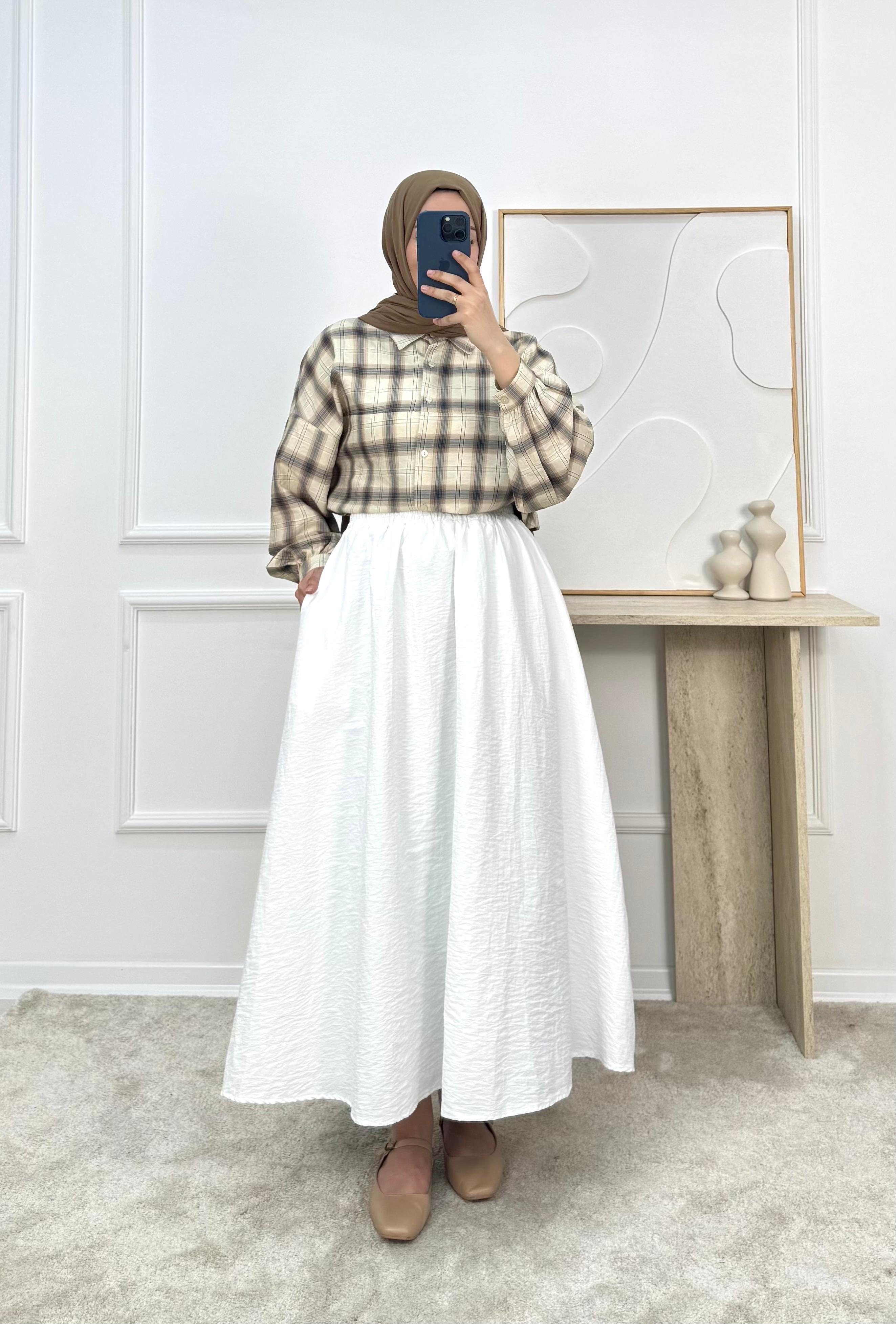 1450-paraşüt kumaş cepli etek-beyaz (1450)