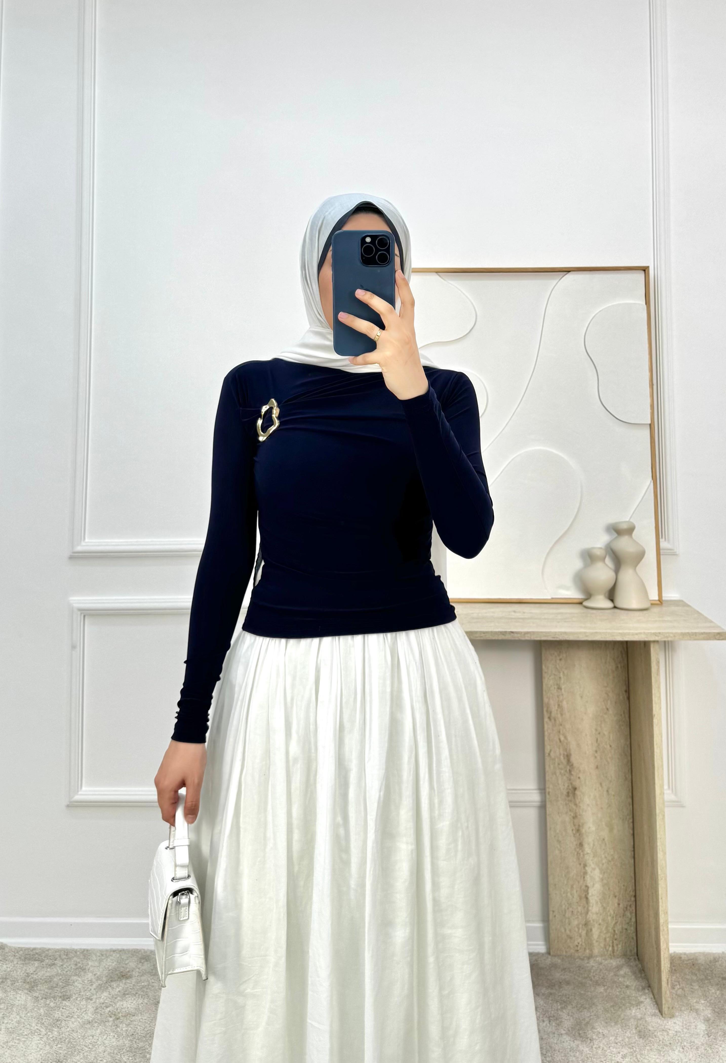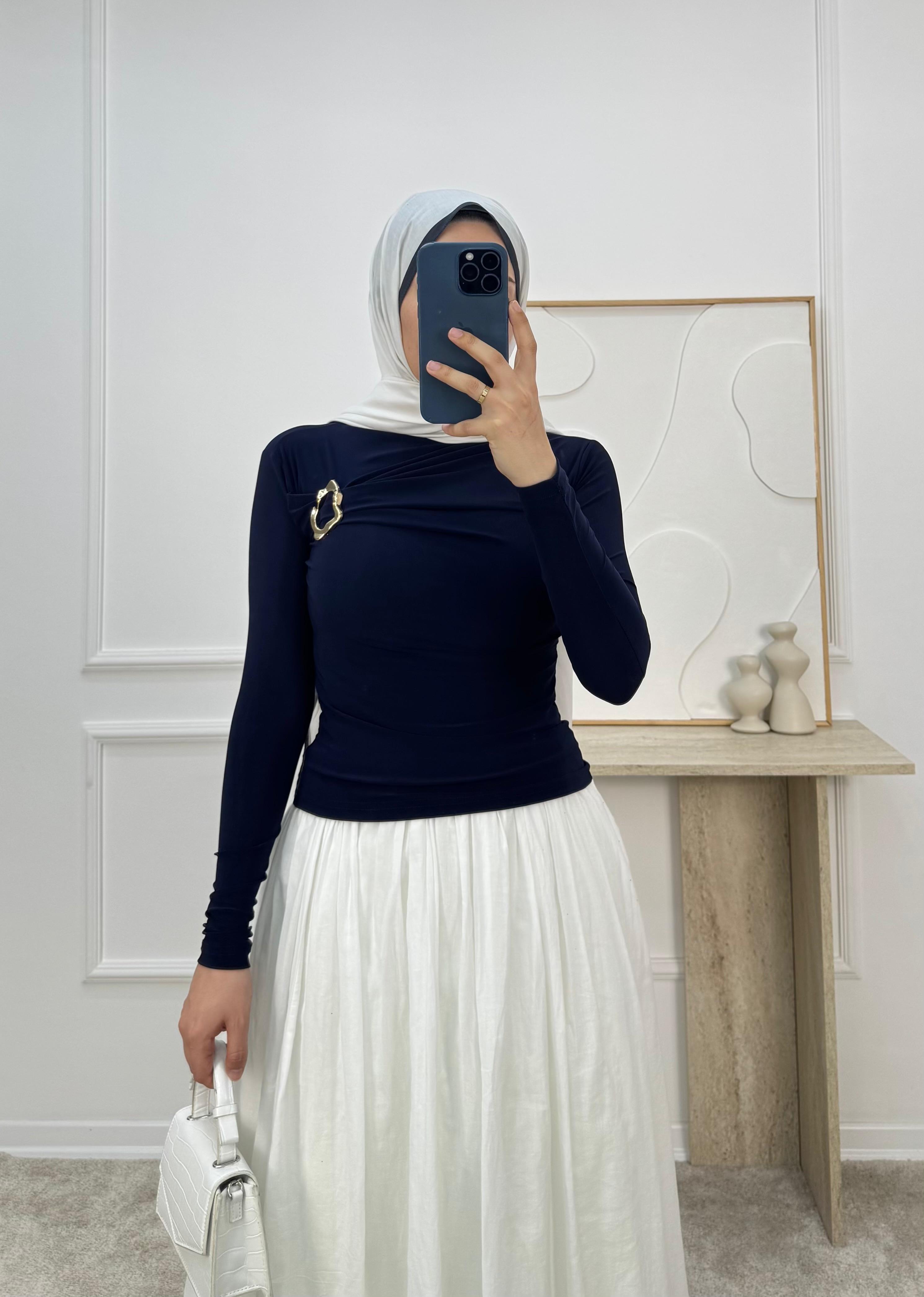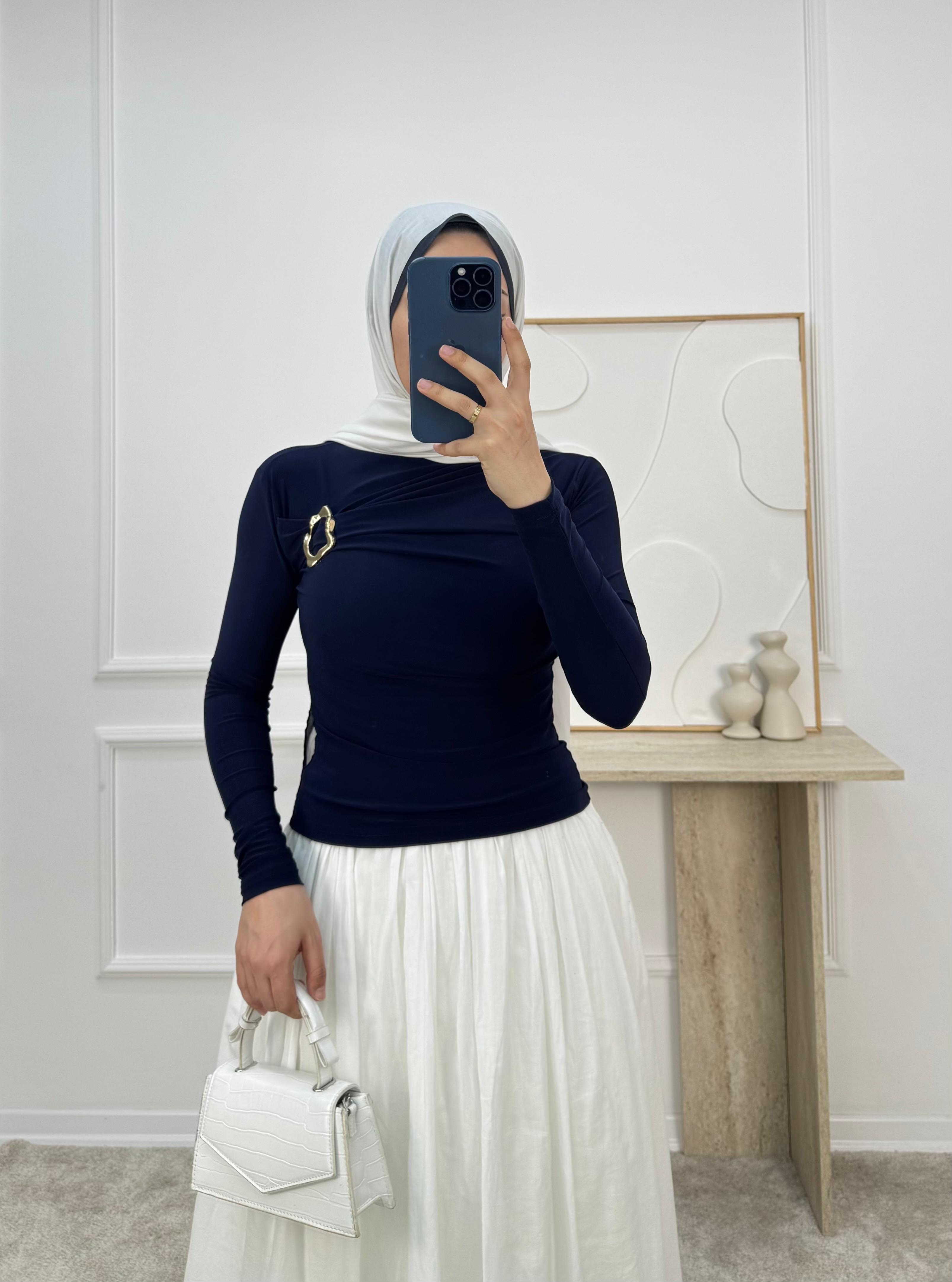 1459-sandy kumaş önü tokalı bluz-lacivert (1459)