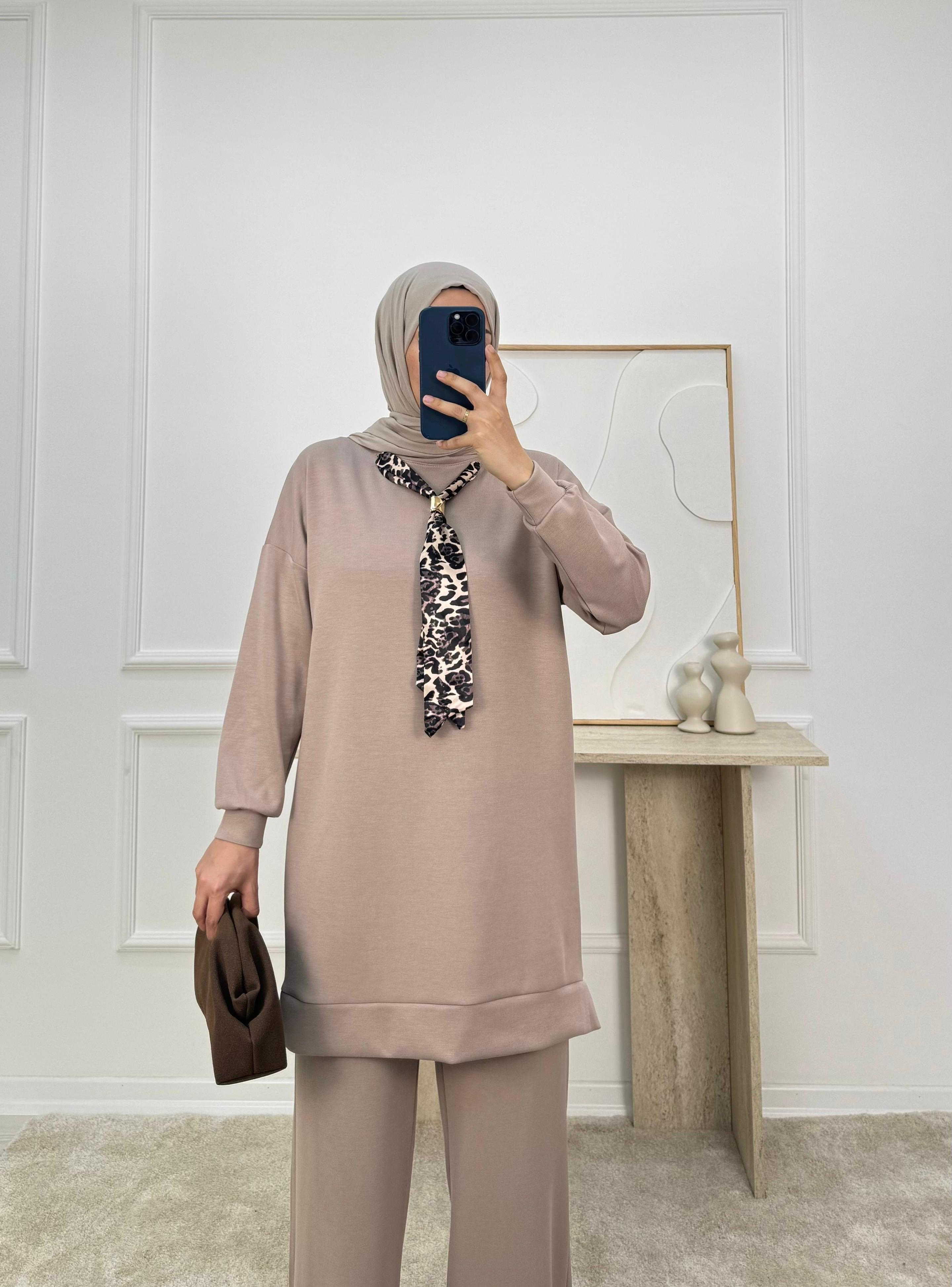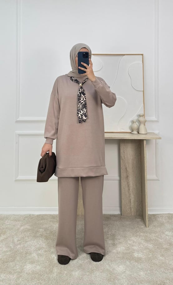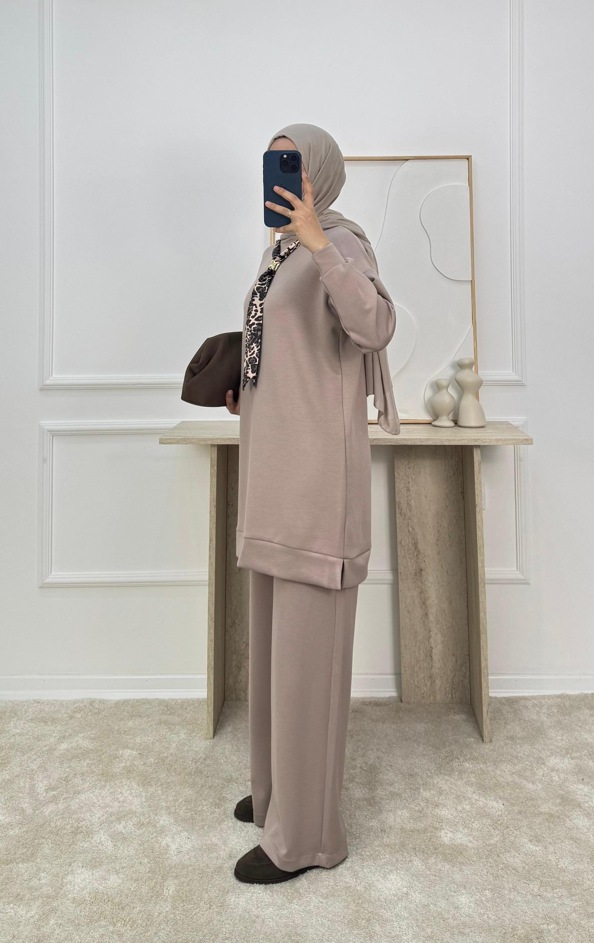 1510-oysho kumaş önü flar detaylı takım - taş (1510)