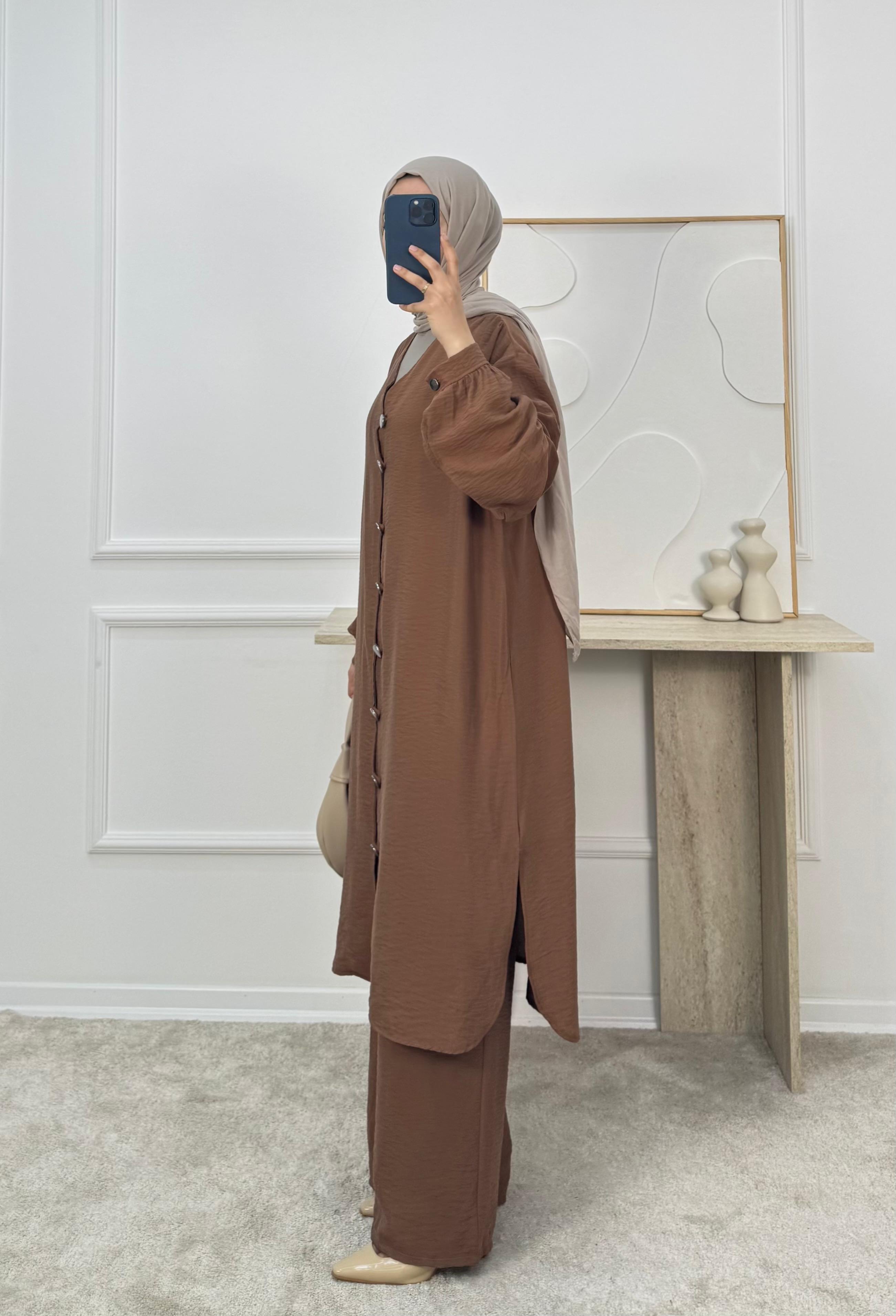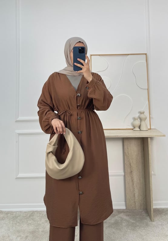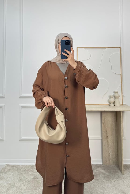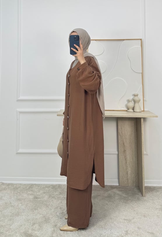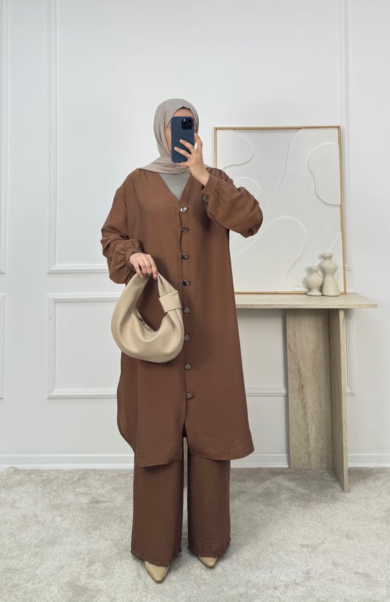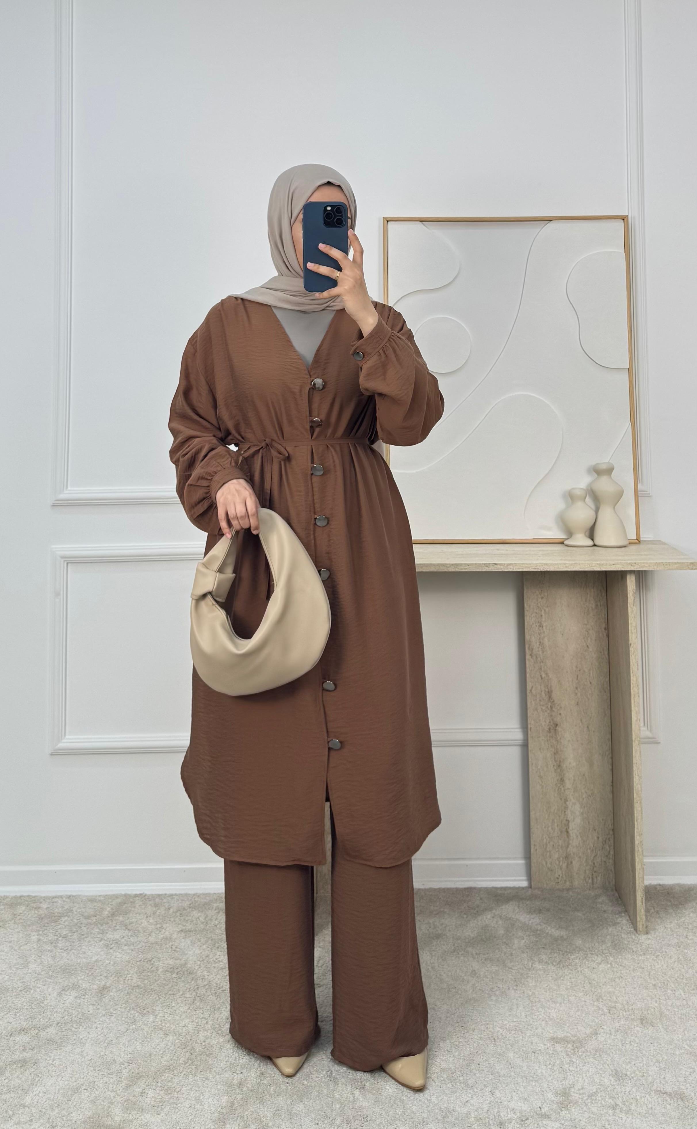 1511-modal kumaş düğmeli pantolonlu takım-kahve (1511)