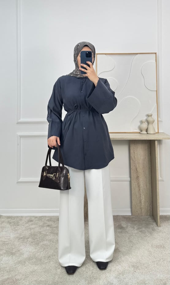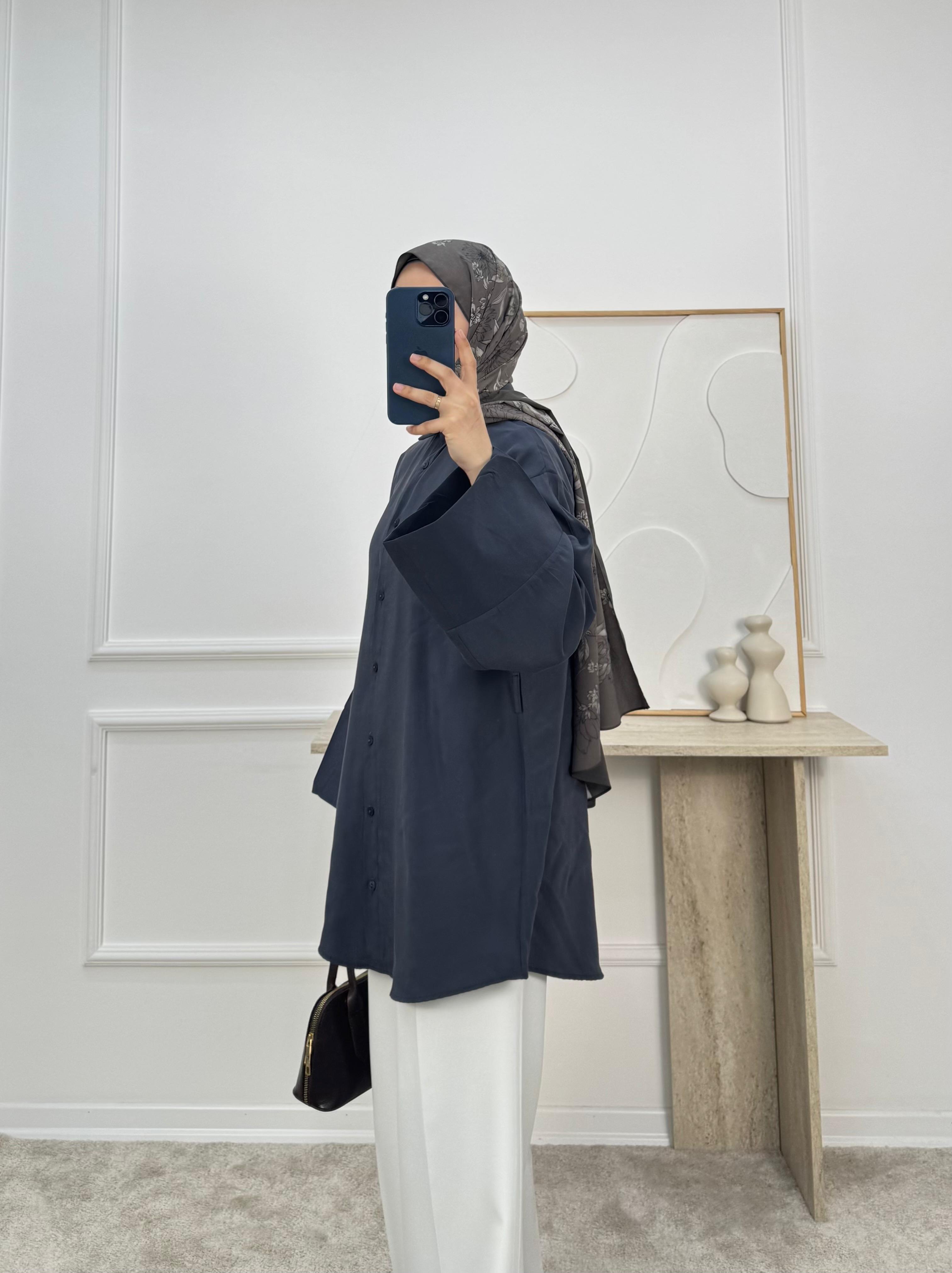 1512-cupra kumaş kuşaklı gömlek-füme (1512)