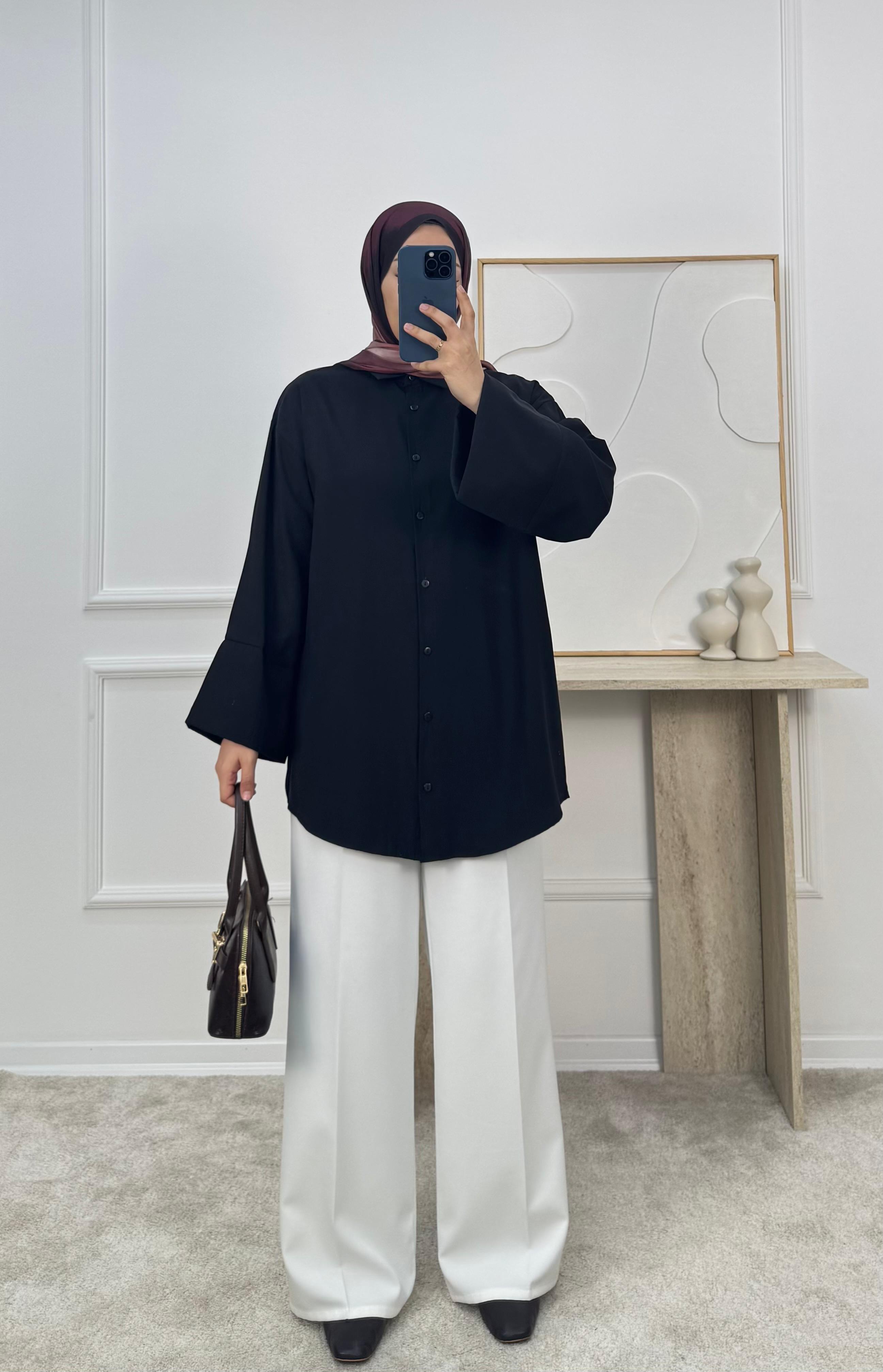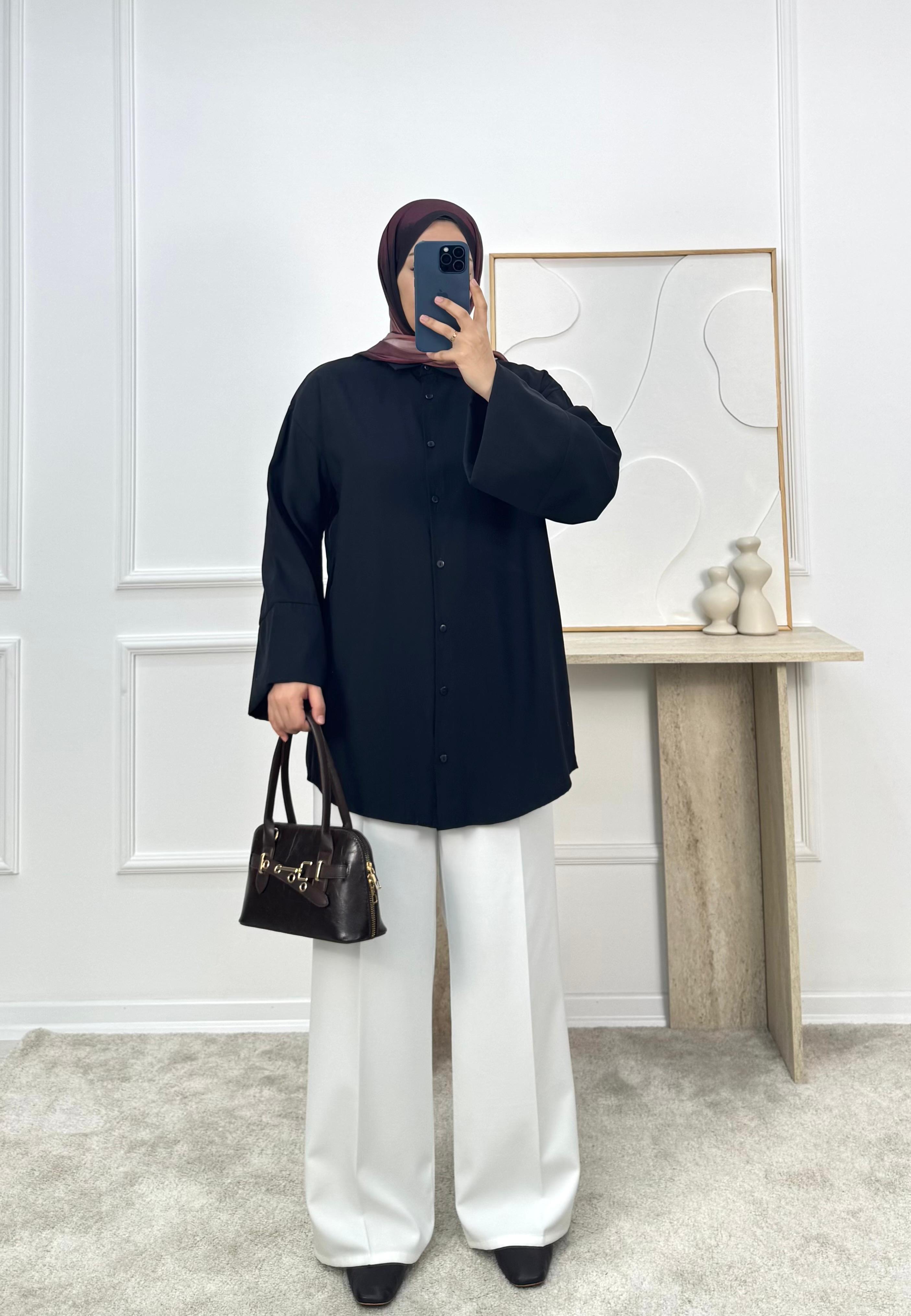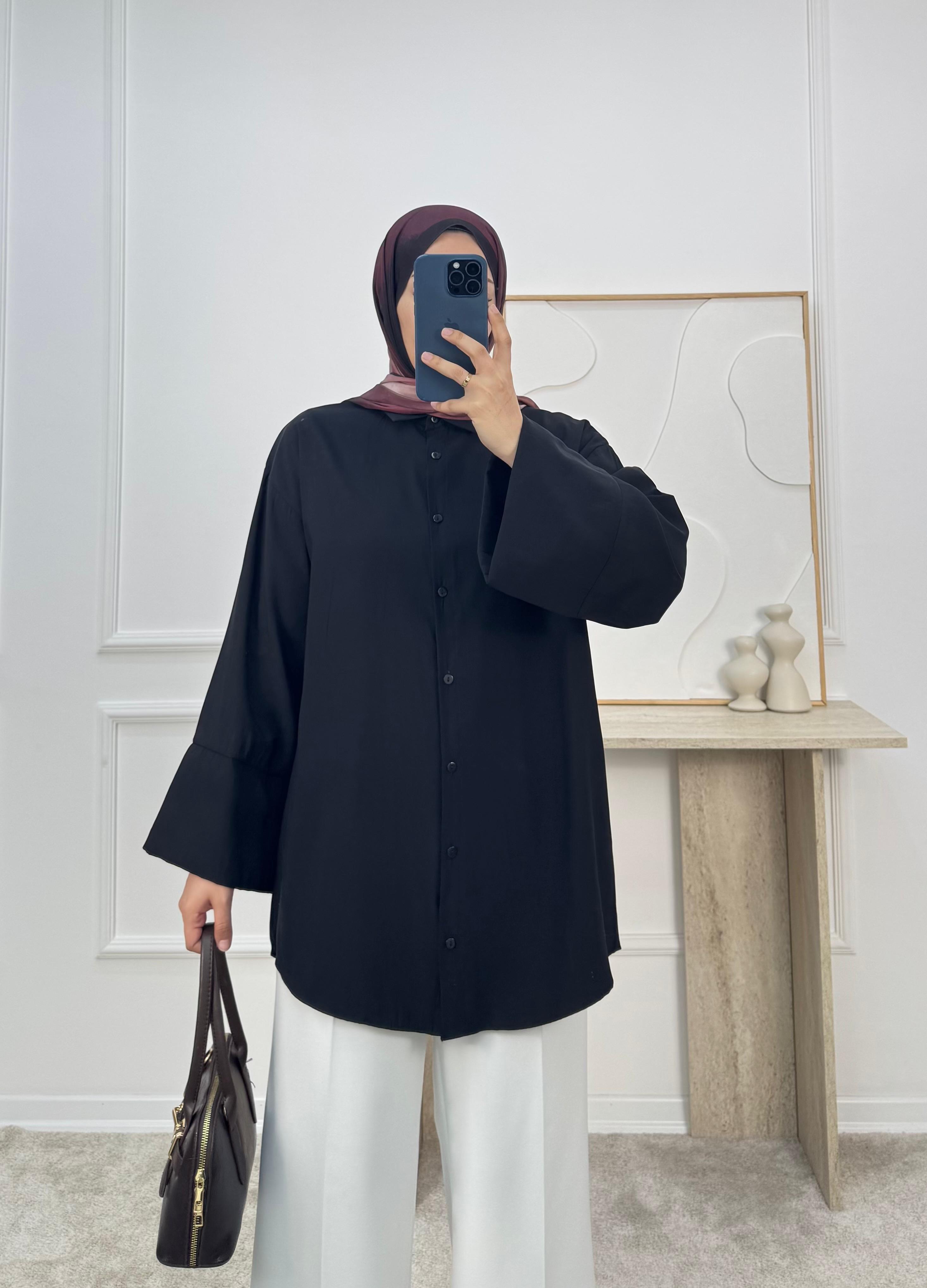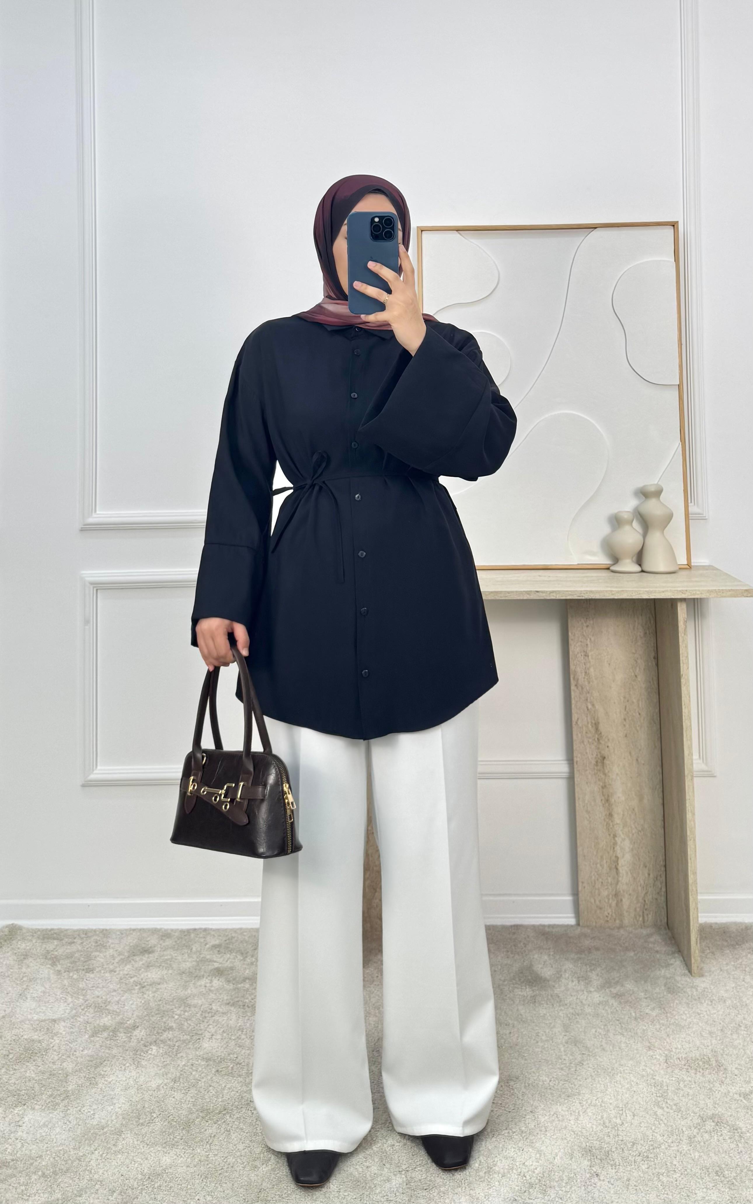 1512-cupra kumaş kuşaklı gömlek-siyah (1512)
