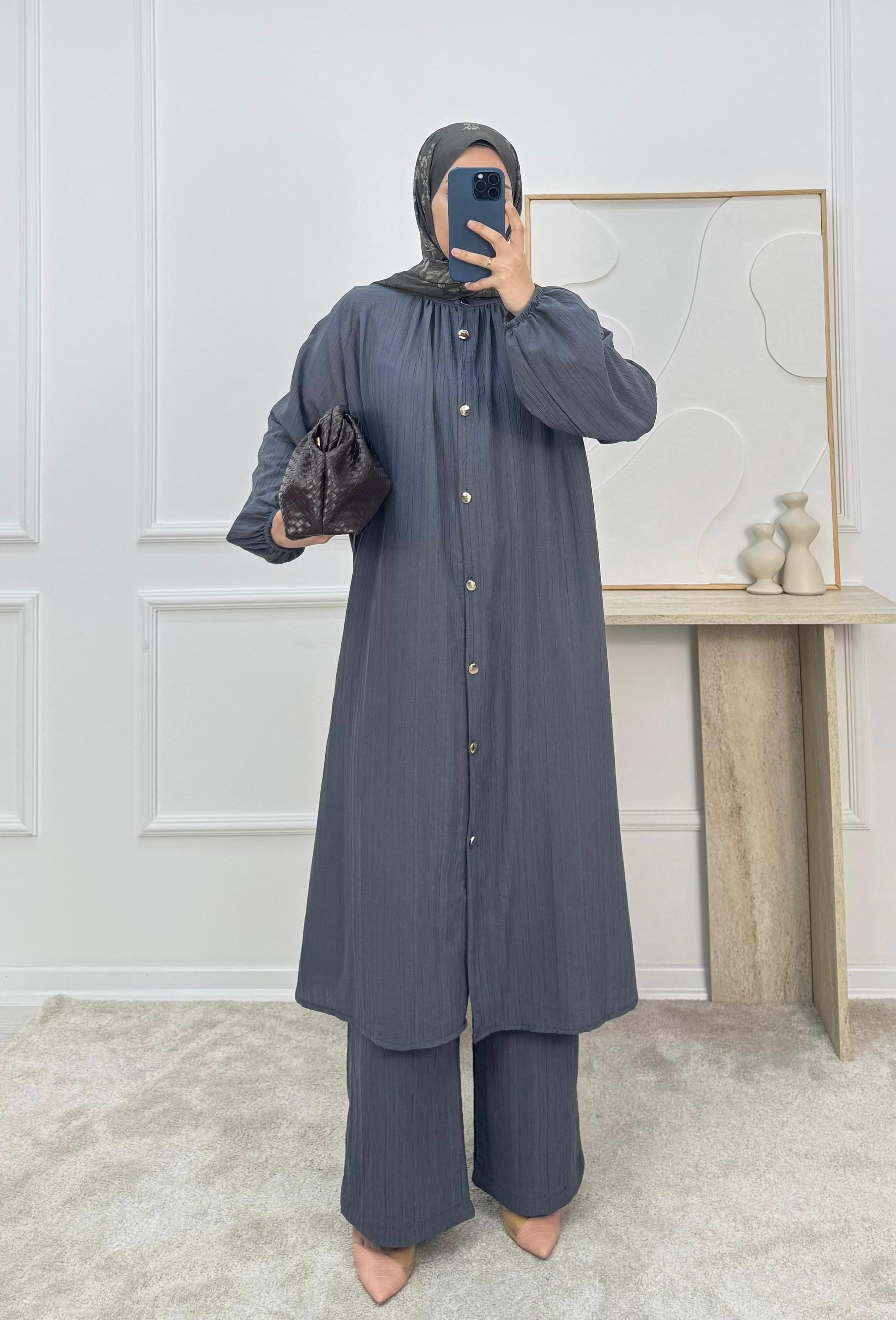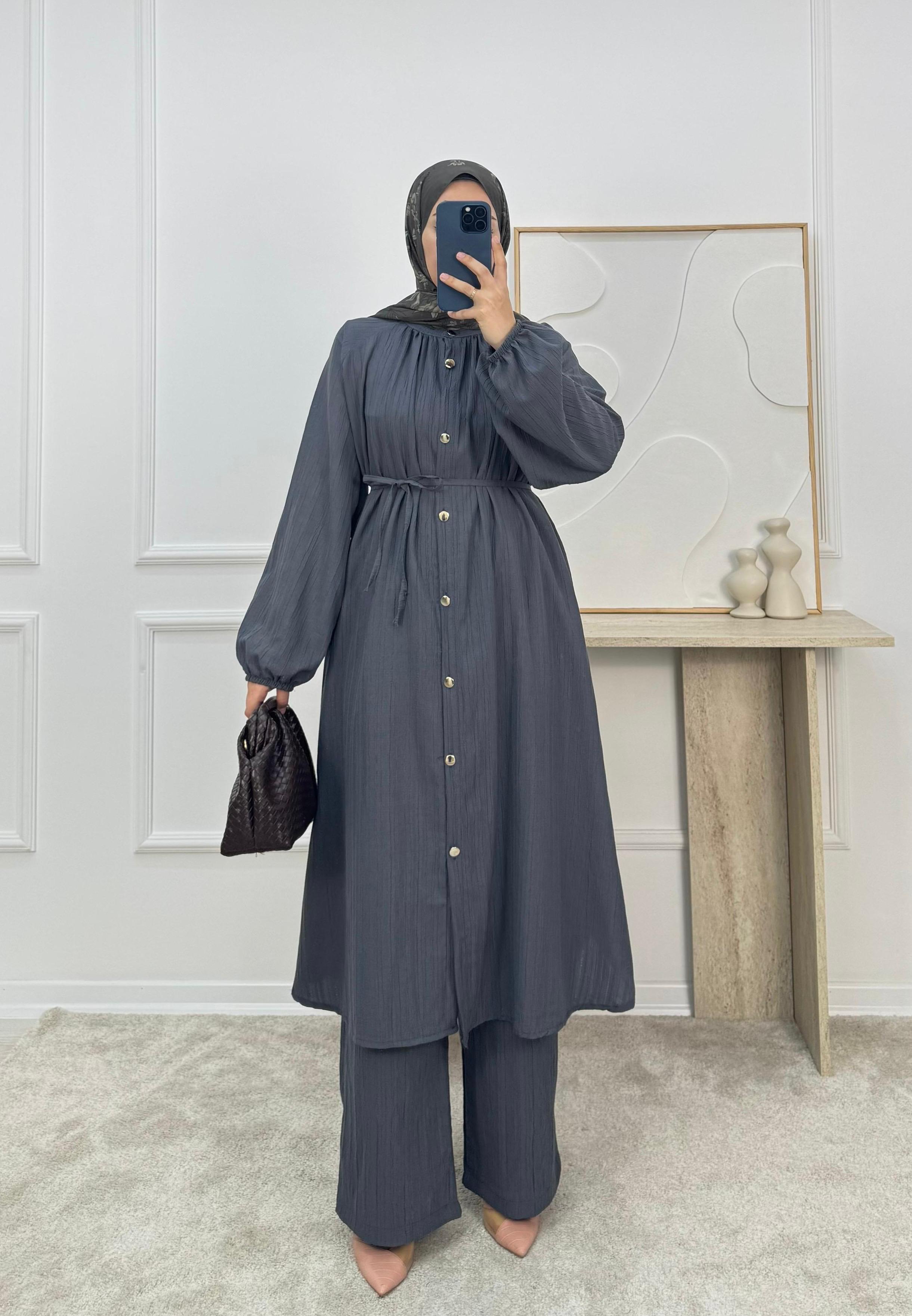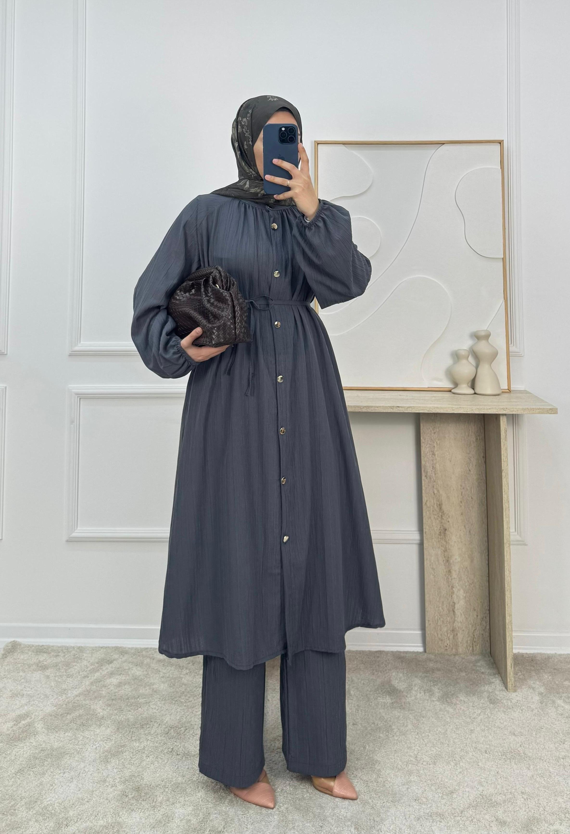 1528- maya kumaş pantolonlu takım-füme (1528)