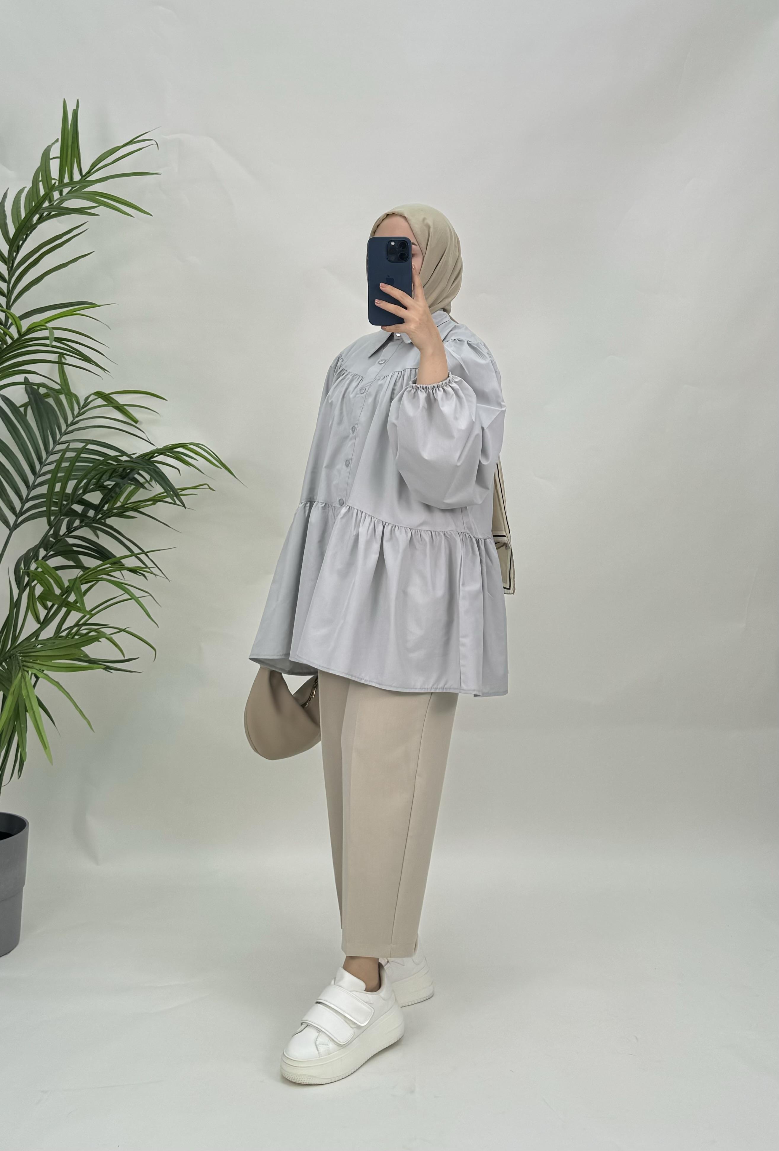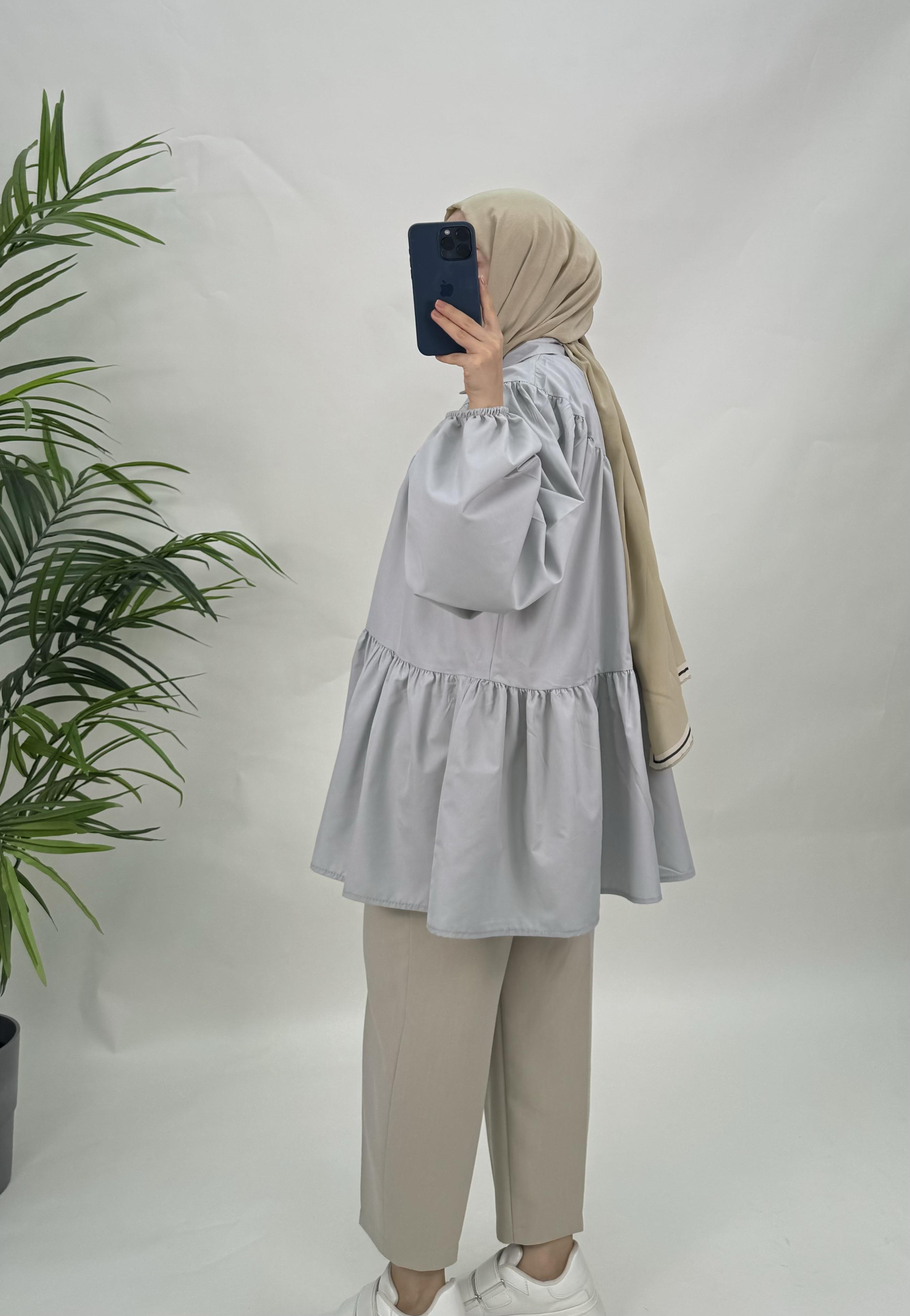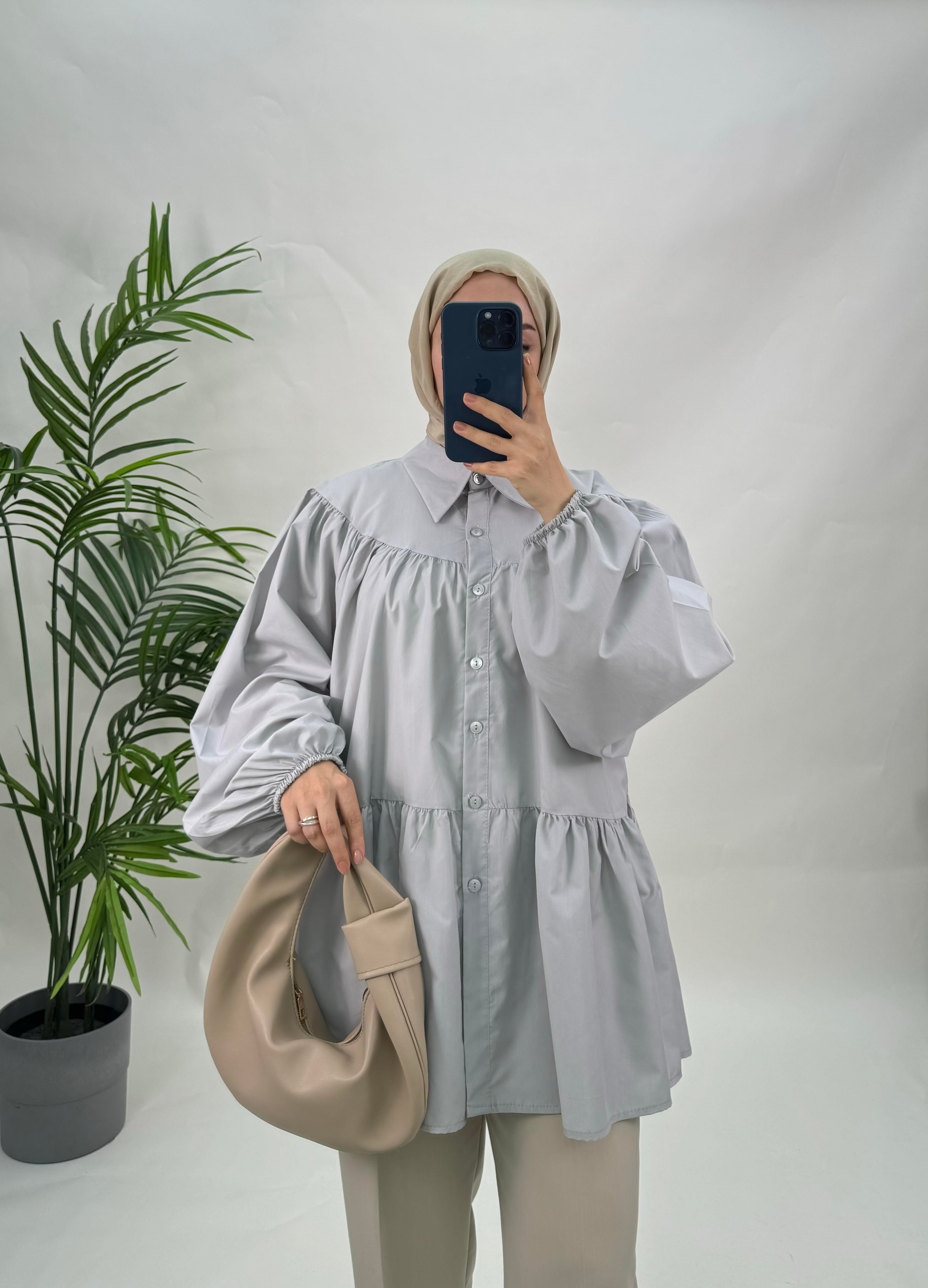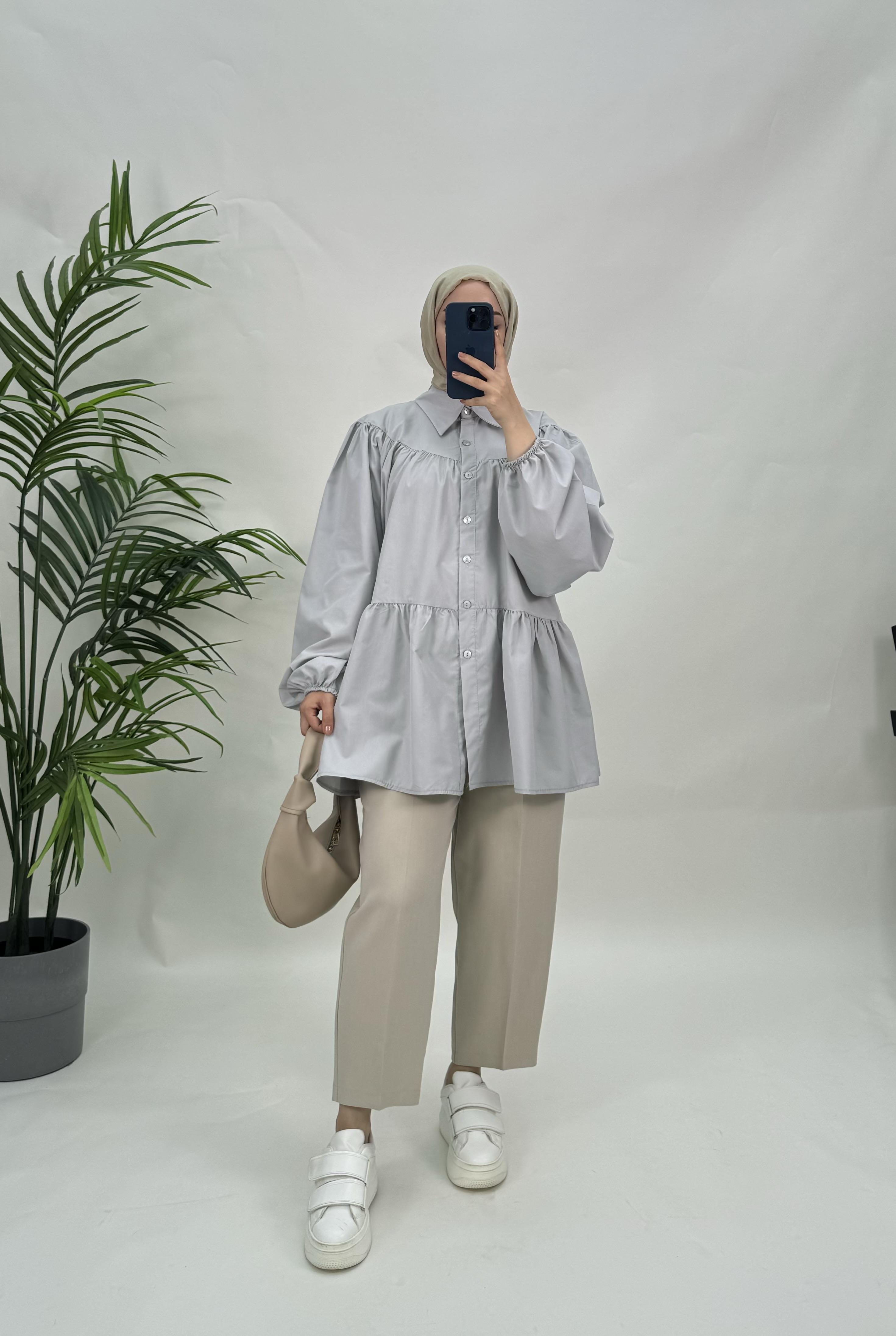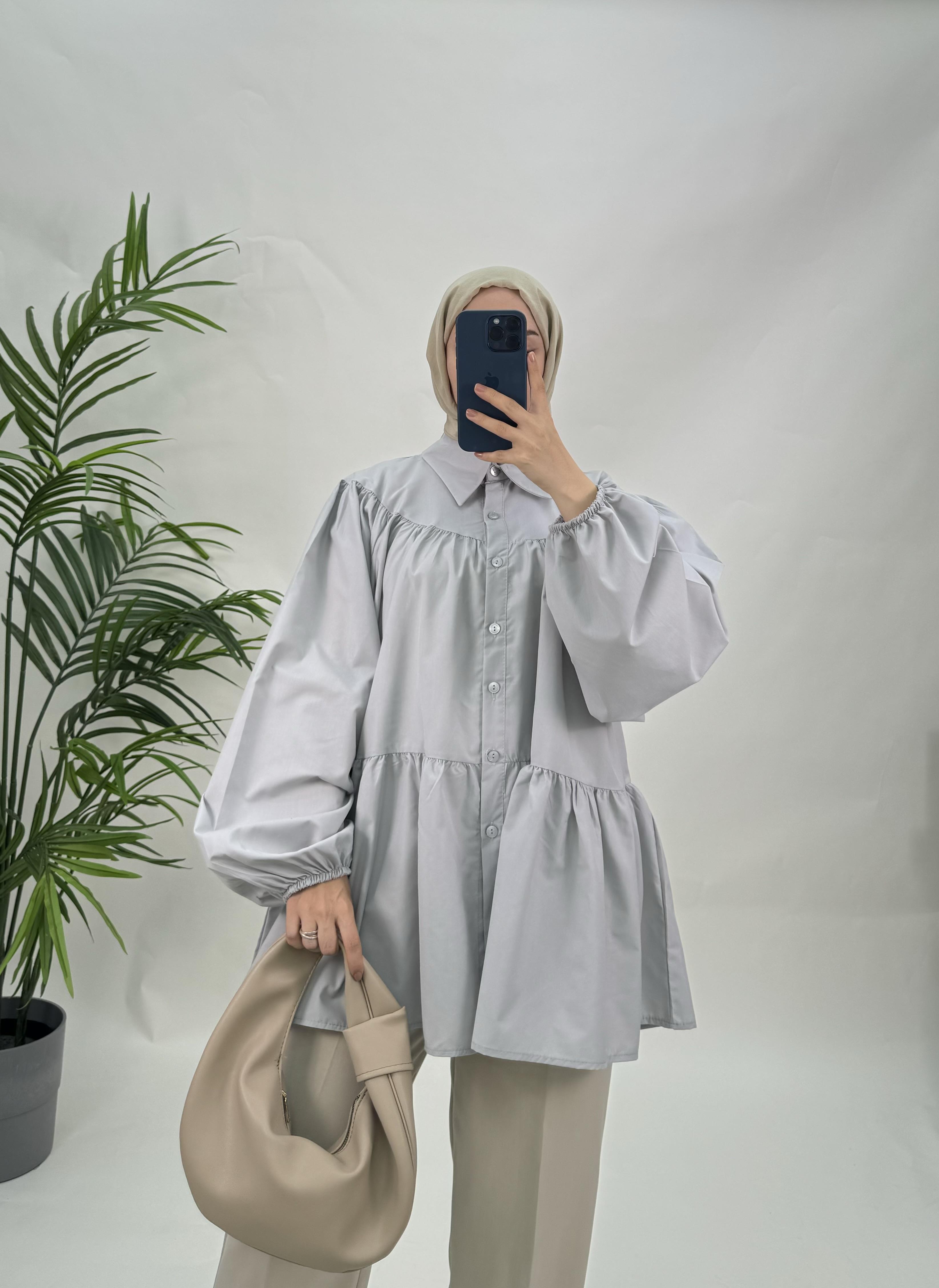 1601-poplin kumaş-bilek ucu büzgülü gömlek-gri (1601)