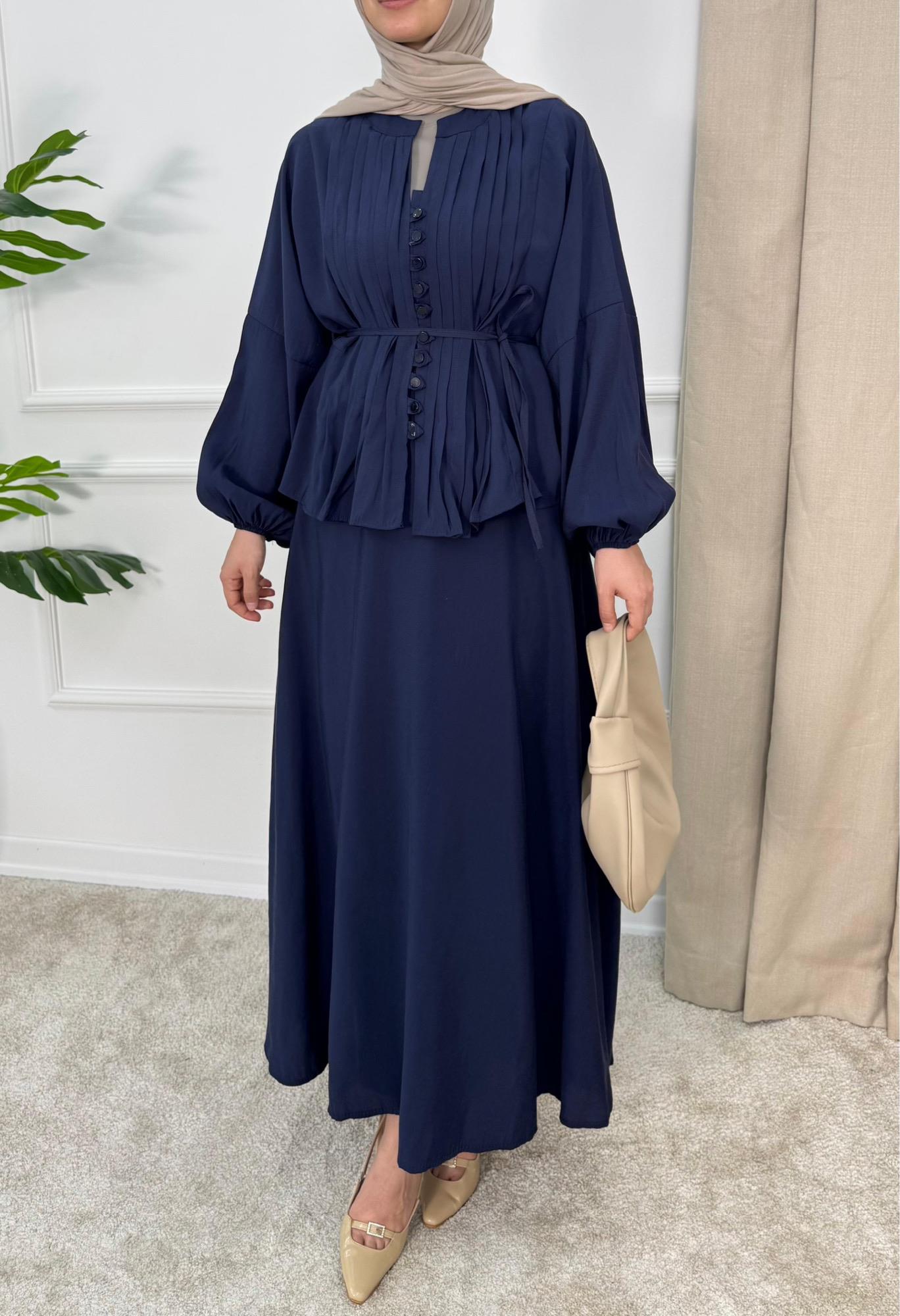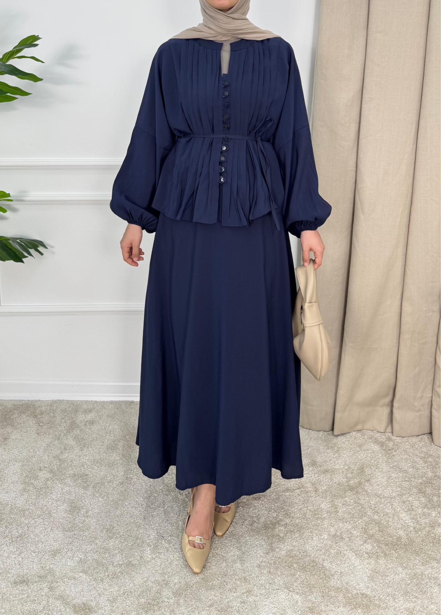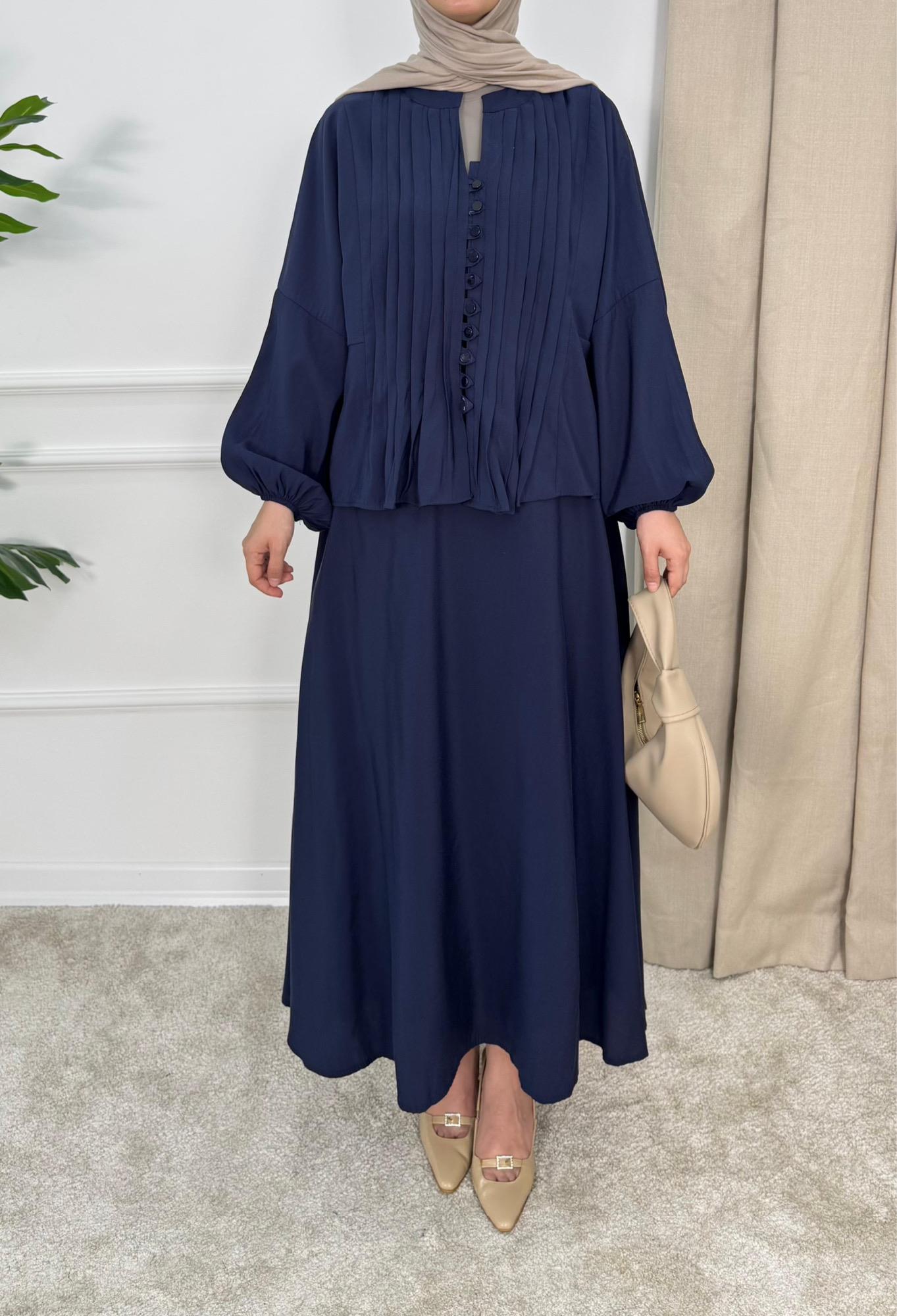 1621-cupra modal kumaş biyeli etekli takım-lacivert (1621)