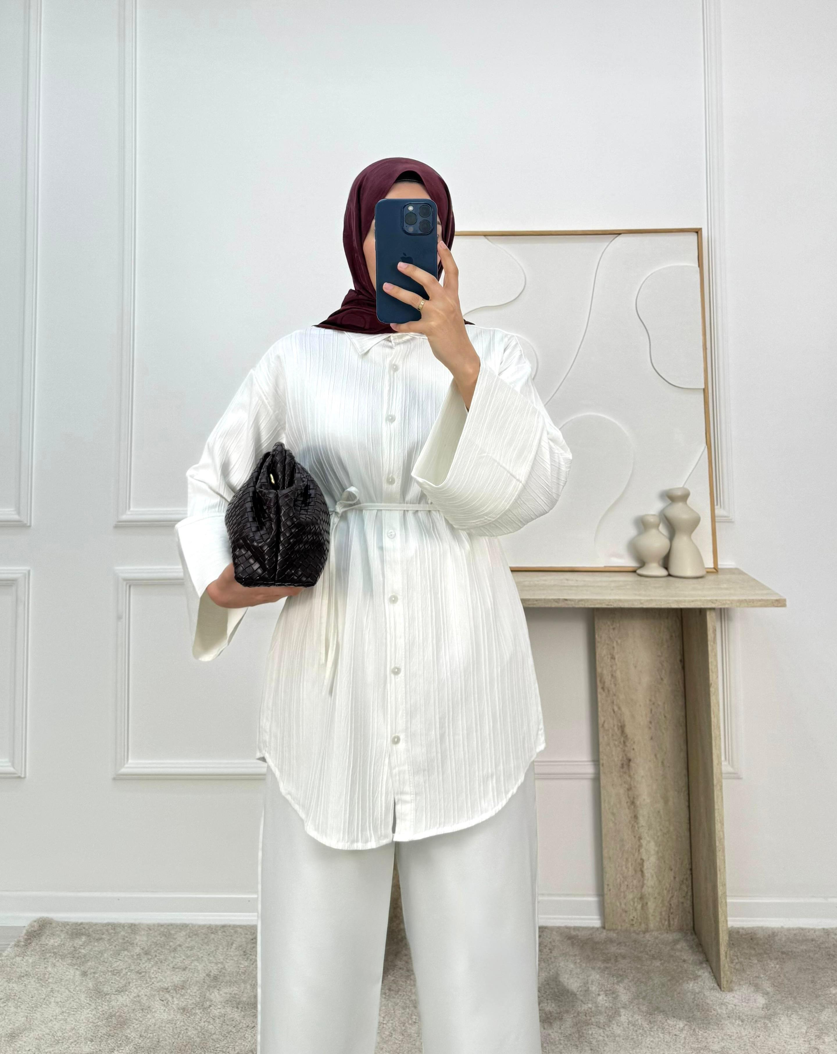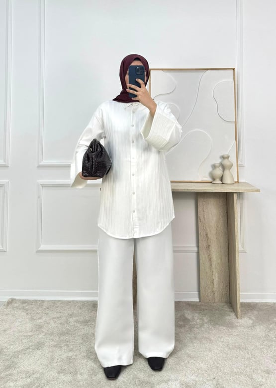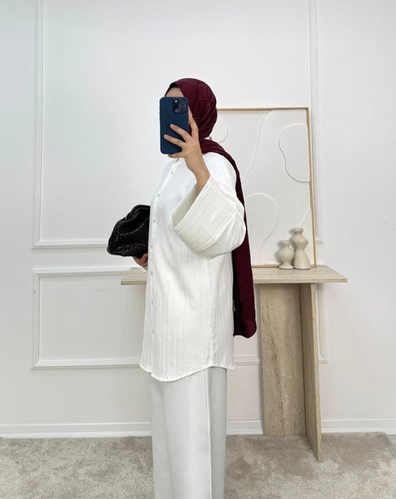 1625-nada kumaş dubai şerit kol gömlek-beyaz (1625)