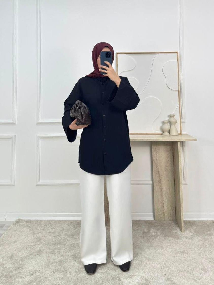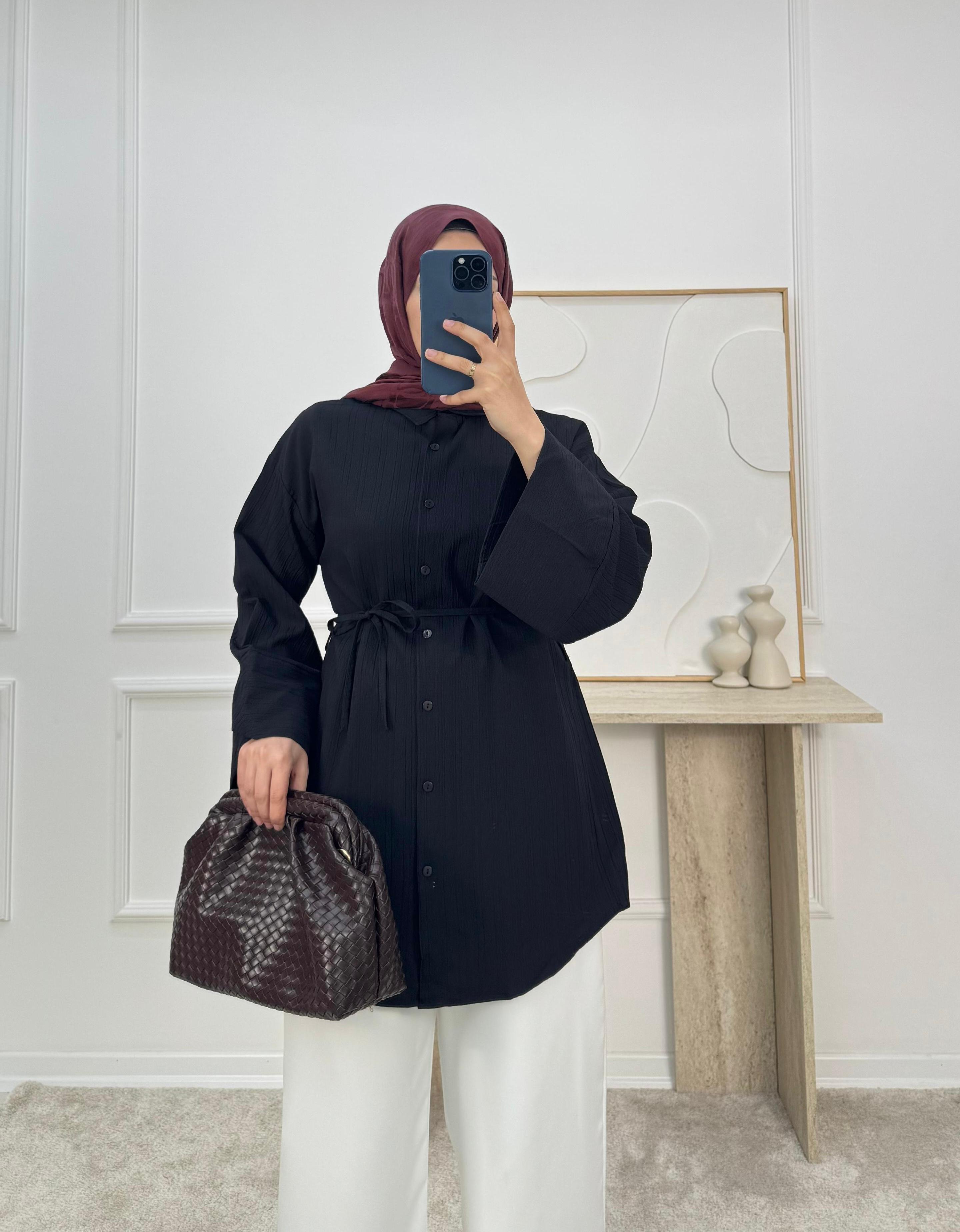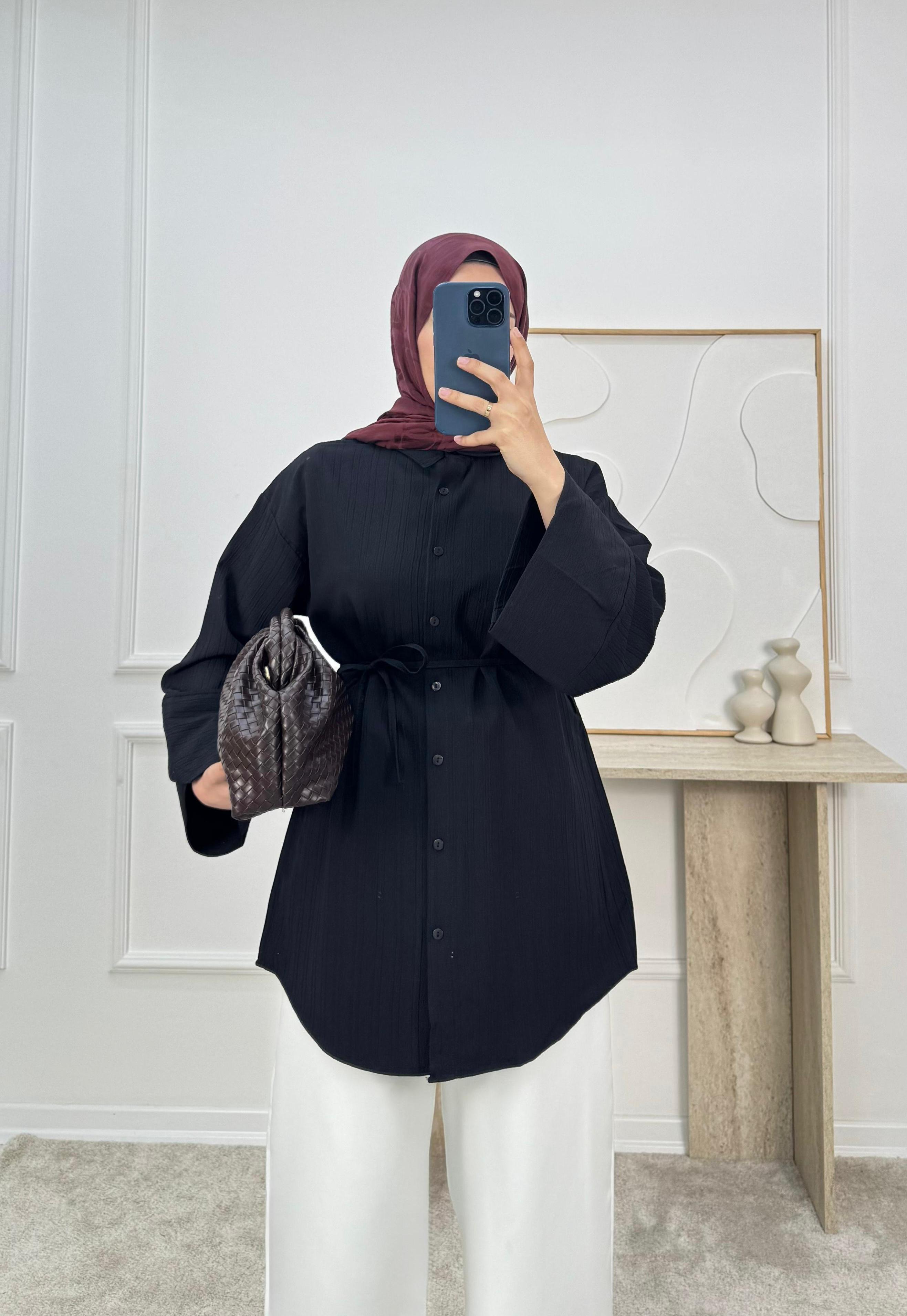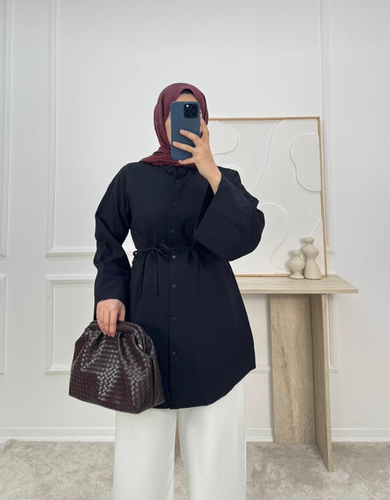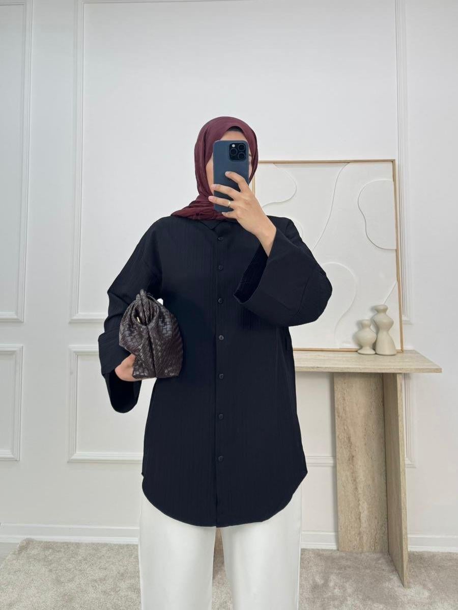 1625-nada kumaş dubai şerit kol gömlek-siyah (1625)