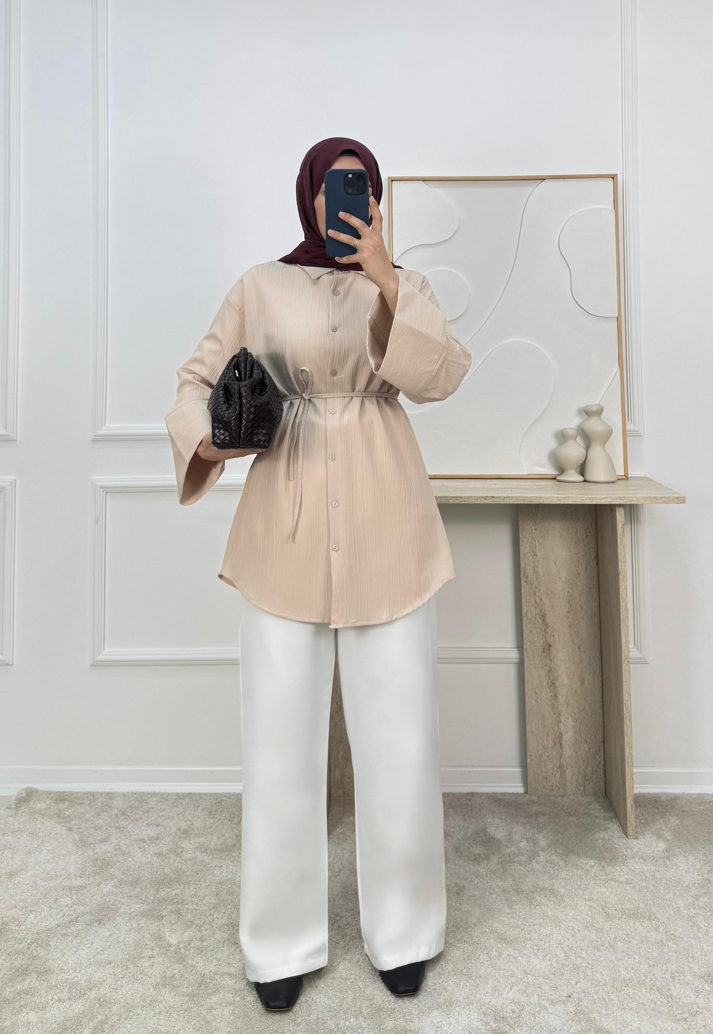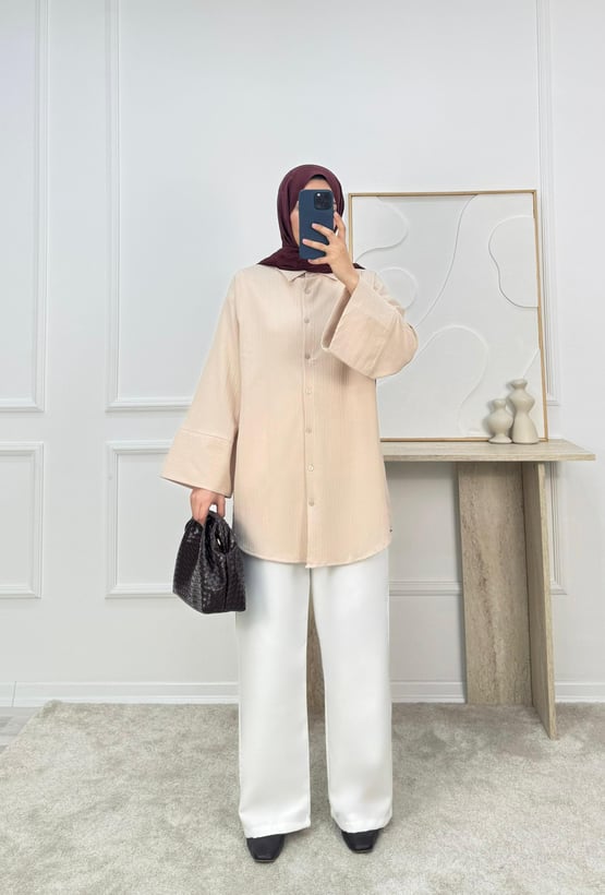1625-nada kumaş dubai şerit kol gömlek-taş (1625)