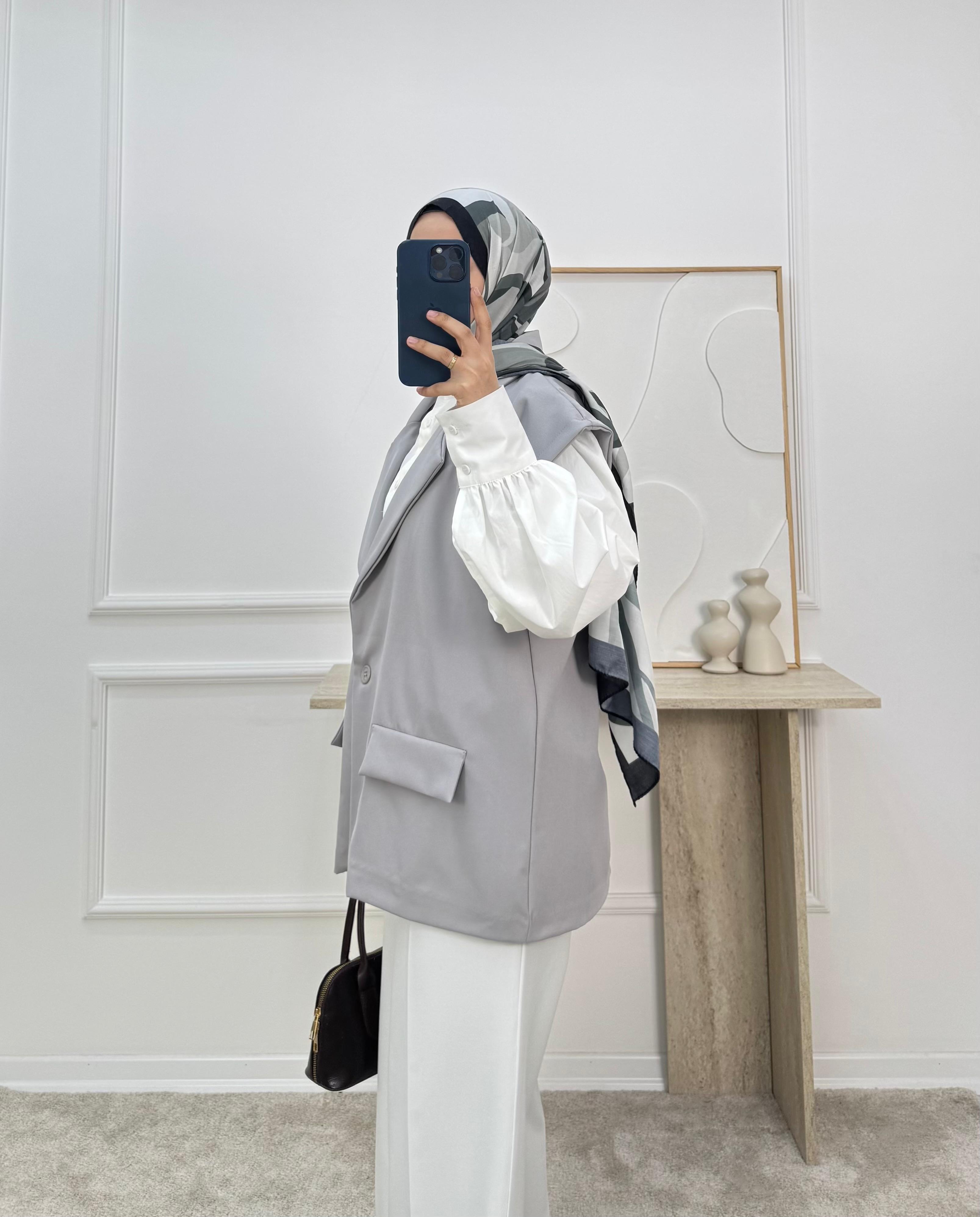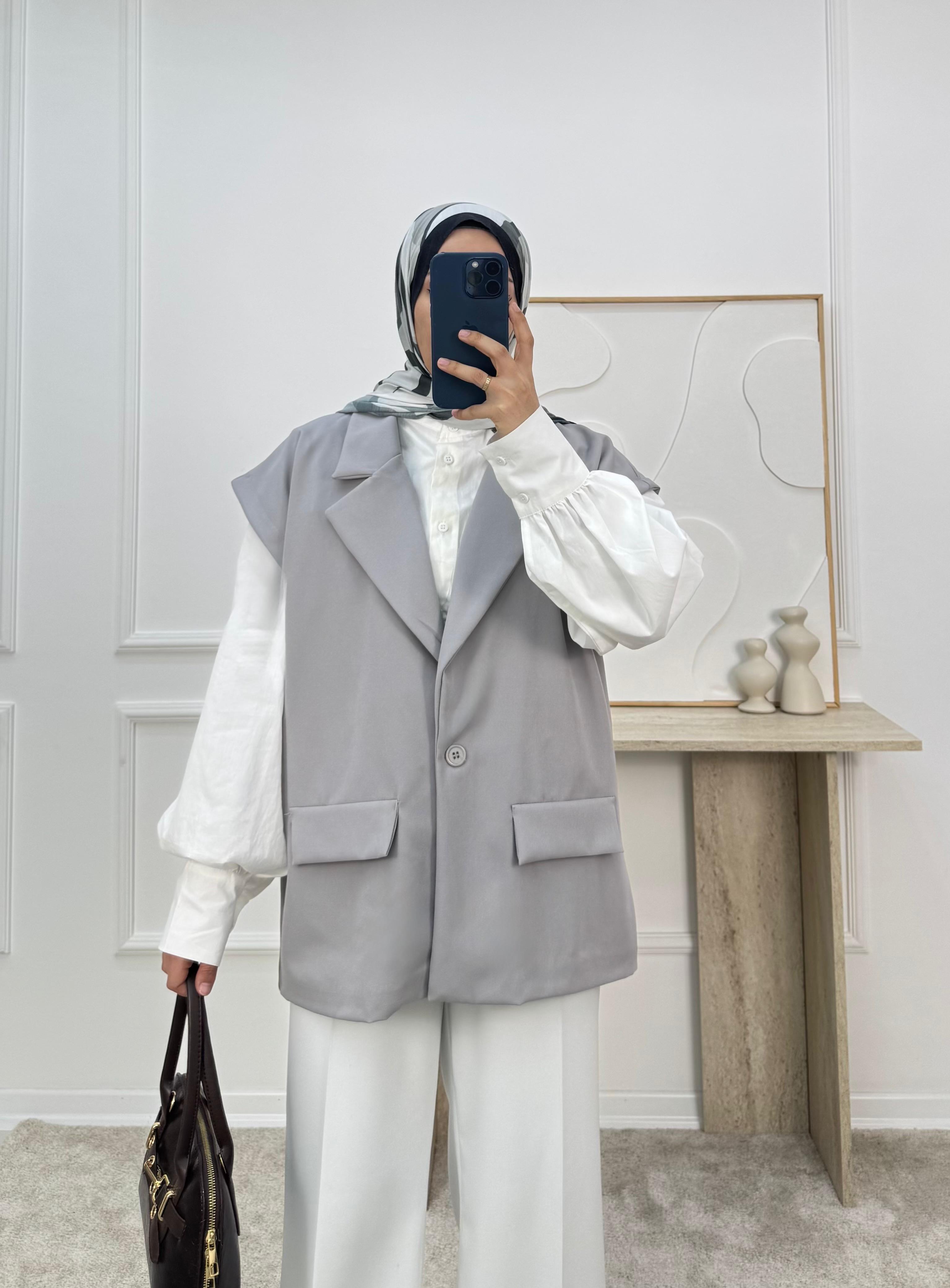 1635-dabıl krep kumaş blazer kemerli yelek-gri (1635)