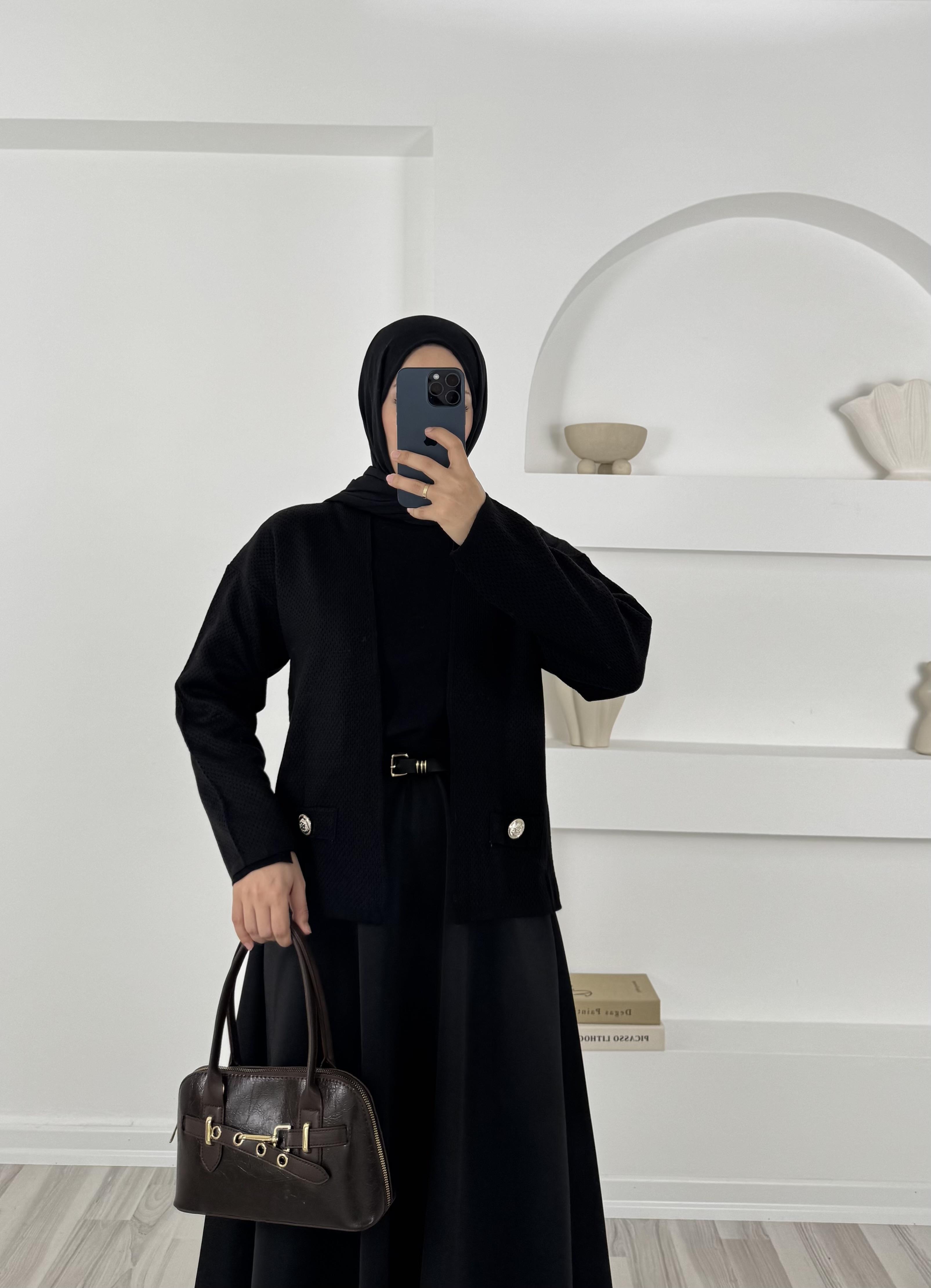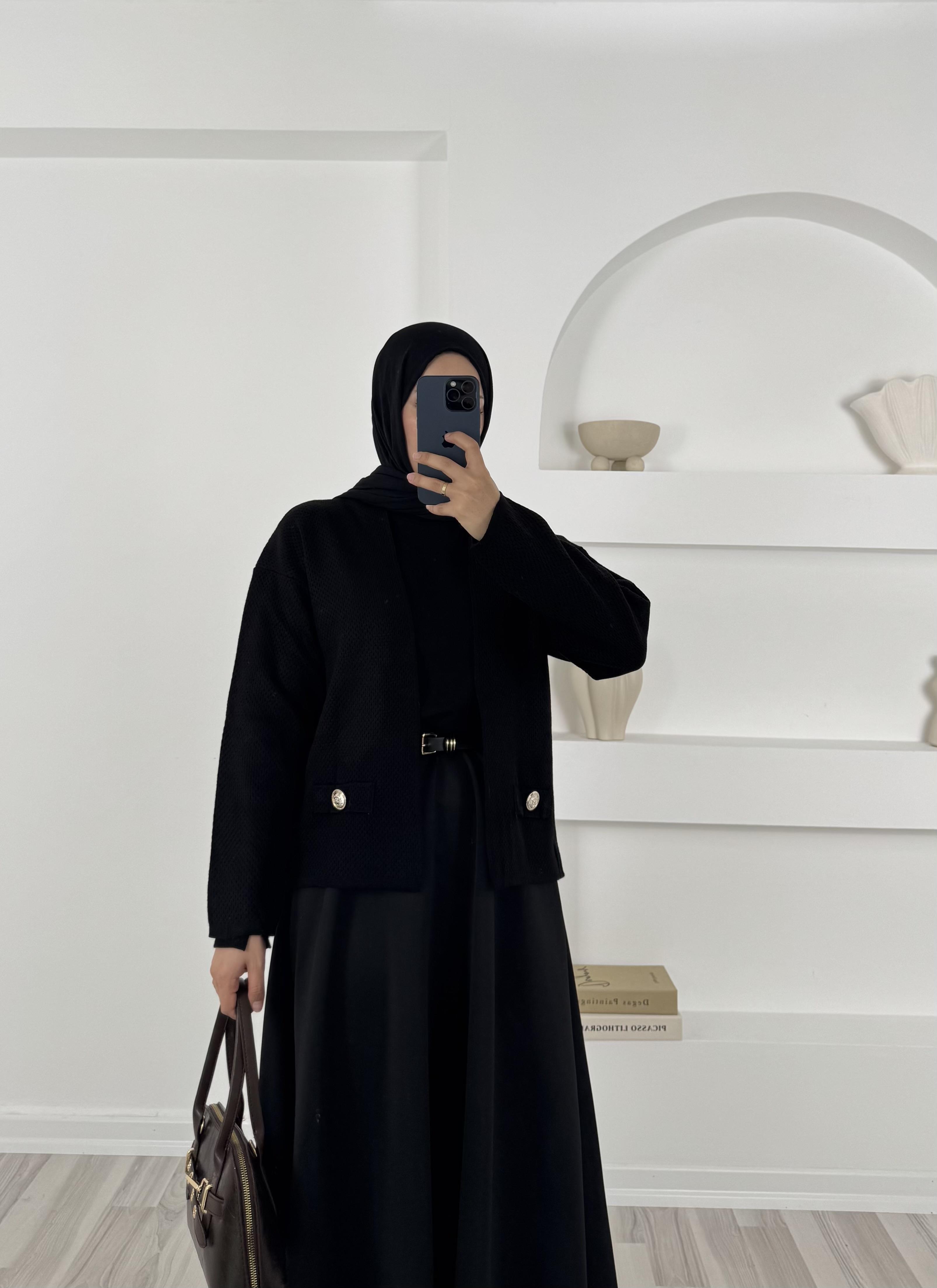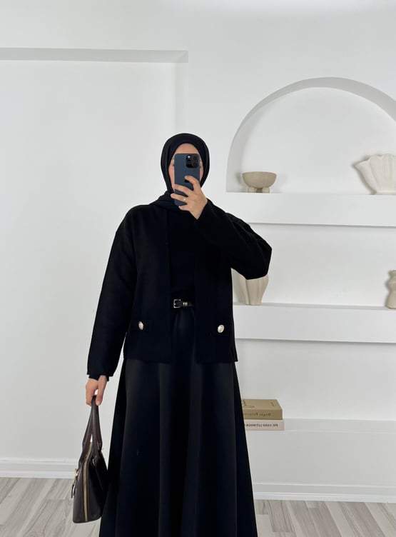 1643 - dügme detaylı triko hırka - siyah (1643)