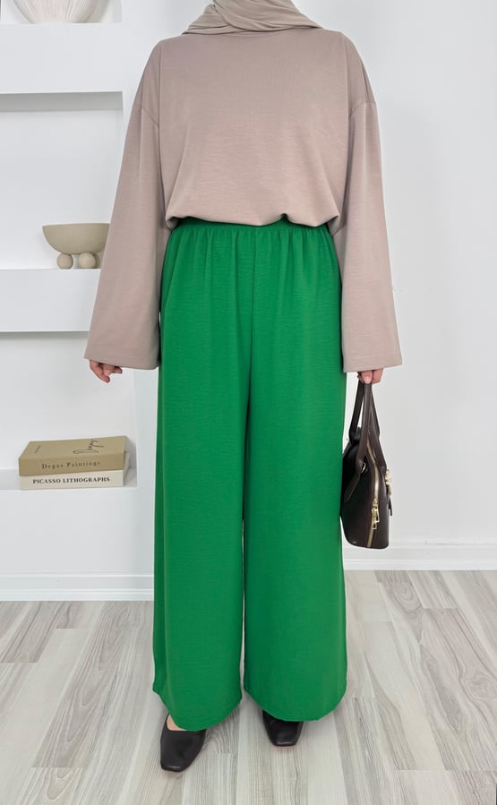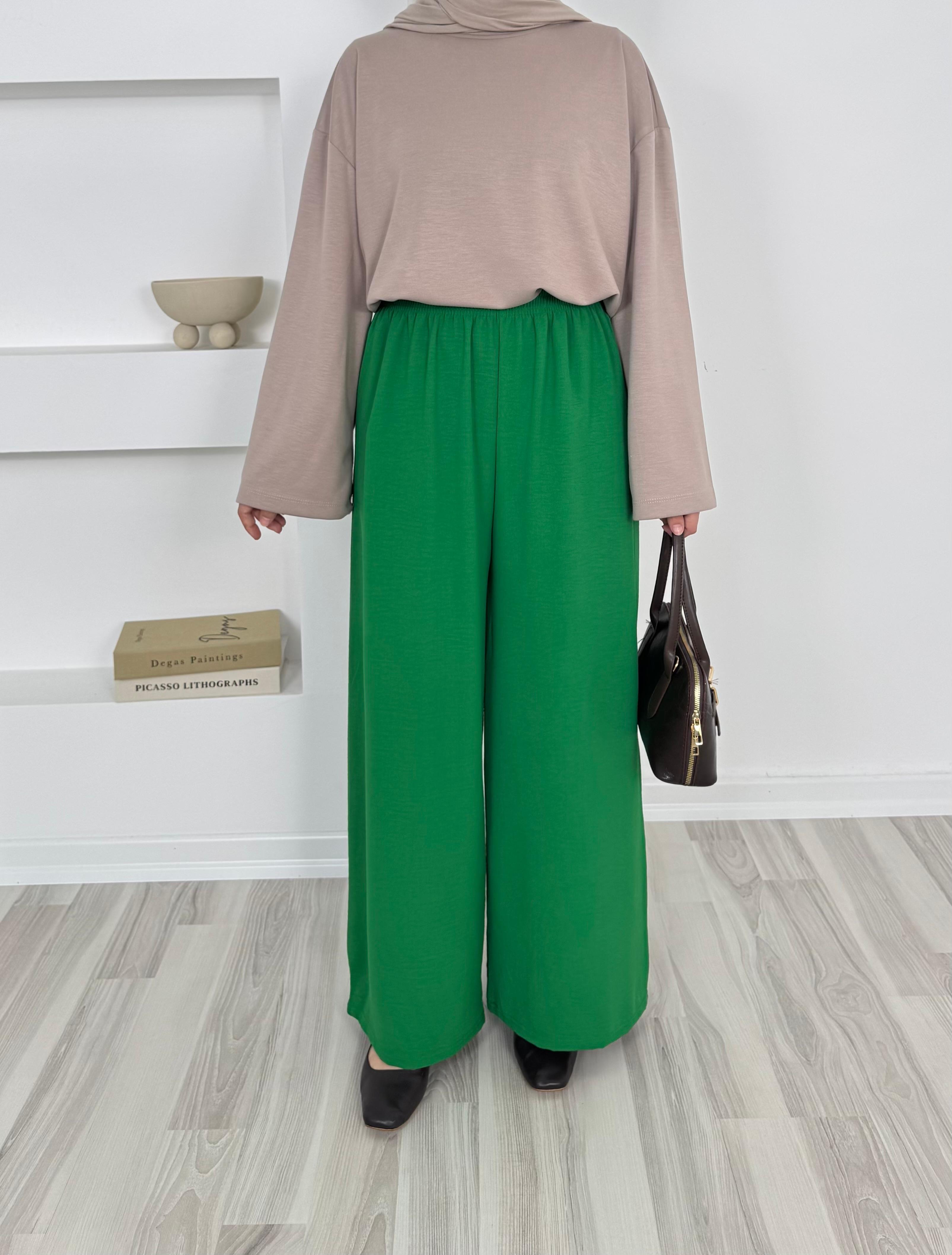 1645-aryobin kumaş bol paça pantolon - benetton yeşili (1645)