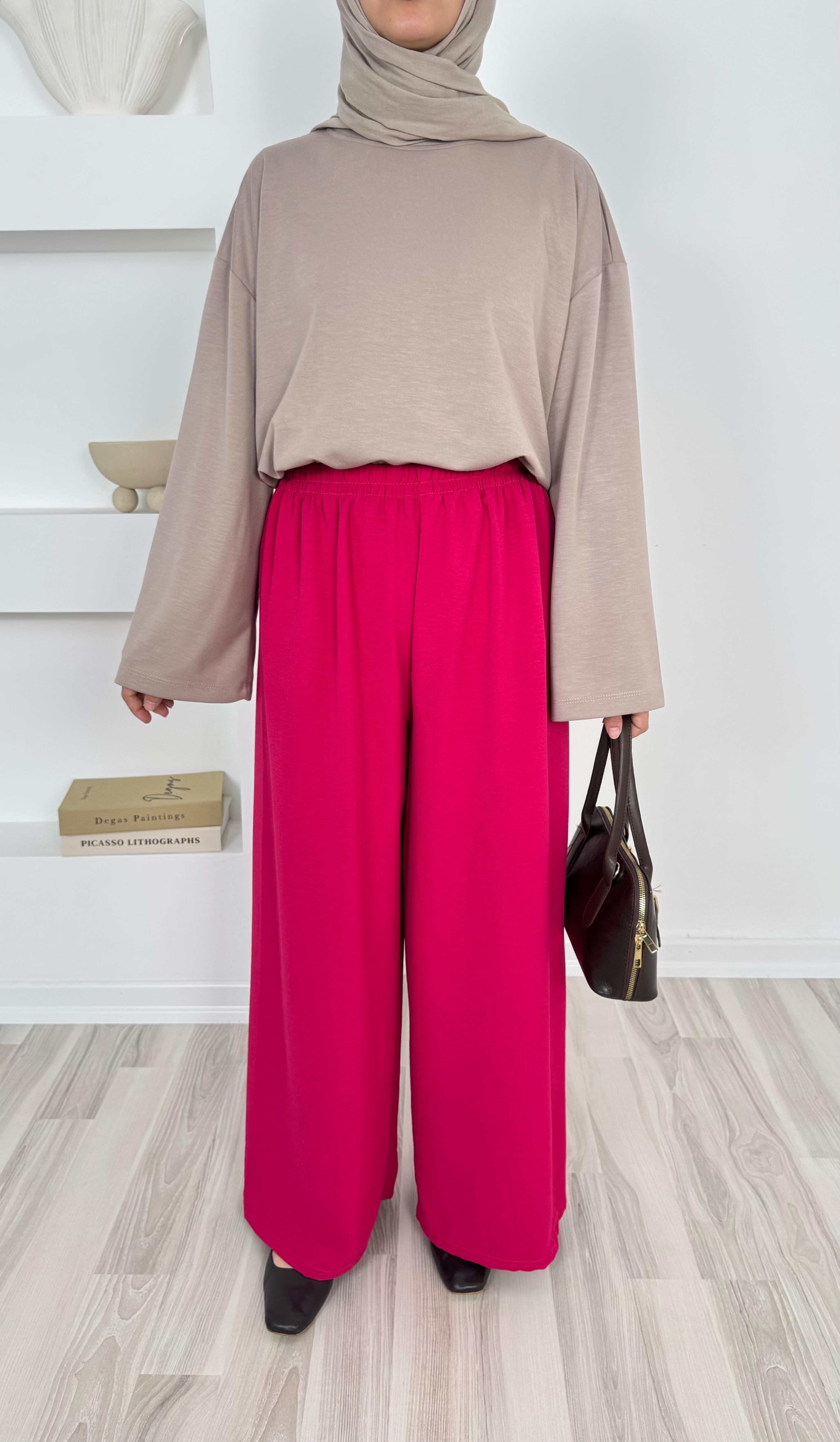 1645-aryobin kumaş bol paça pantolon - fuşya (1645)