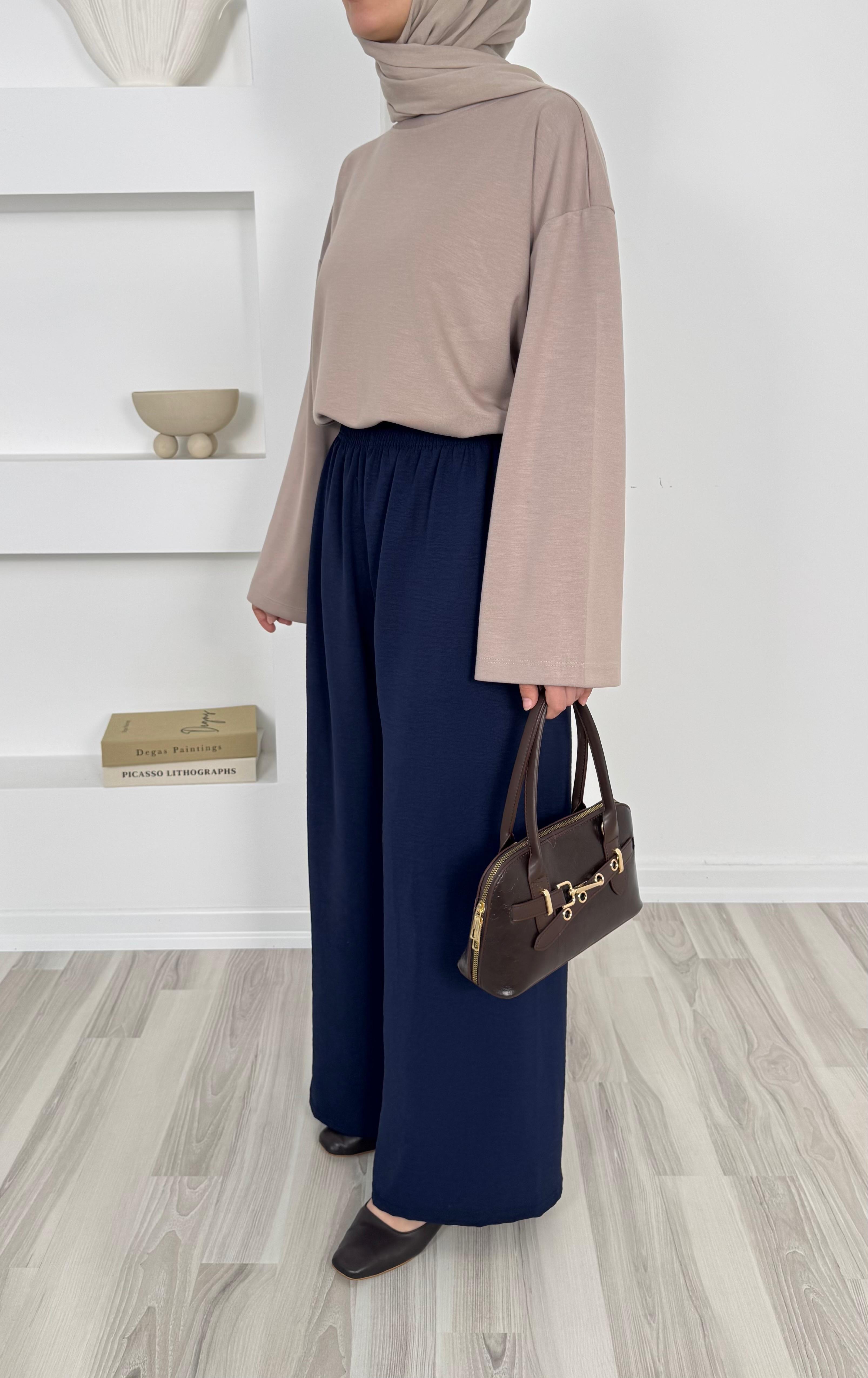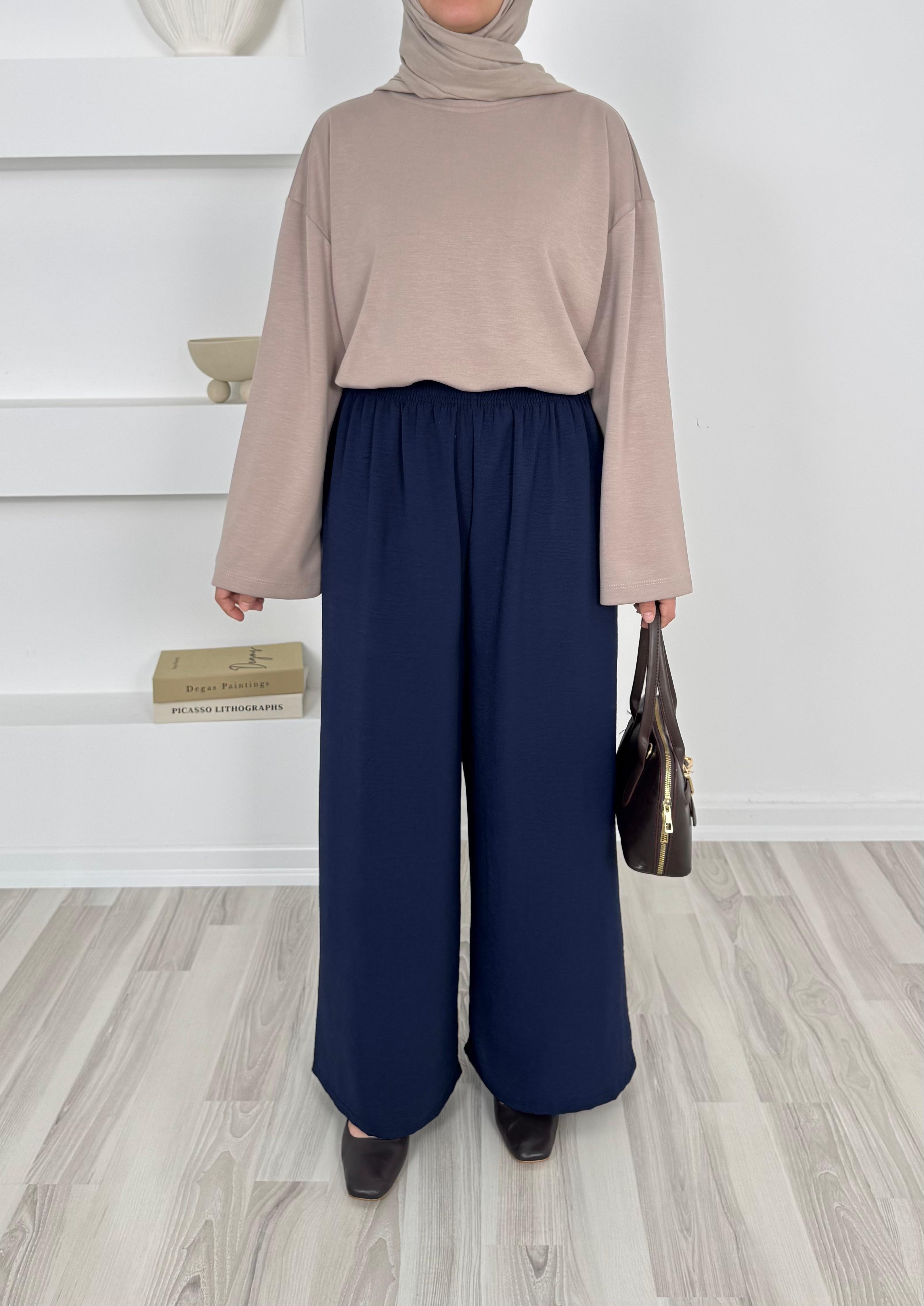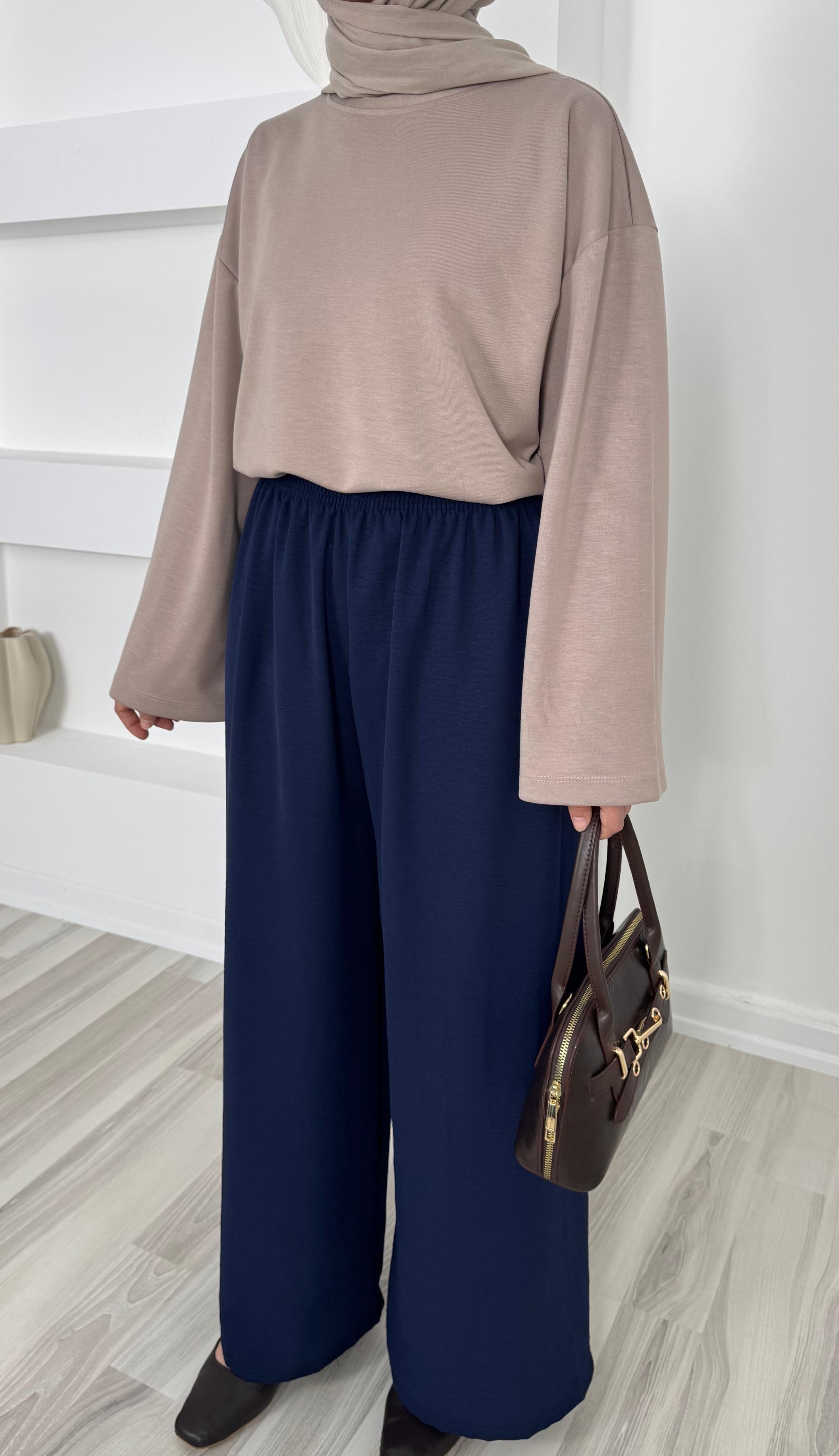 1645-aryobin kumaş bol paça pantolon - lacivert (1645)