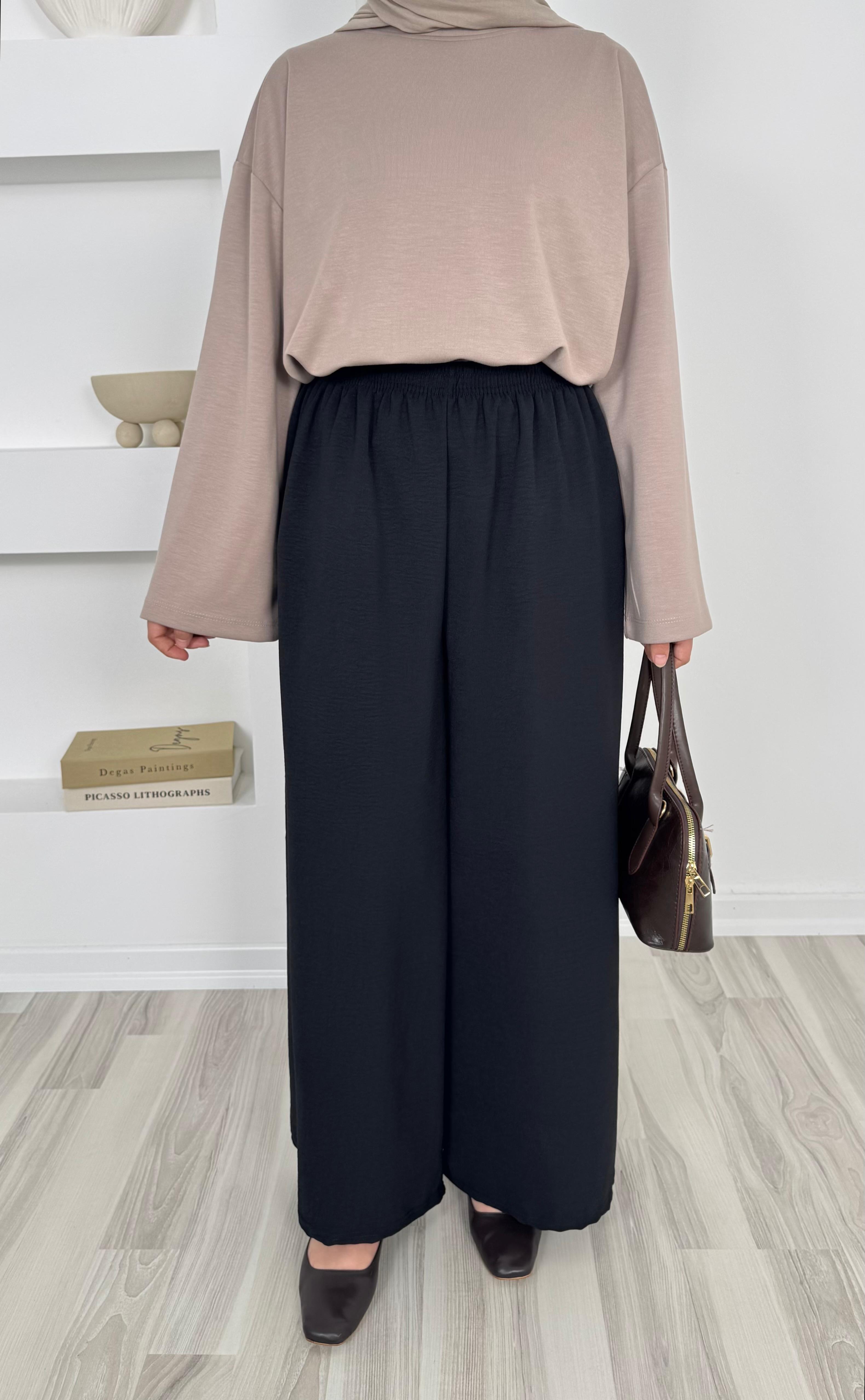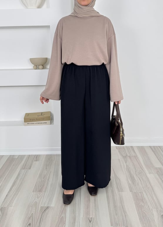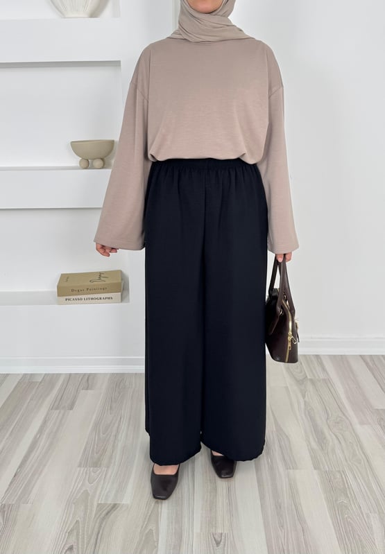 1645-aryobin kumaş bol paça pantolon - siyah (1645)