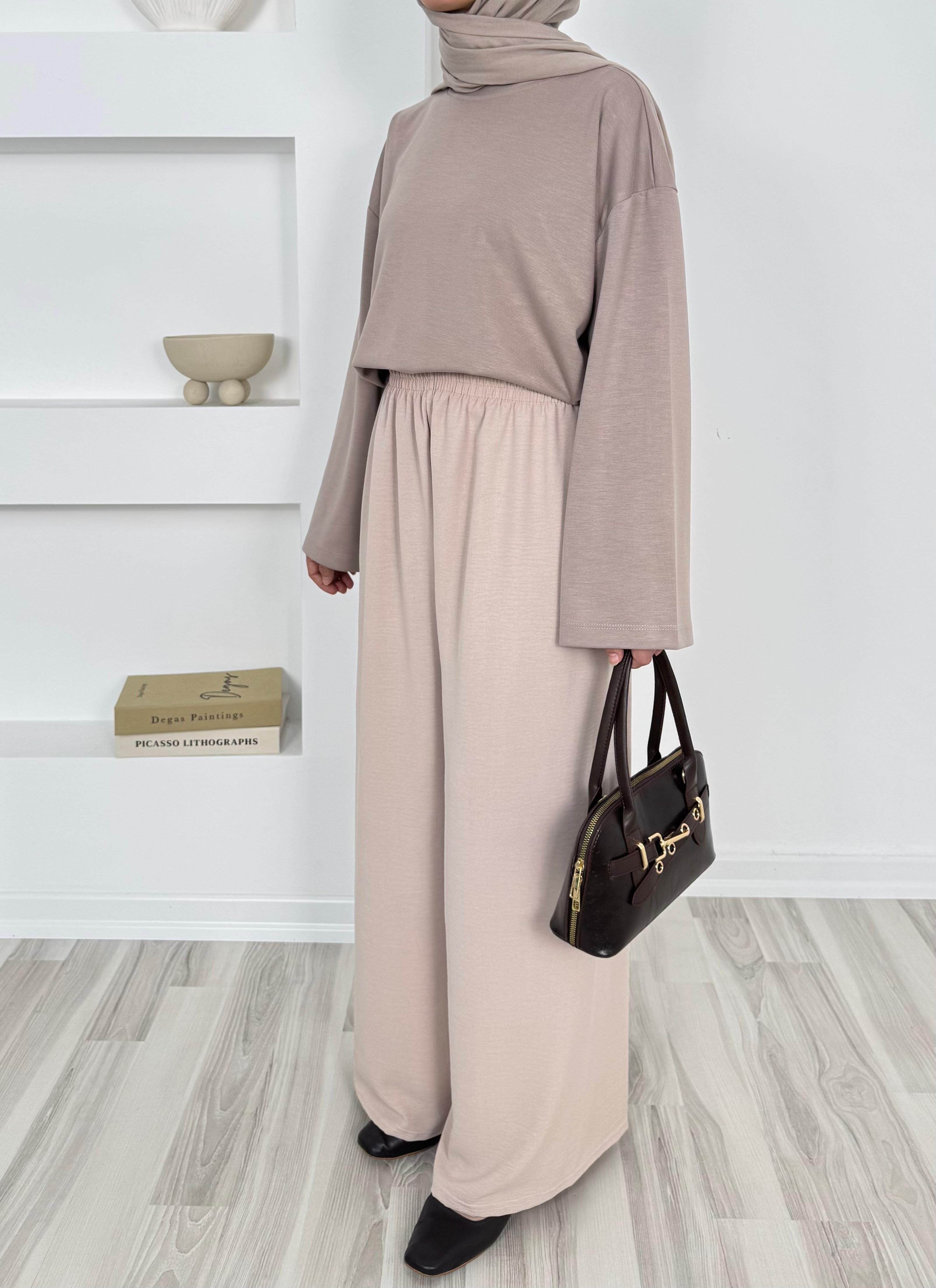 1645-aryobin kumaş bol paça pantolon - taş (1645)