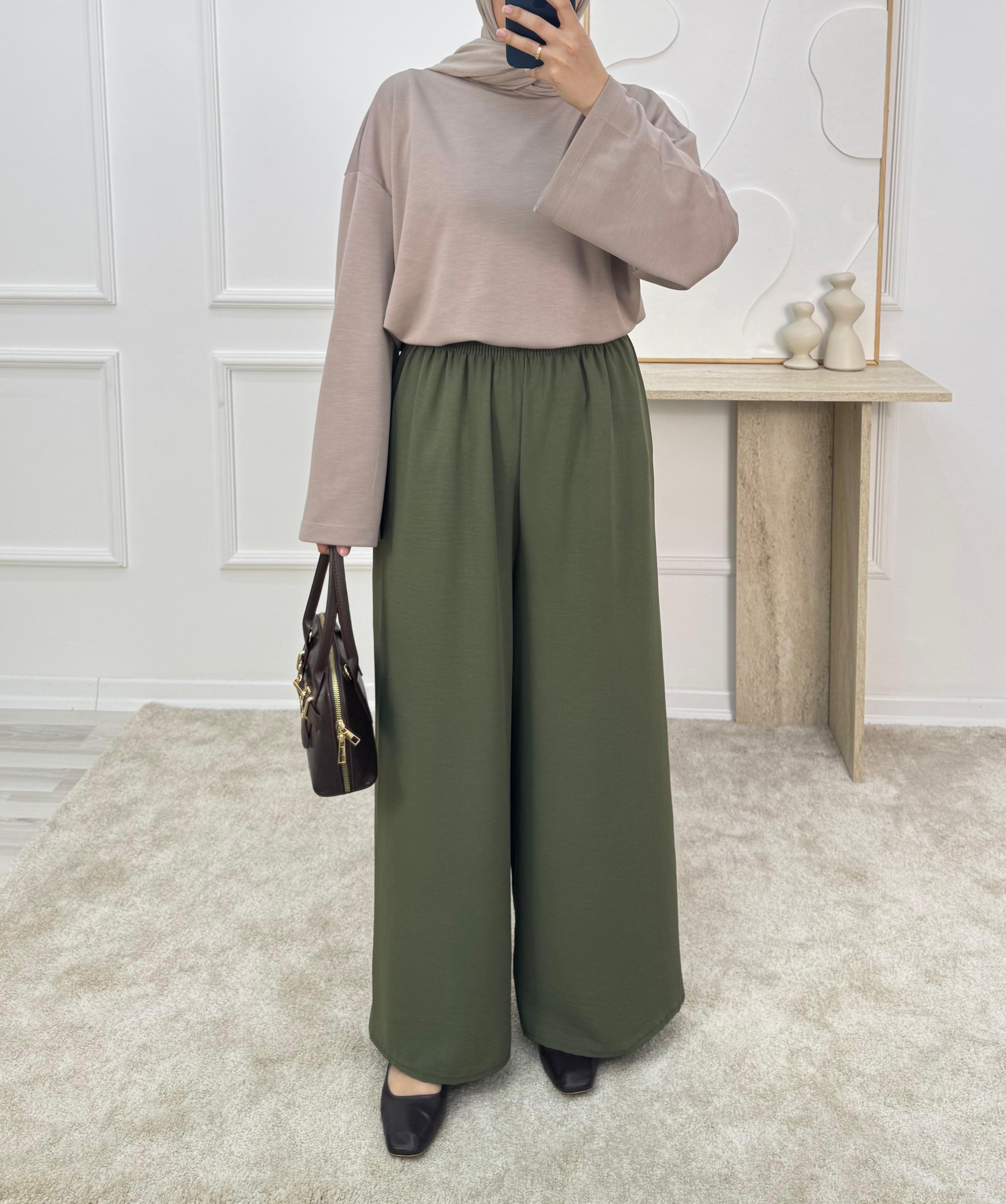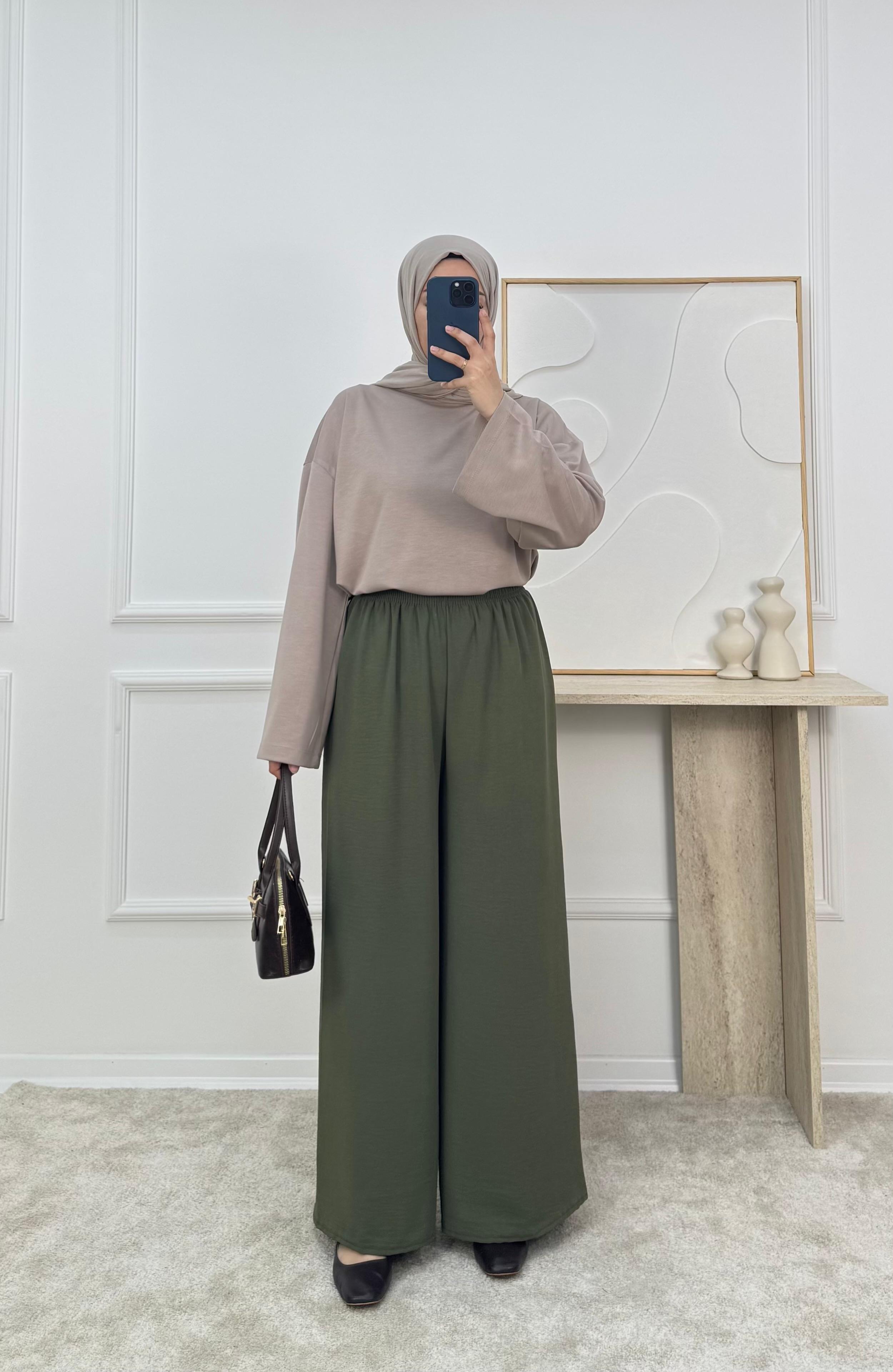 1645-aryobin kumaş bol paça pantolon - yeşil (1645)