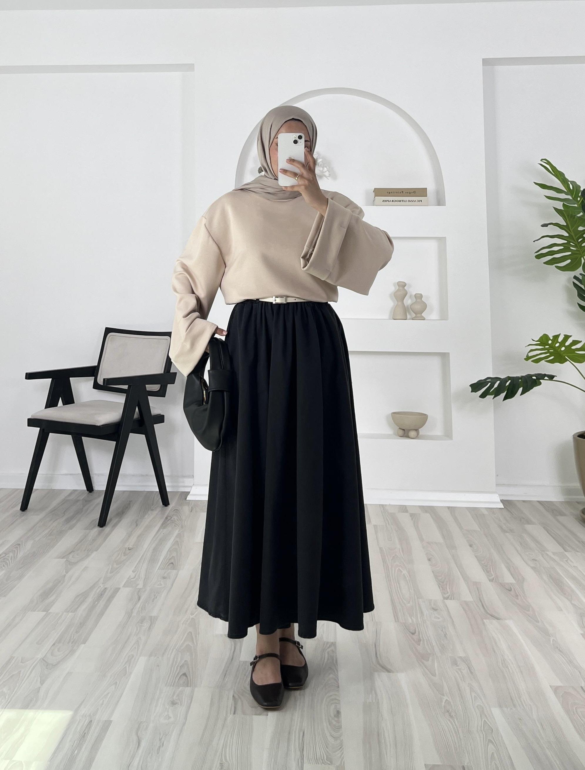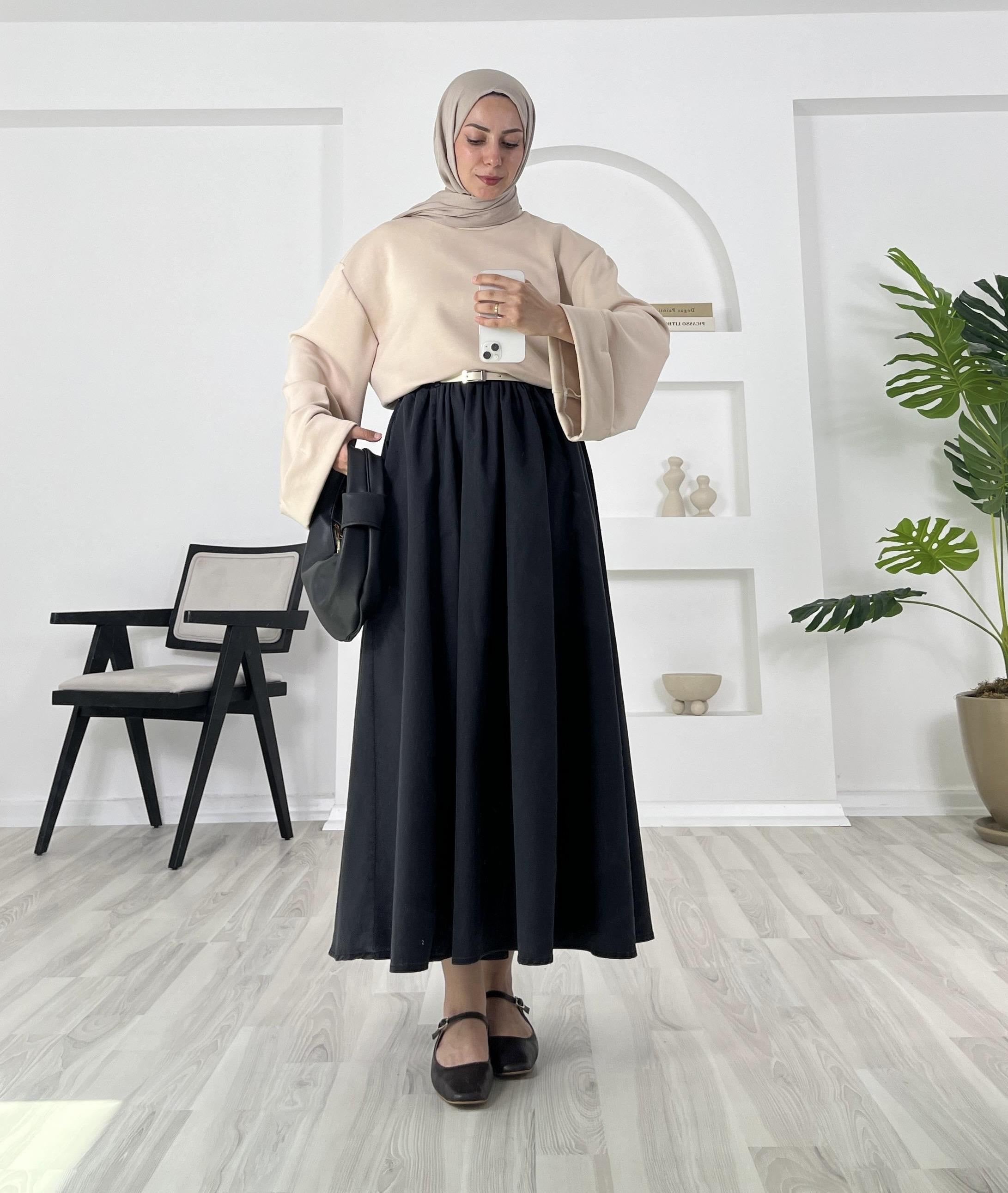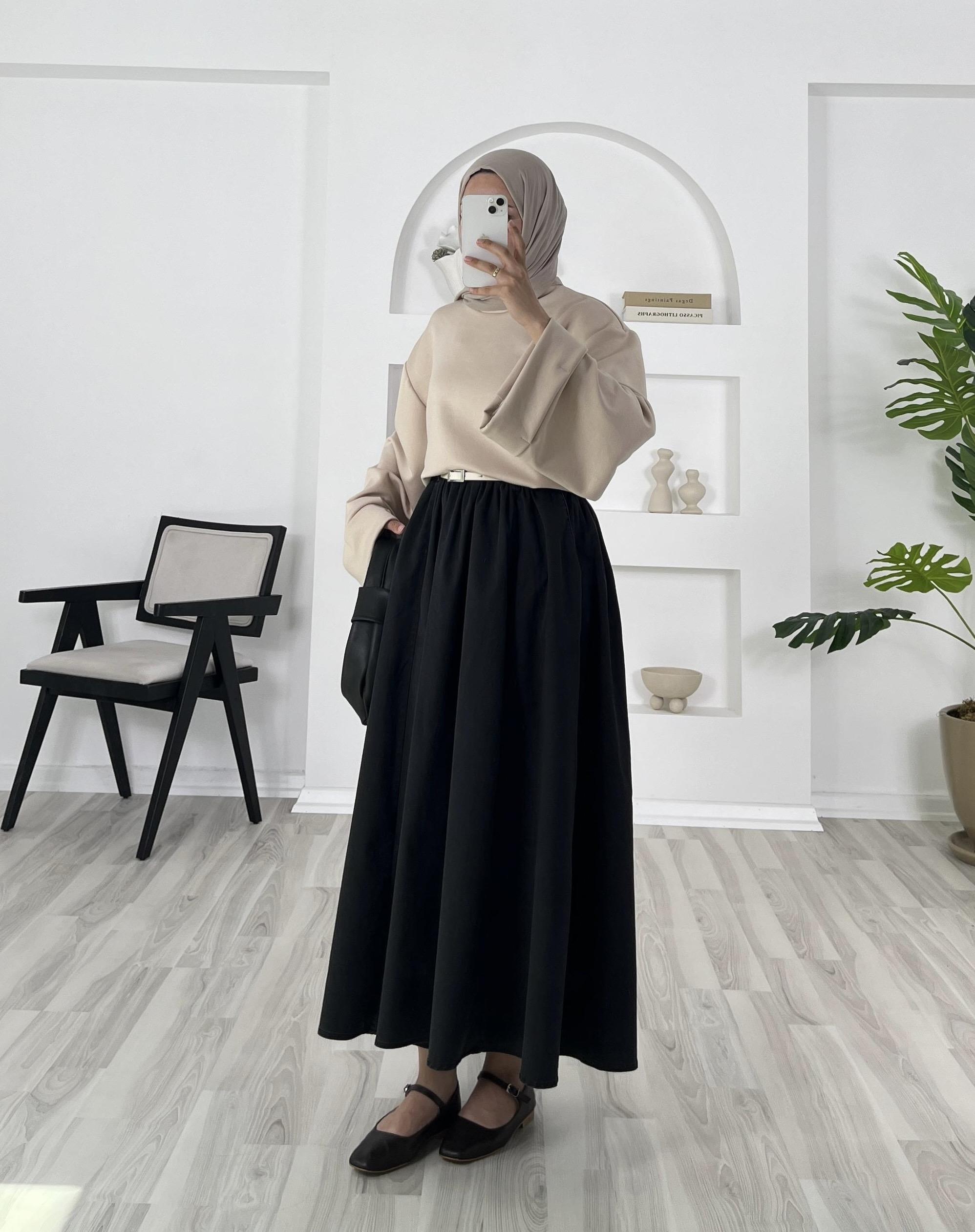 16987 - kot kumaş kemerli cepli etek - siyah (16987)