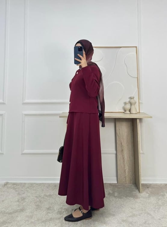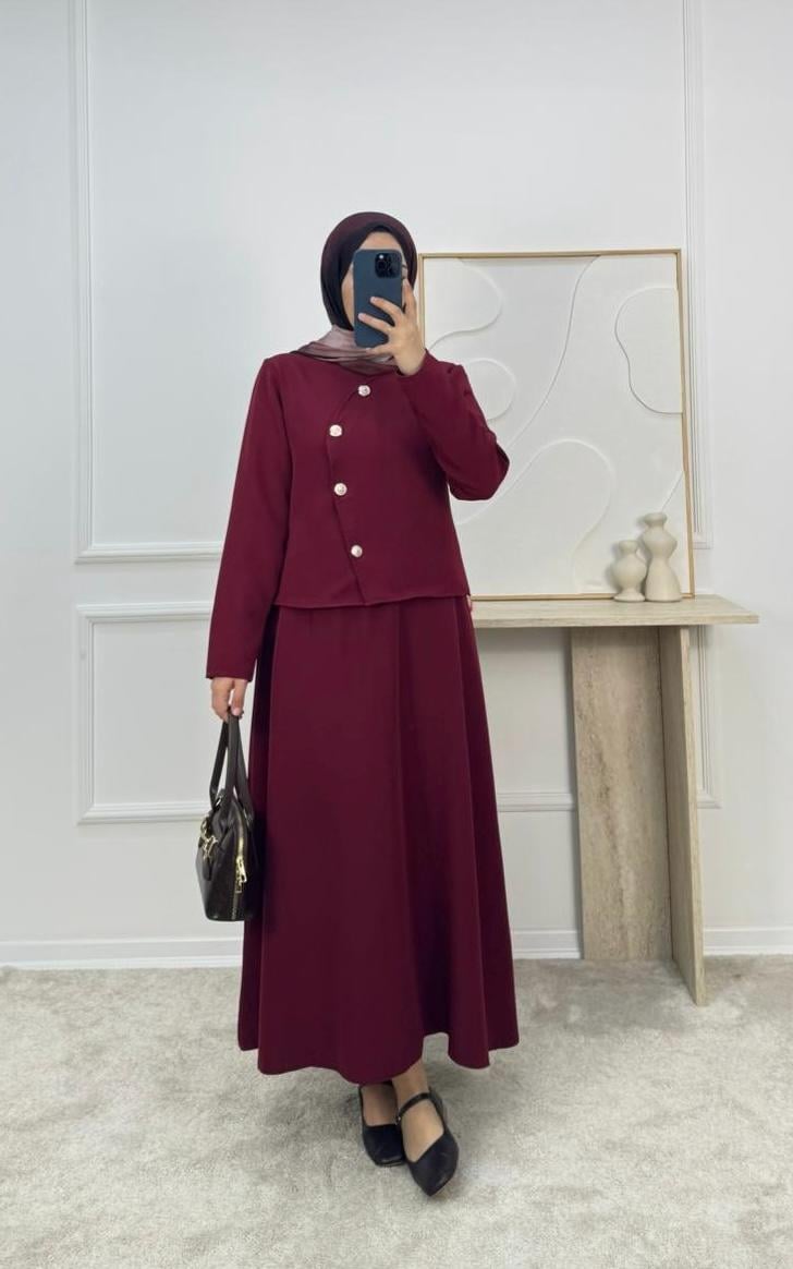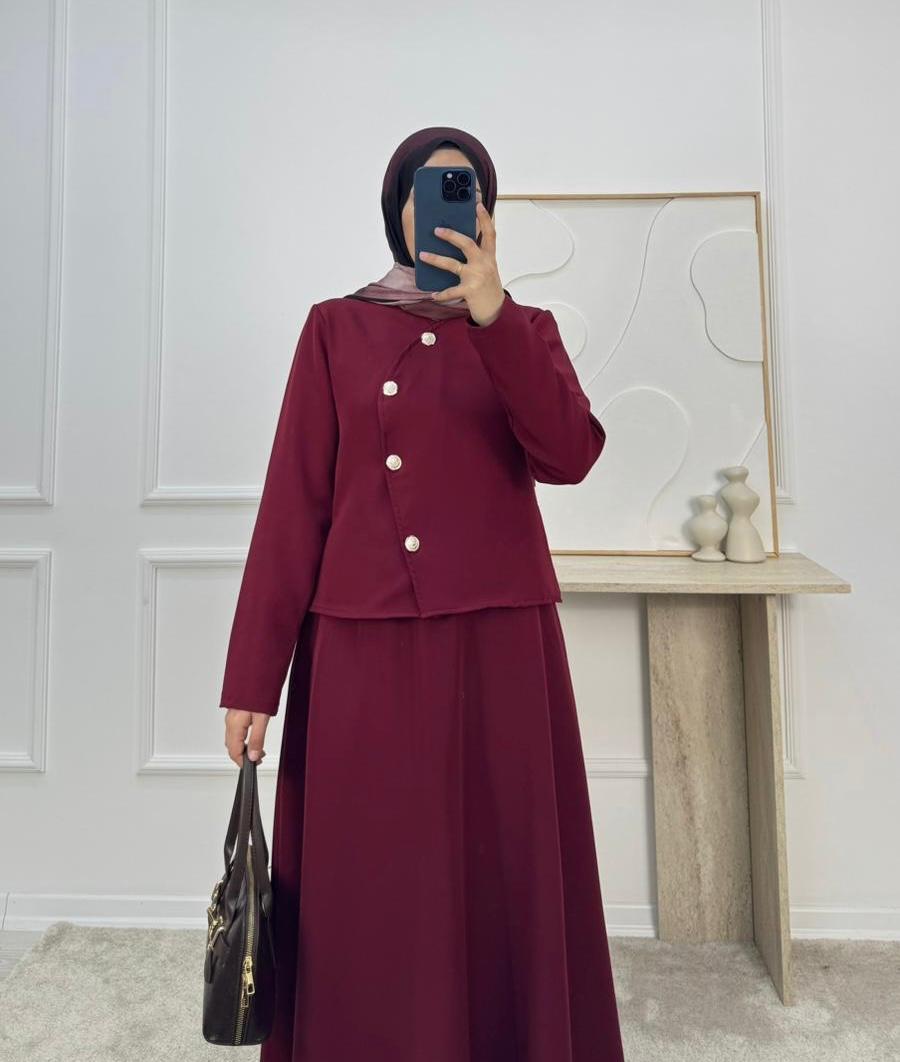 1719-dabıl krep kumaş etekli takım-bordo (1719)