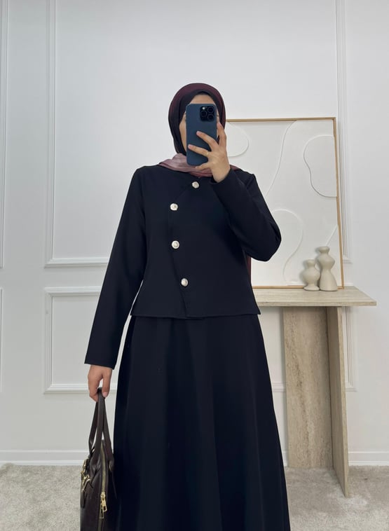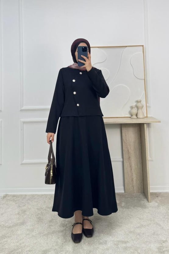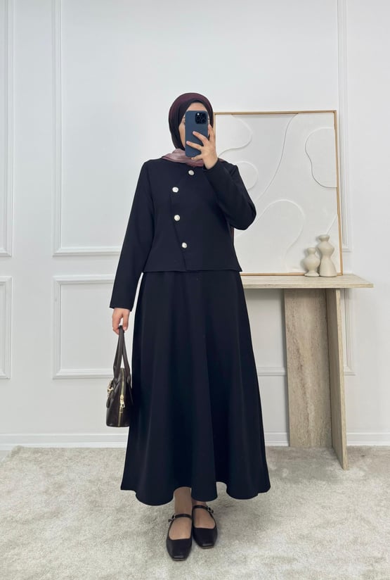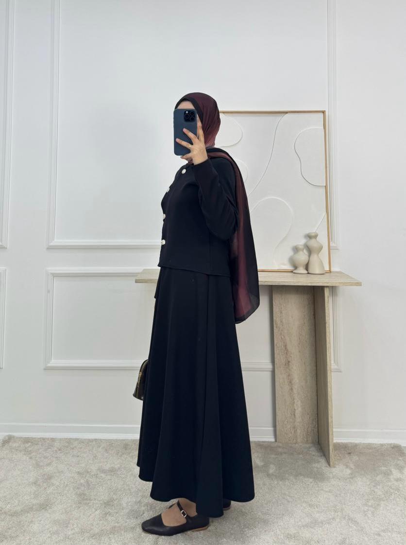 1719-dabıl krep kumaş etekli takım-siyah (1719)