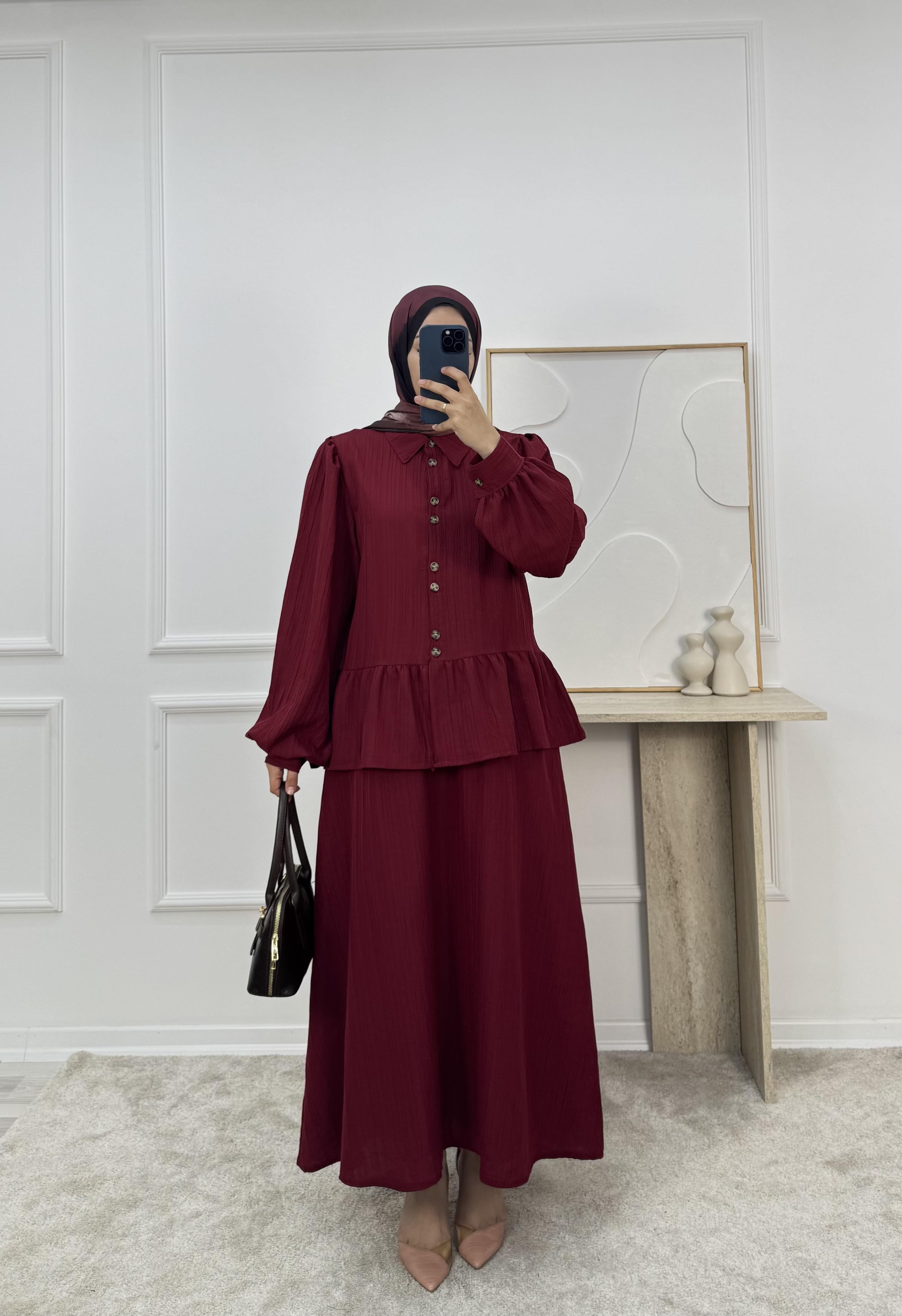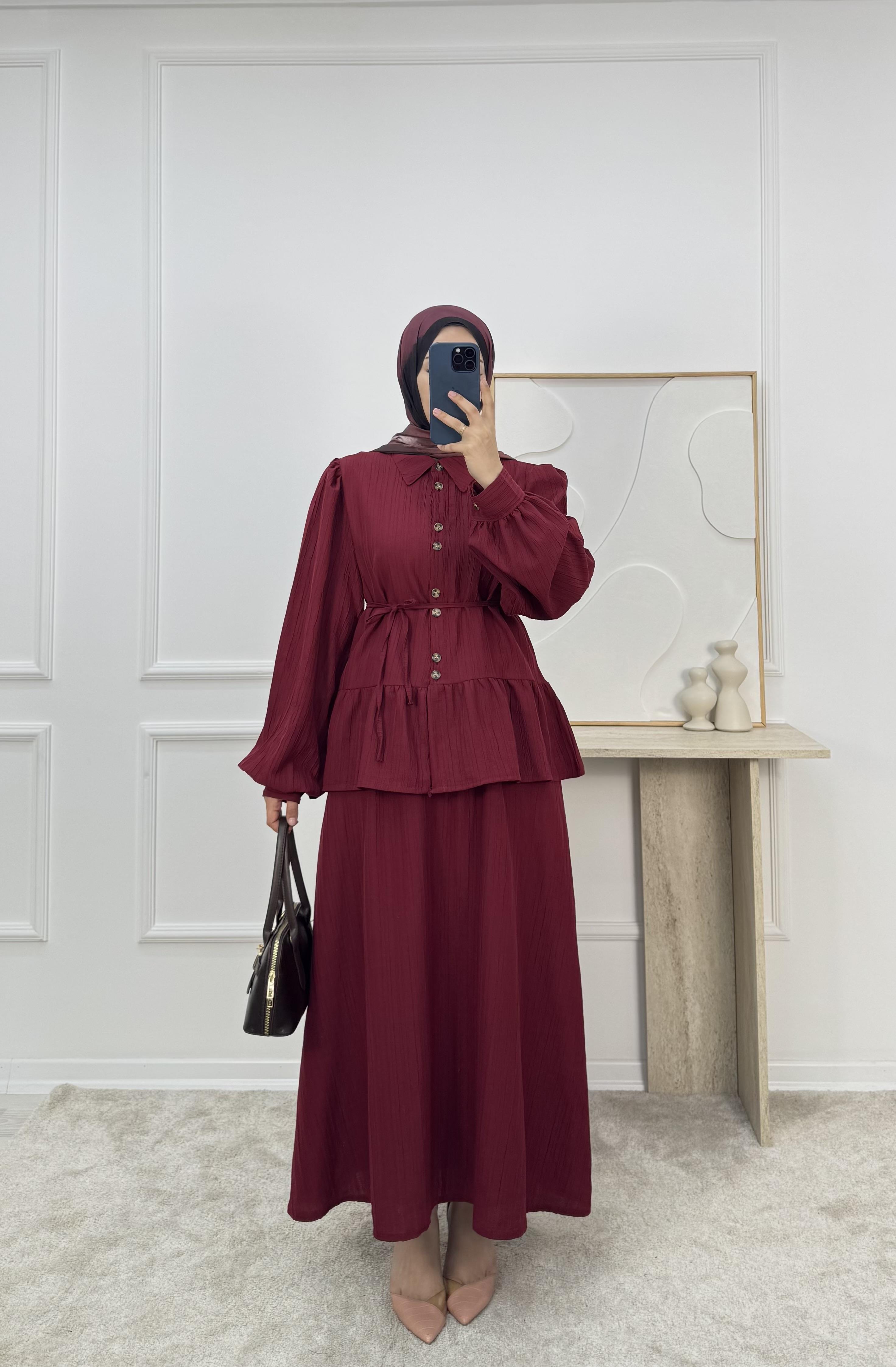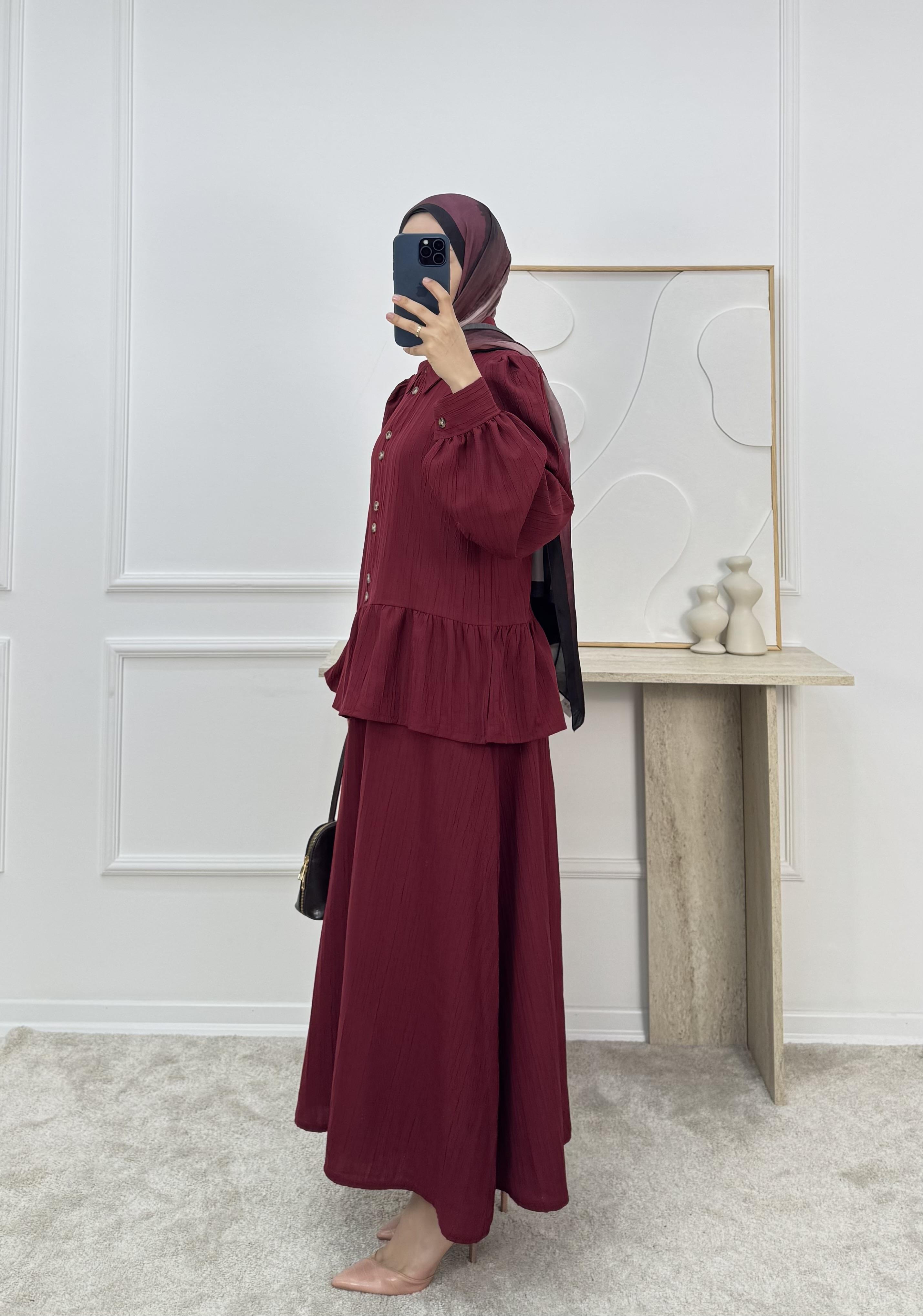 1725-maya kumaş etekli takım-bordo (1725)
