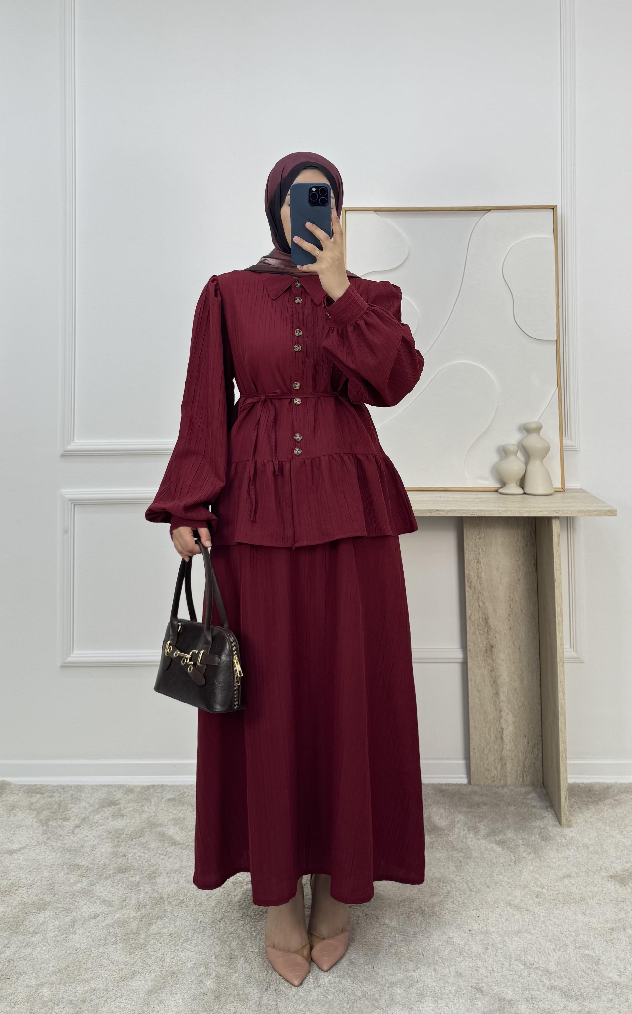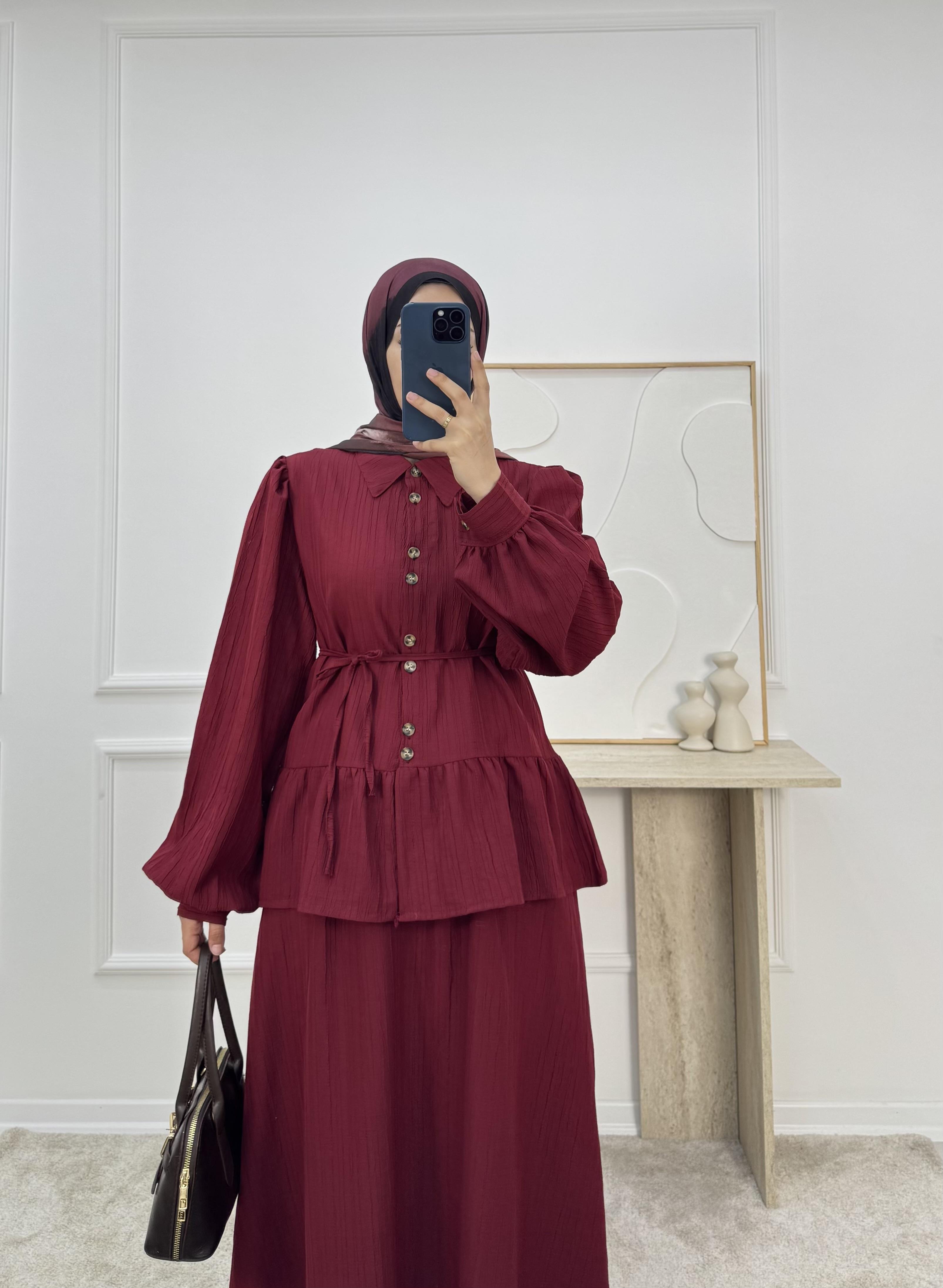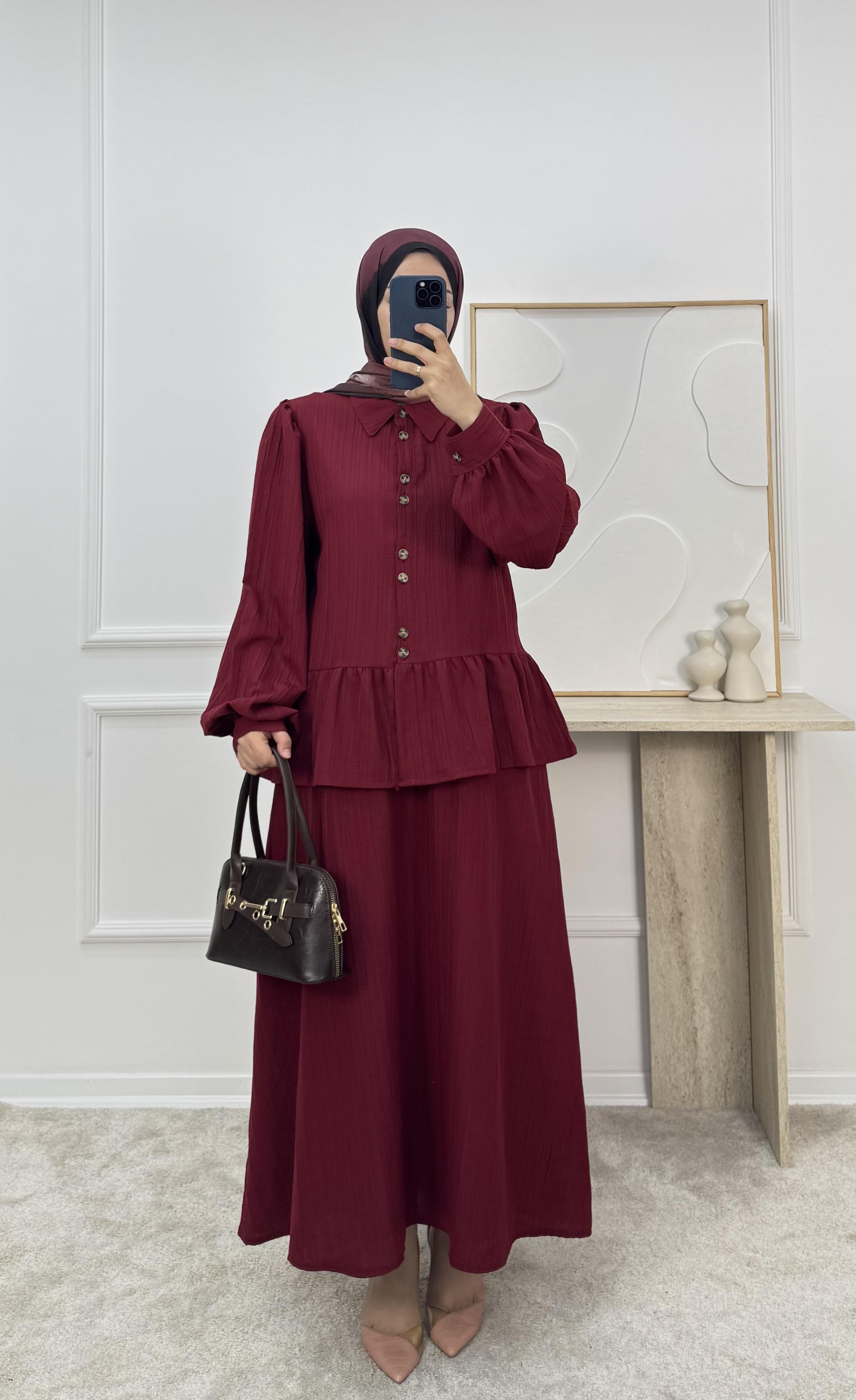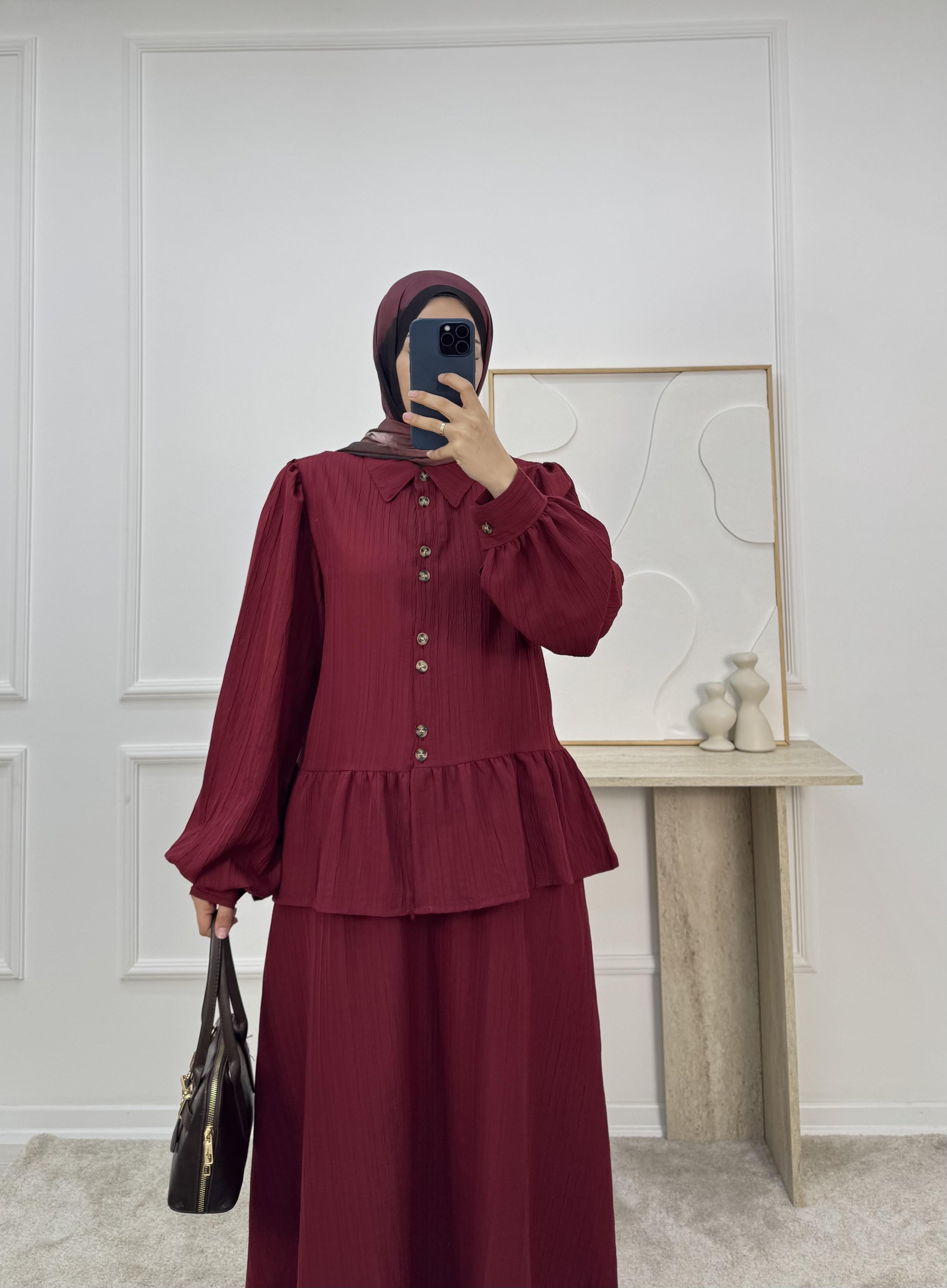 1725-maya kumaş etekli takım-bordo (1725)