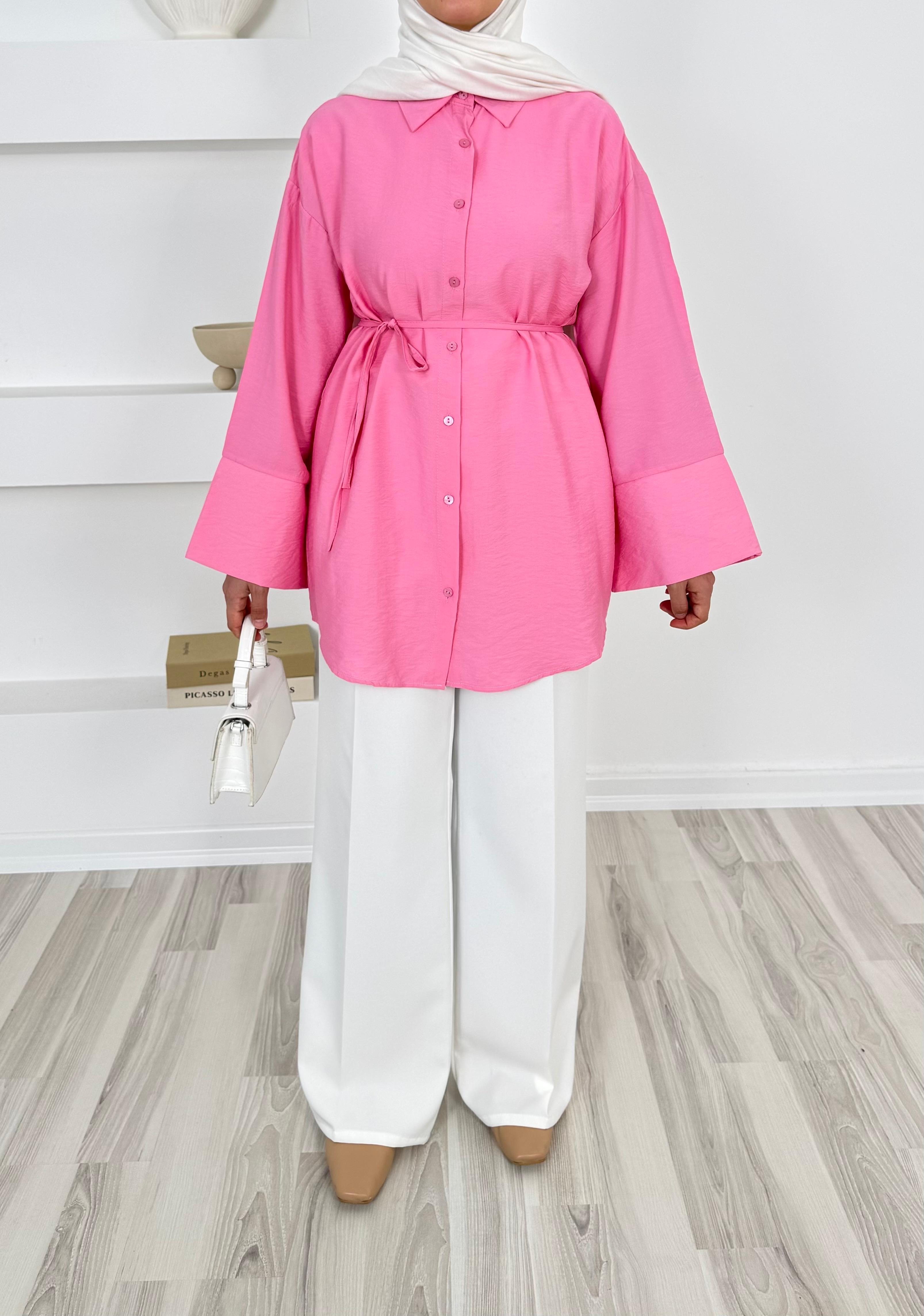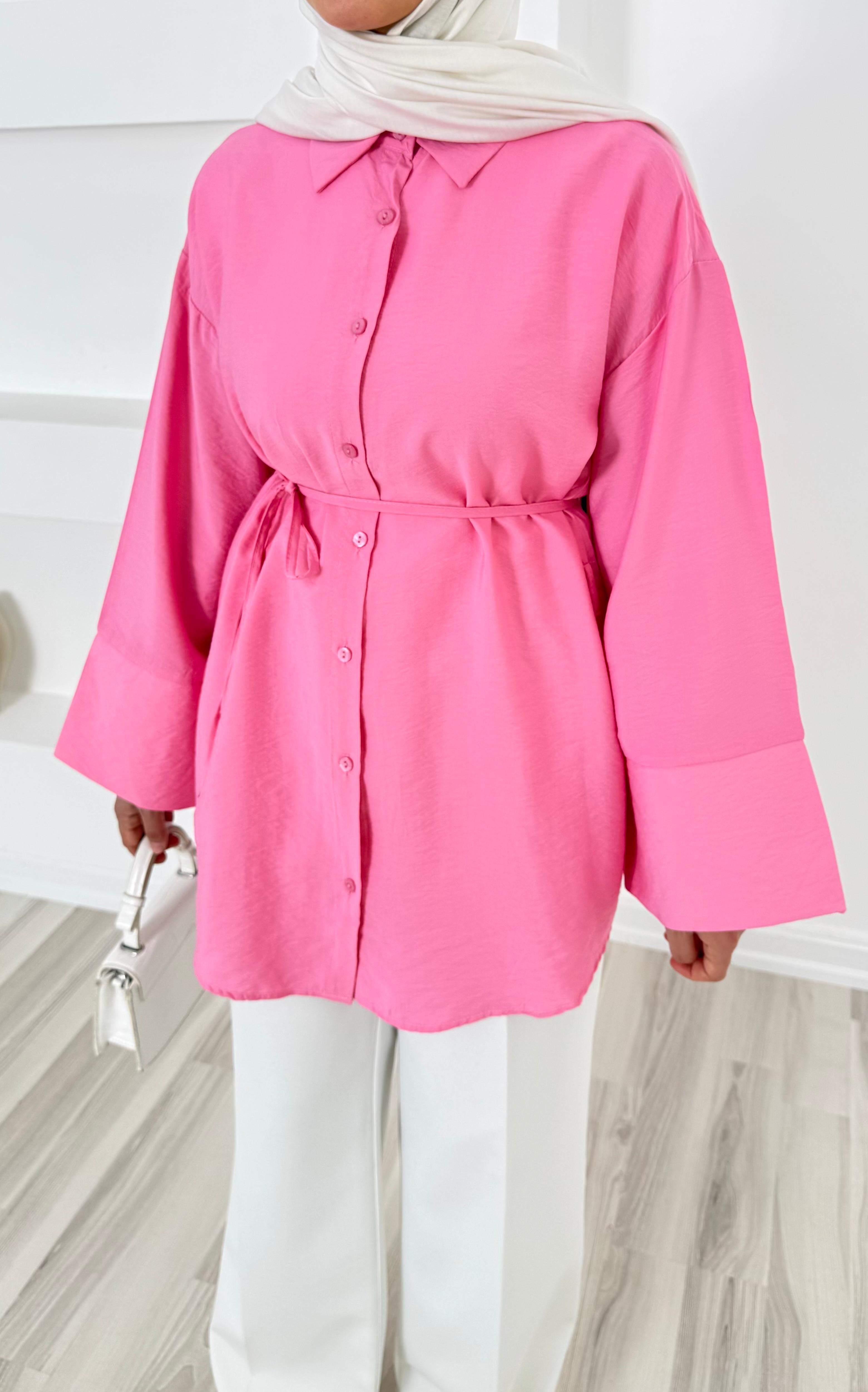 1748- lilyum kumaş kuşaklı gömlek-pembe (1748)