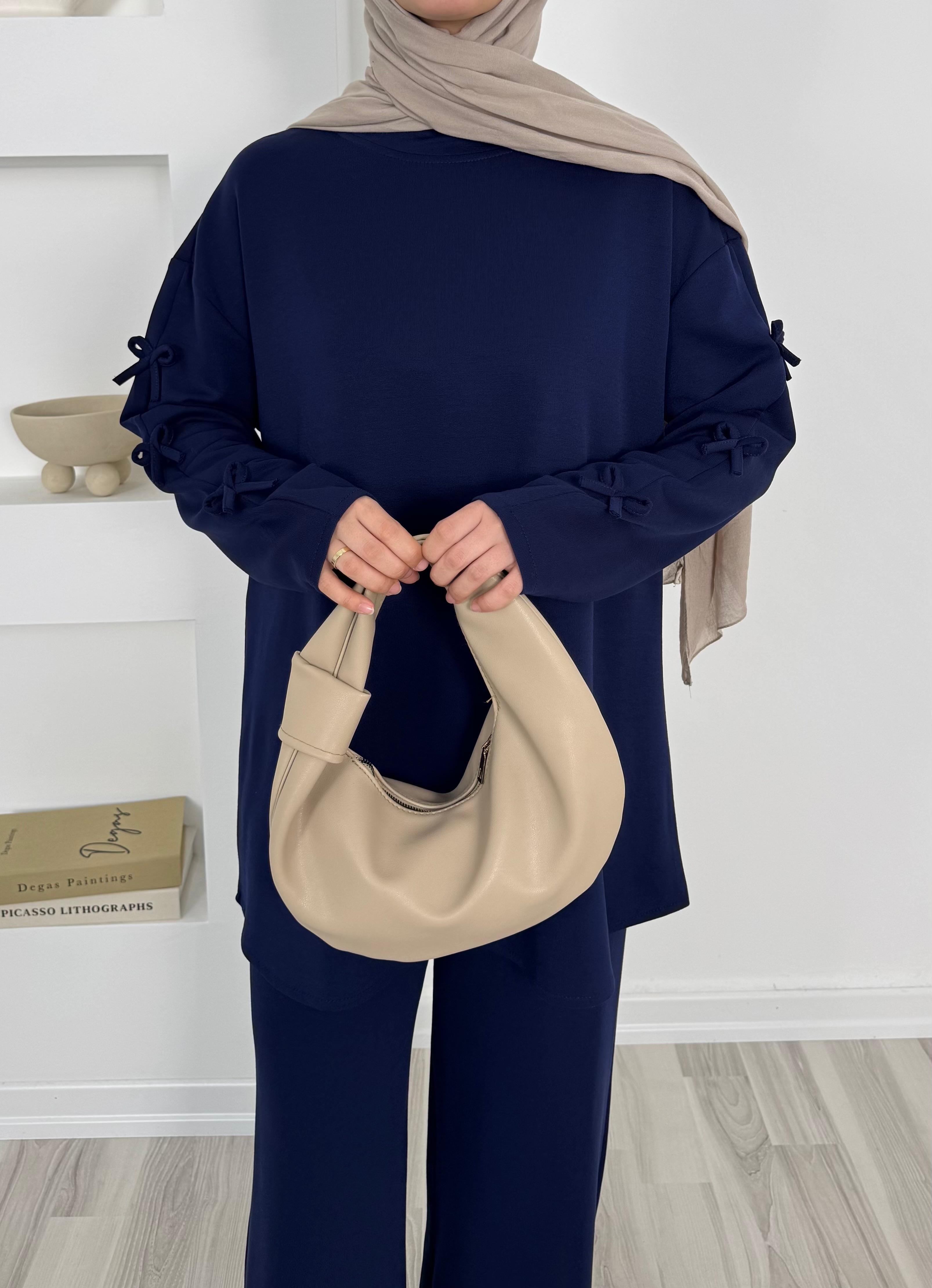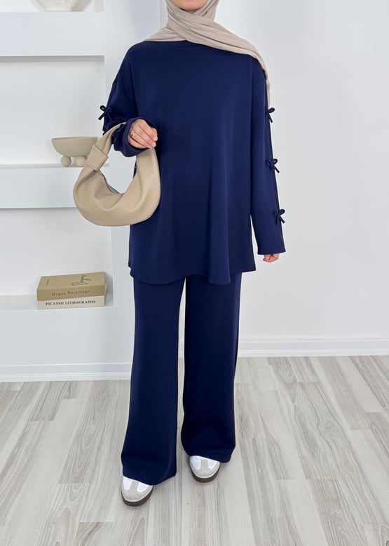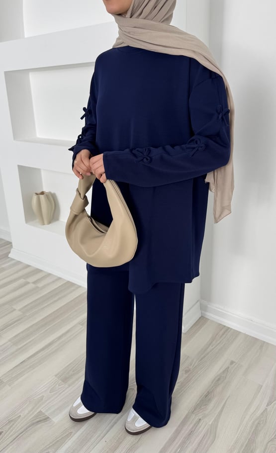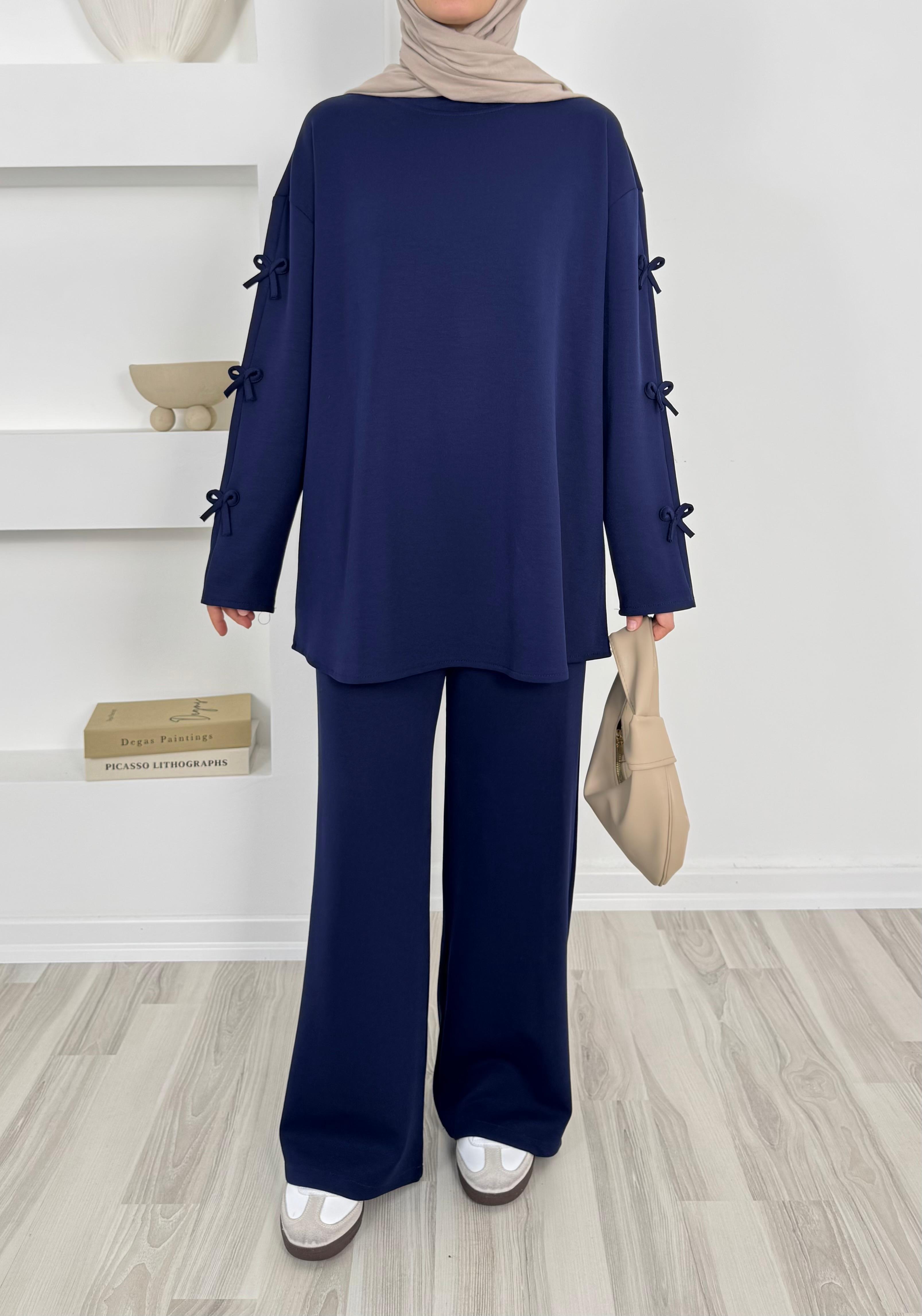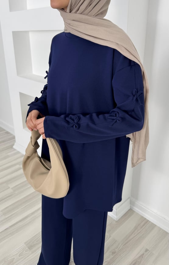 1790- oysho kumaş kolları fiyonk detaylı takım -lacivert (1790)