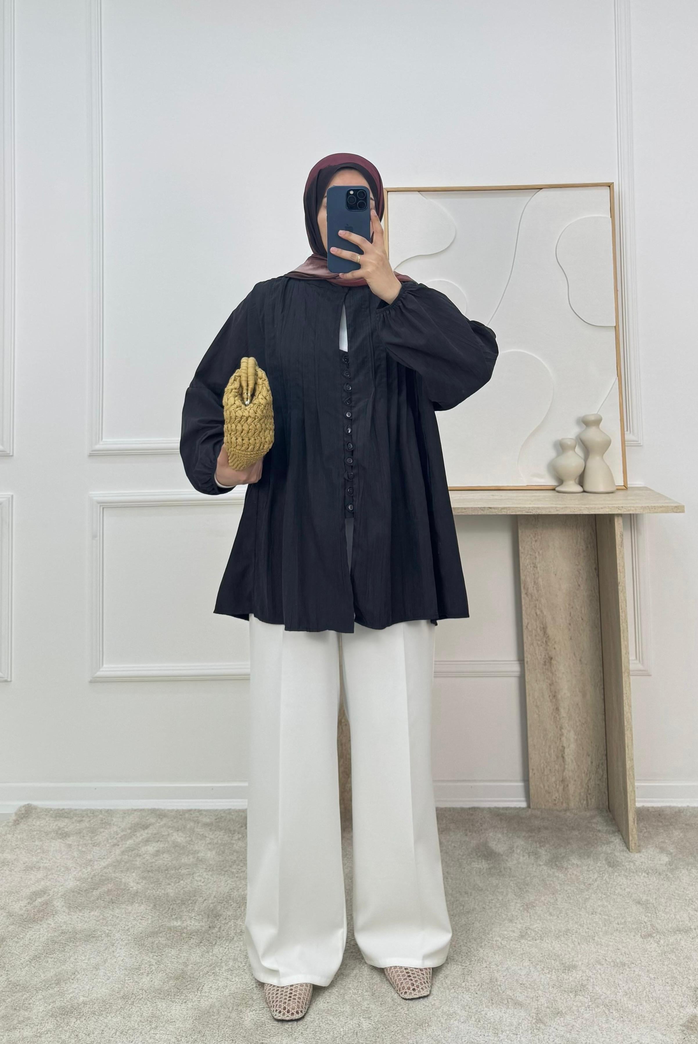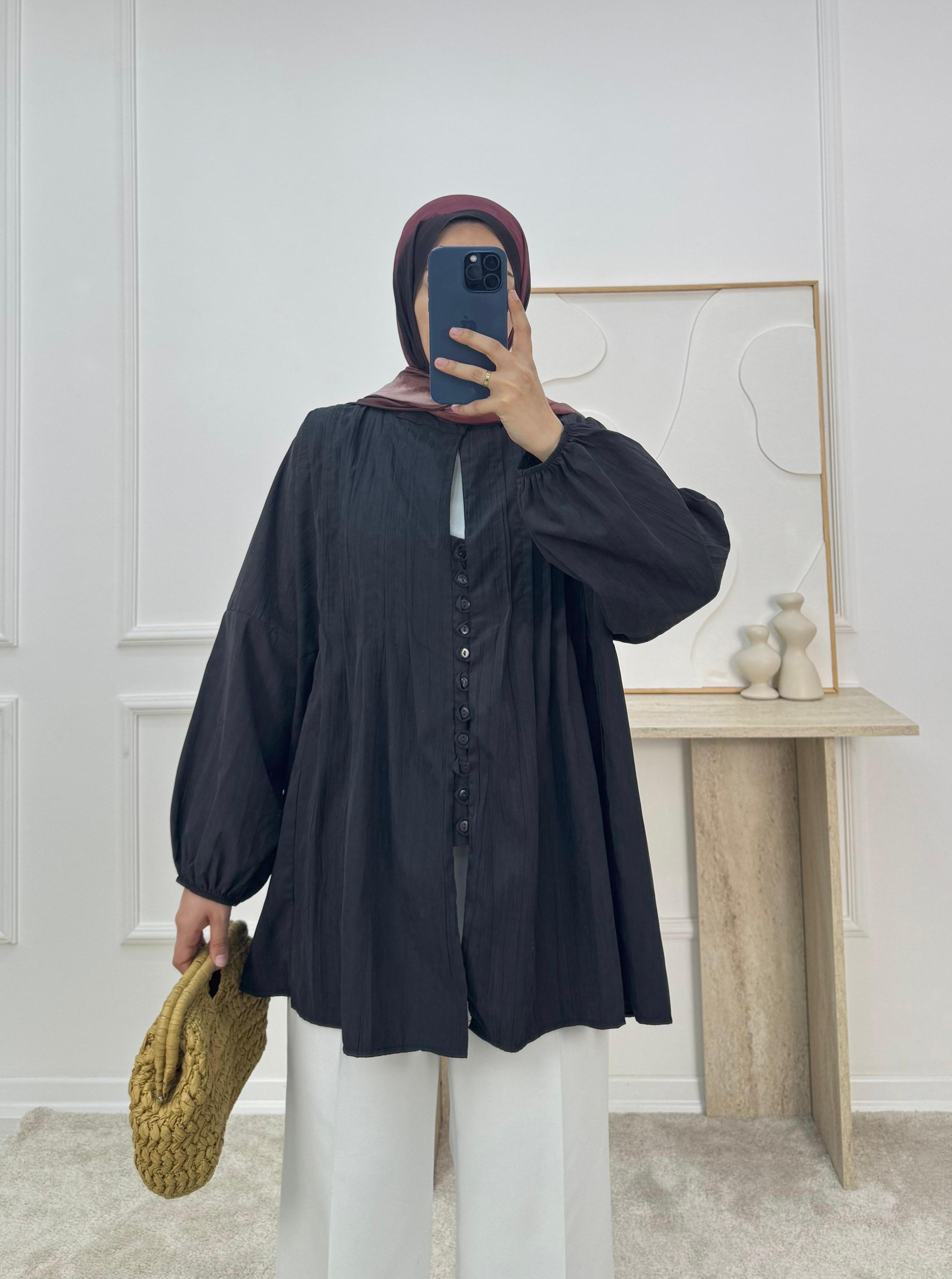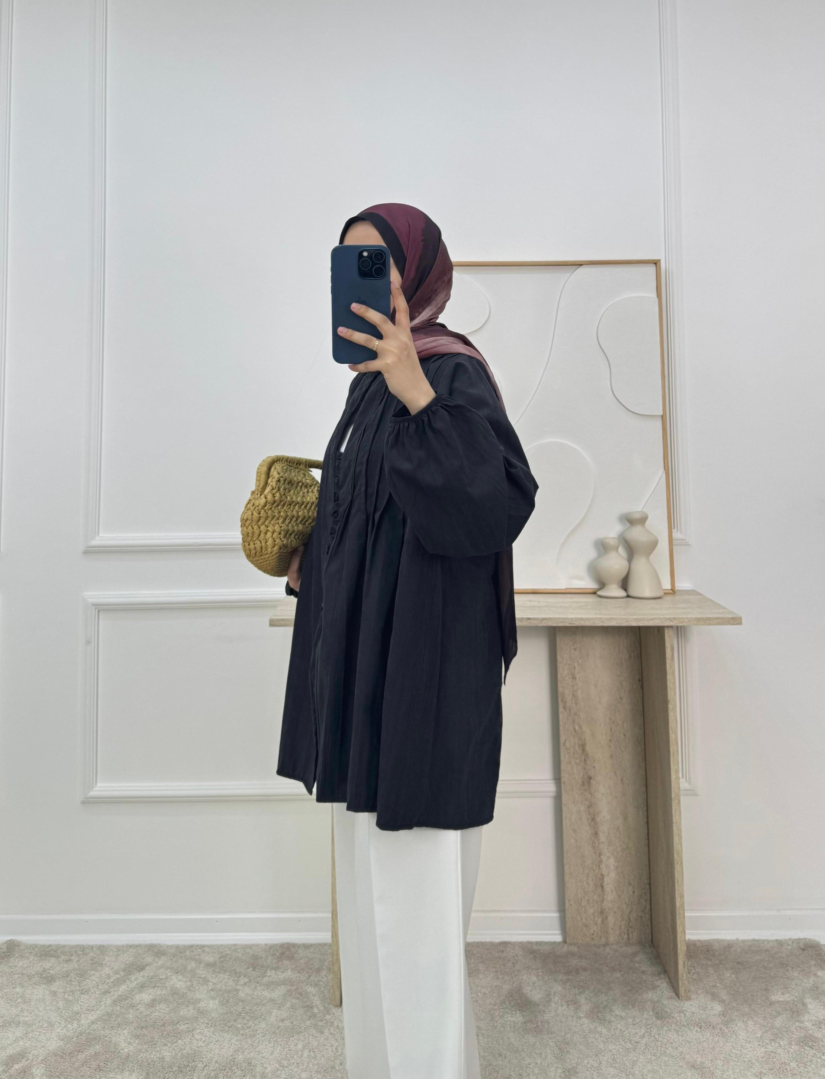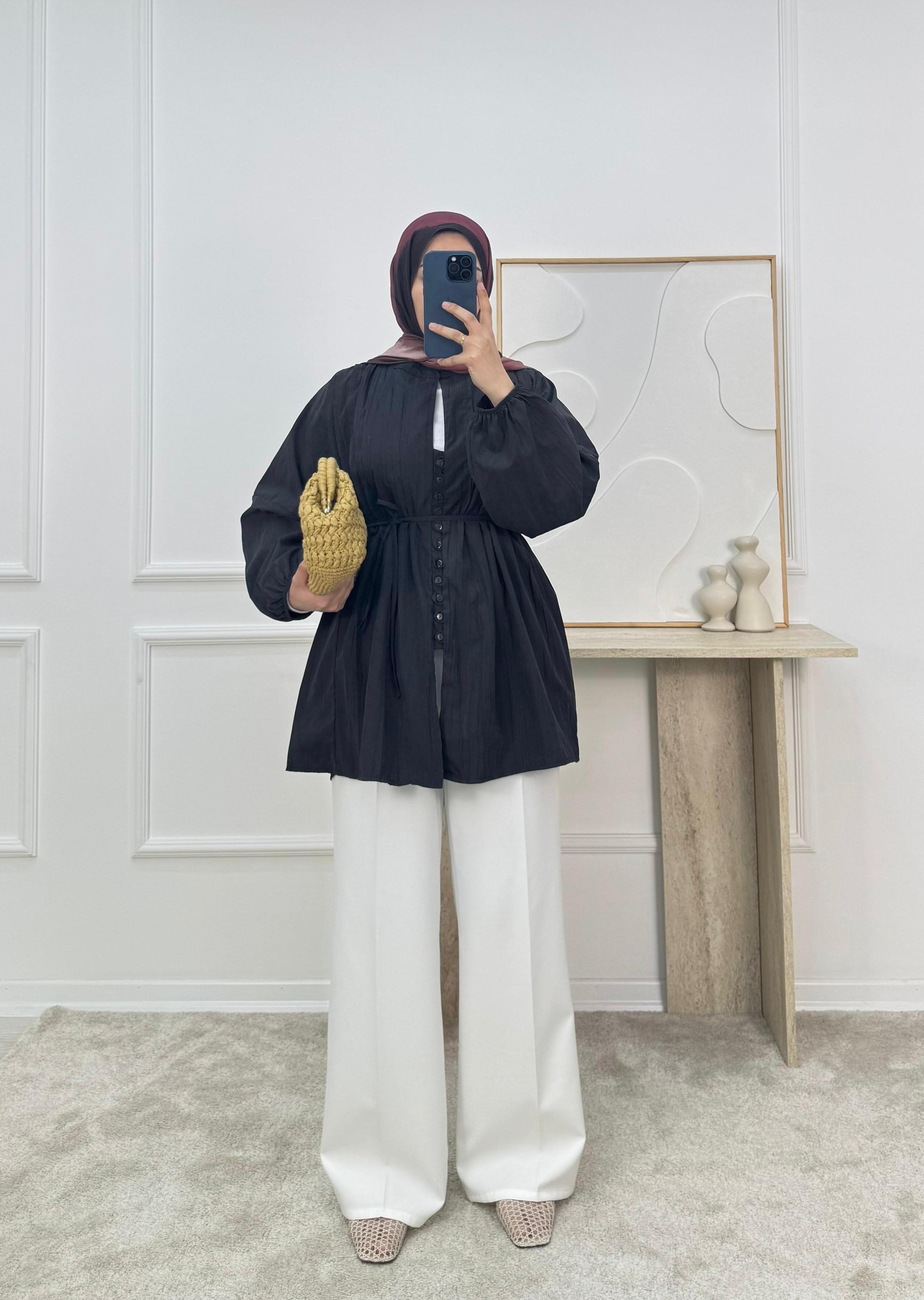 1800-çilek kumaş nevrullü kuşaklı gömlek-siyah (1800)