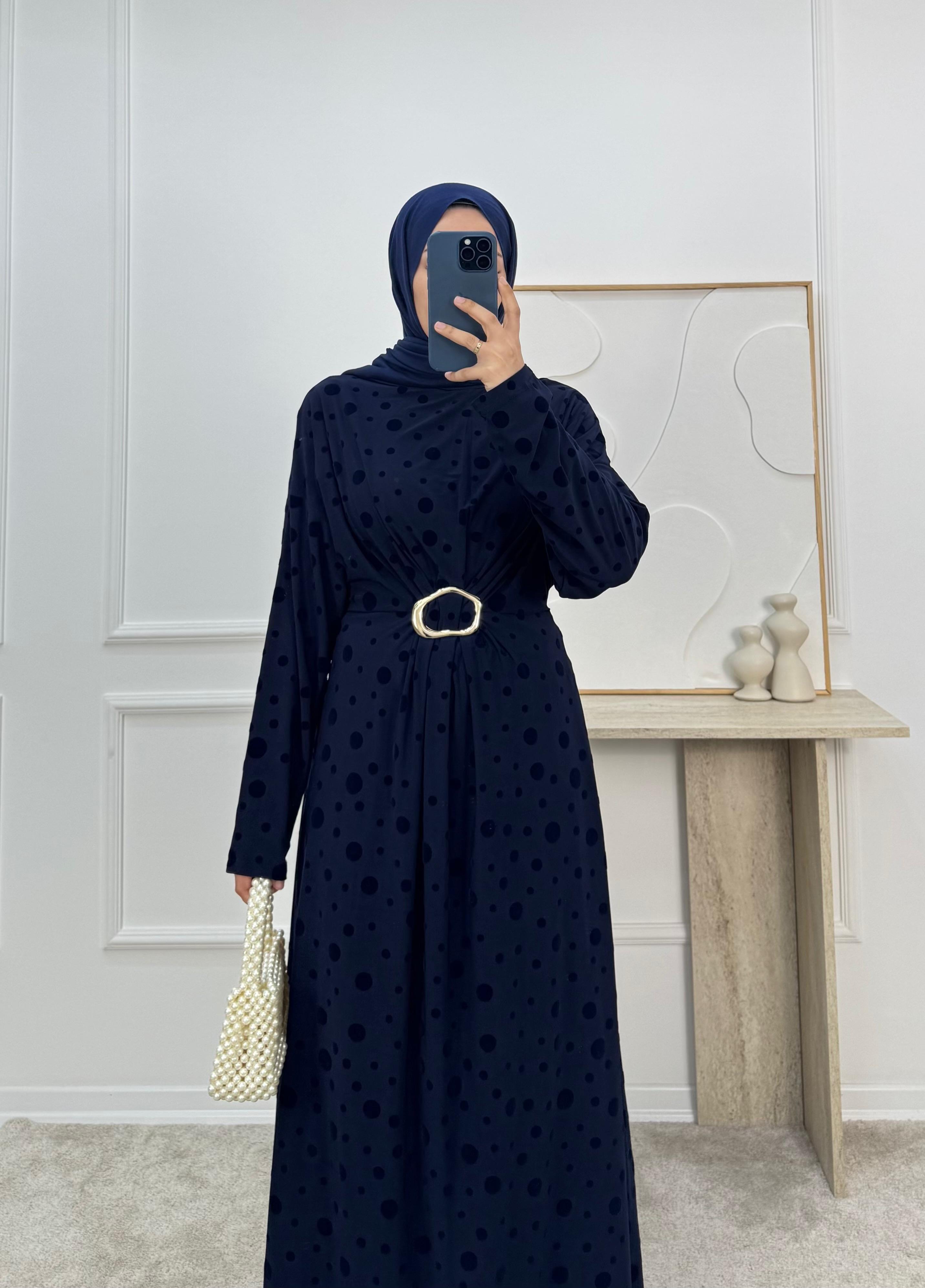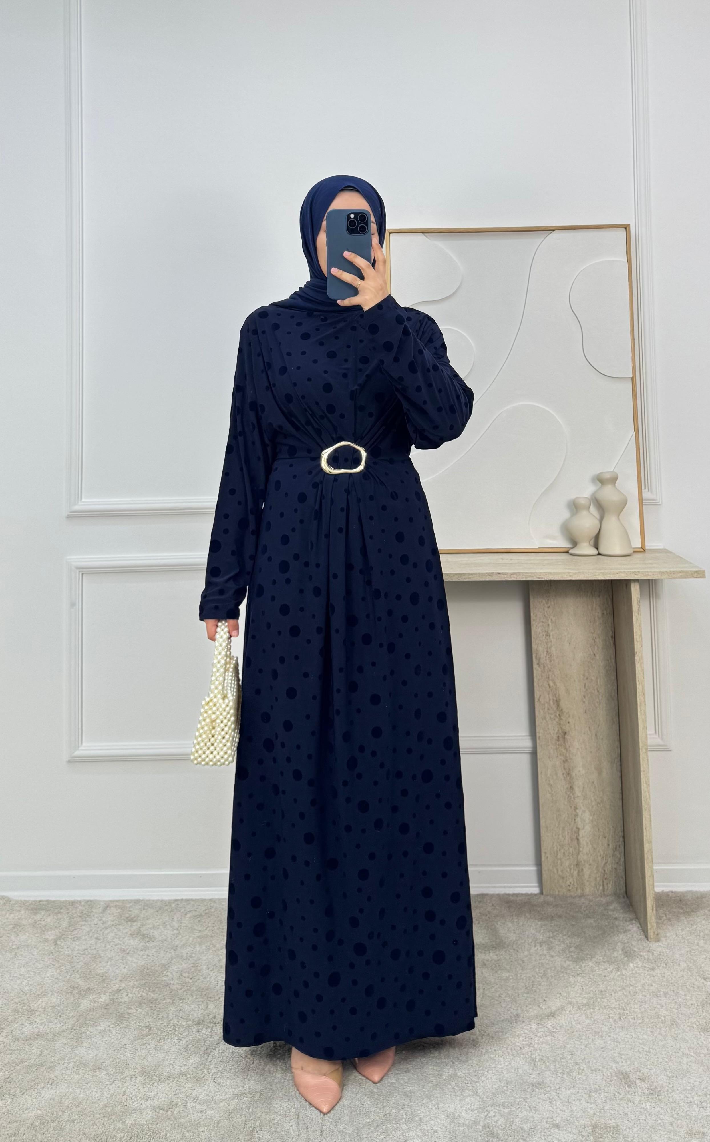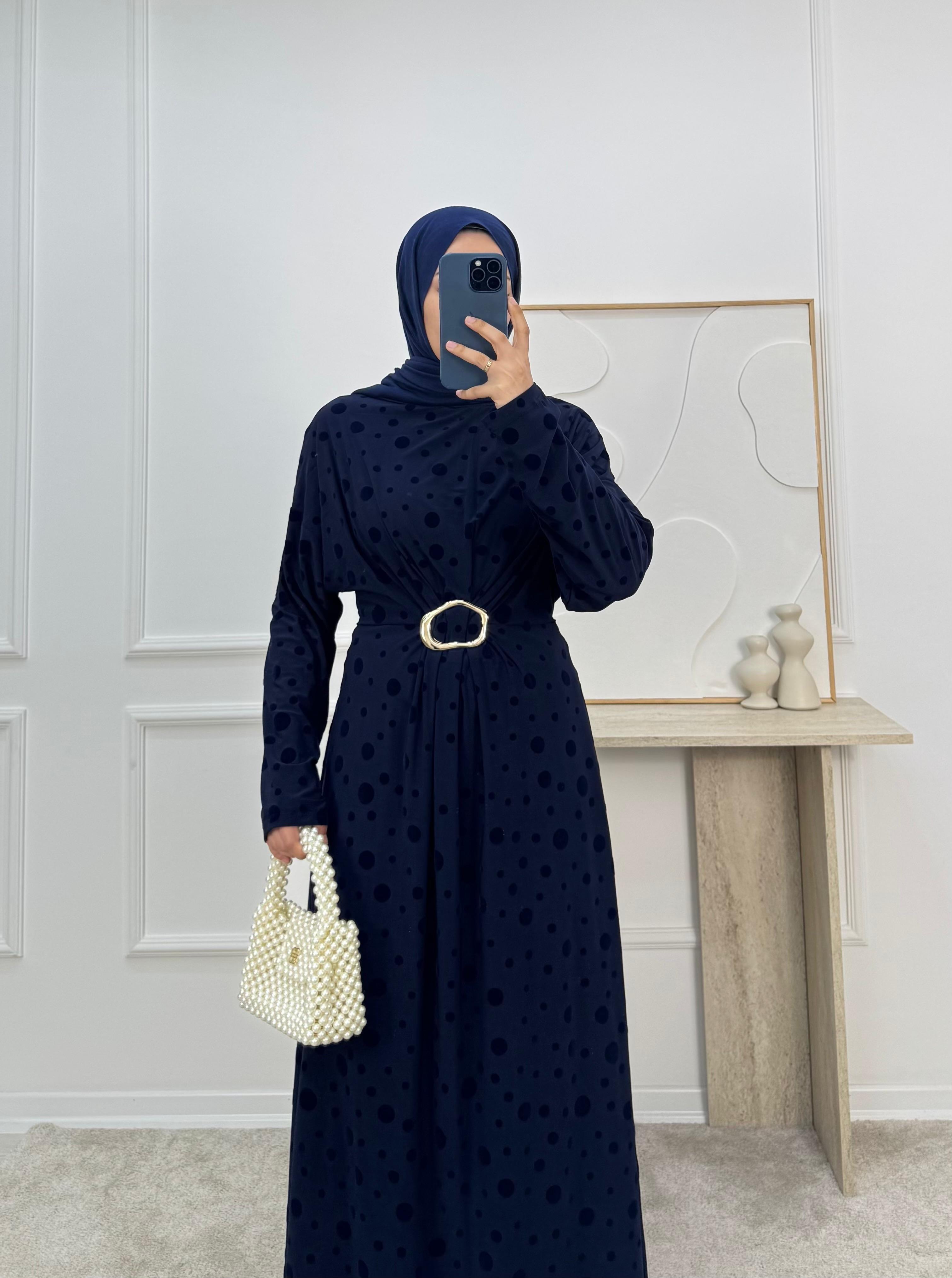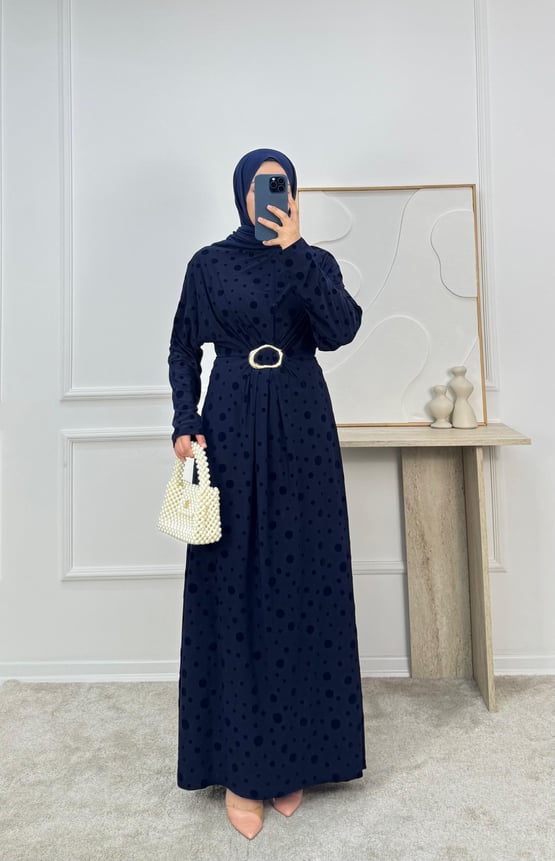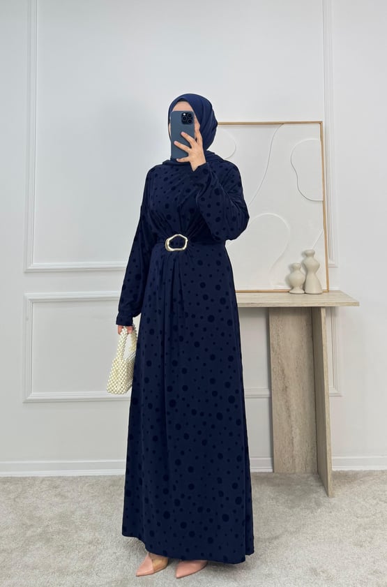 önü tokalı benekli elbise