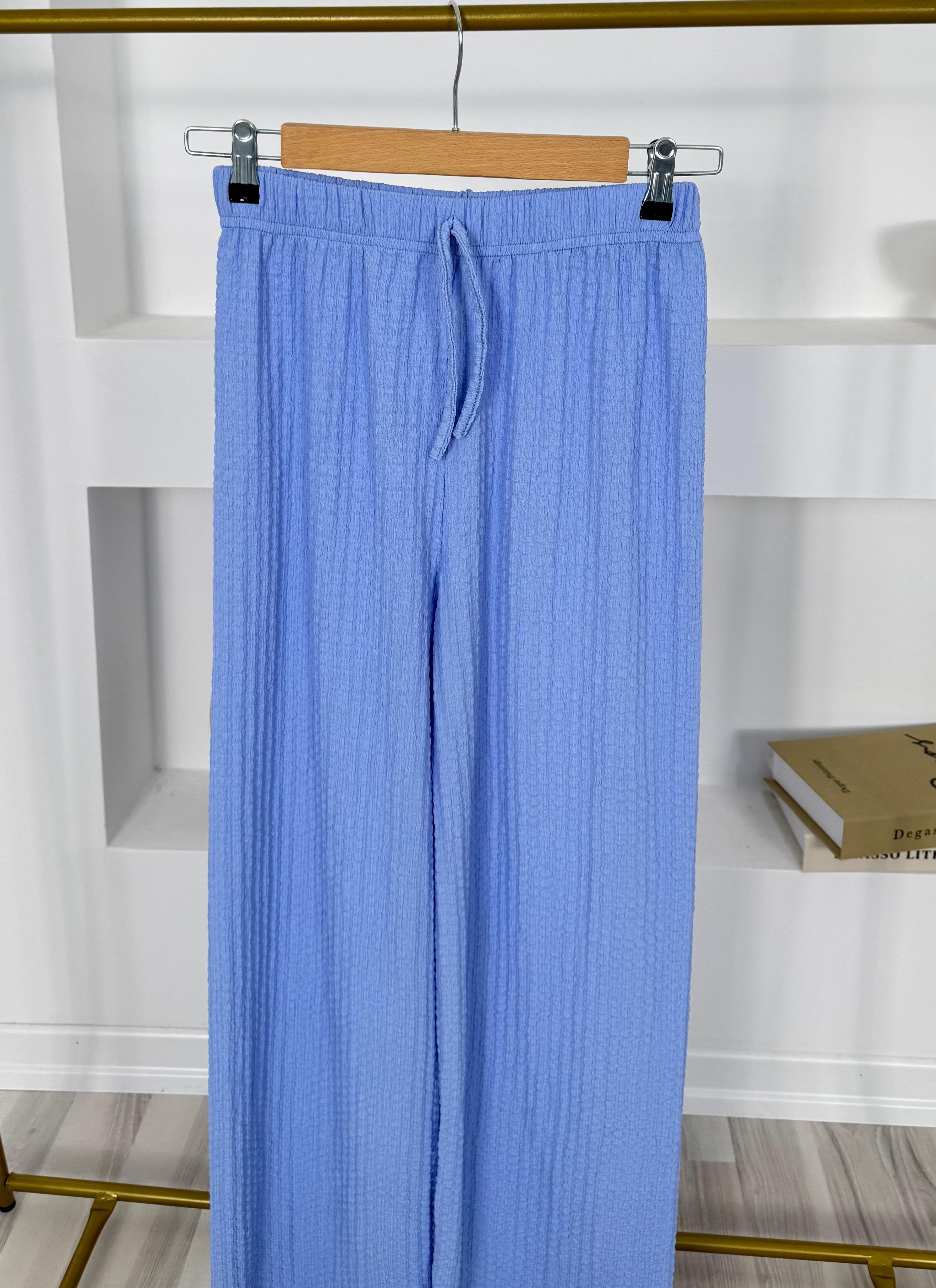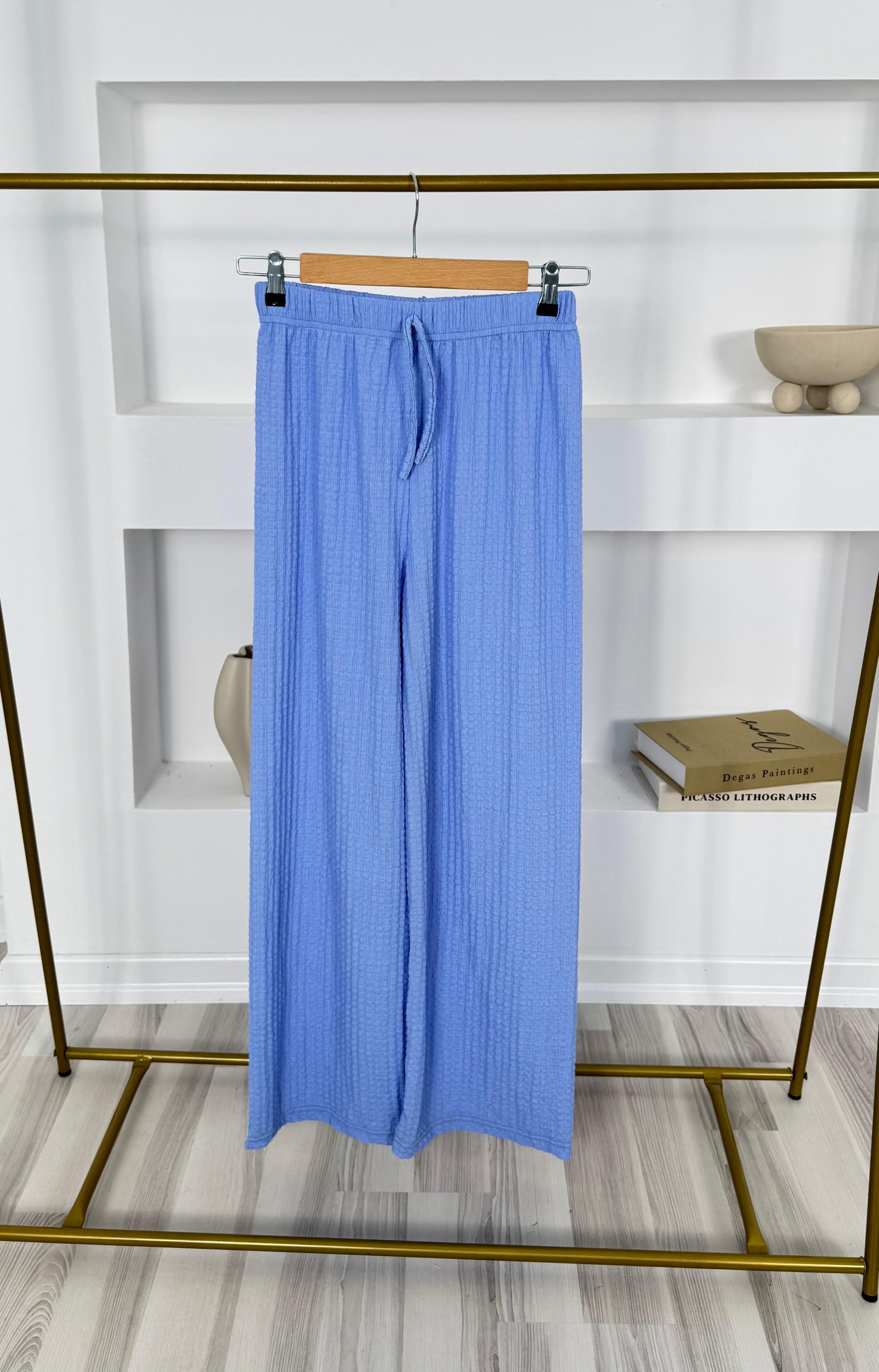 1814-babıl kumaş beli lastikli pantolon-bebe mavi (1814)