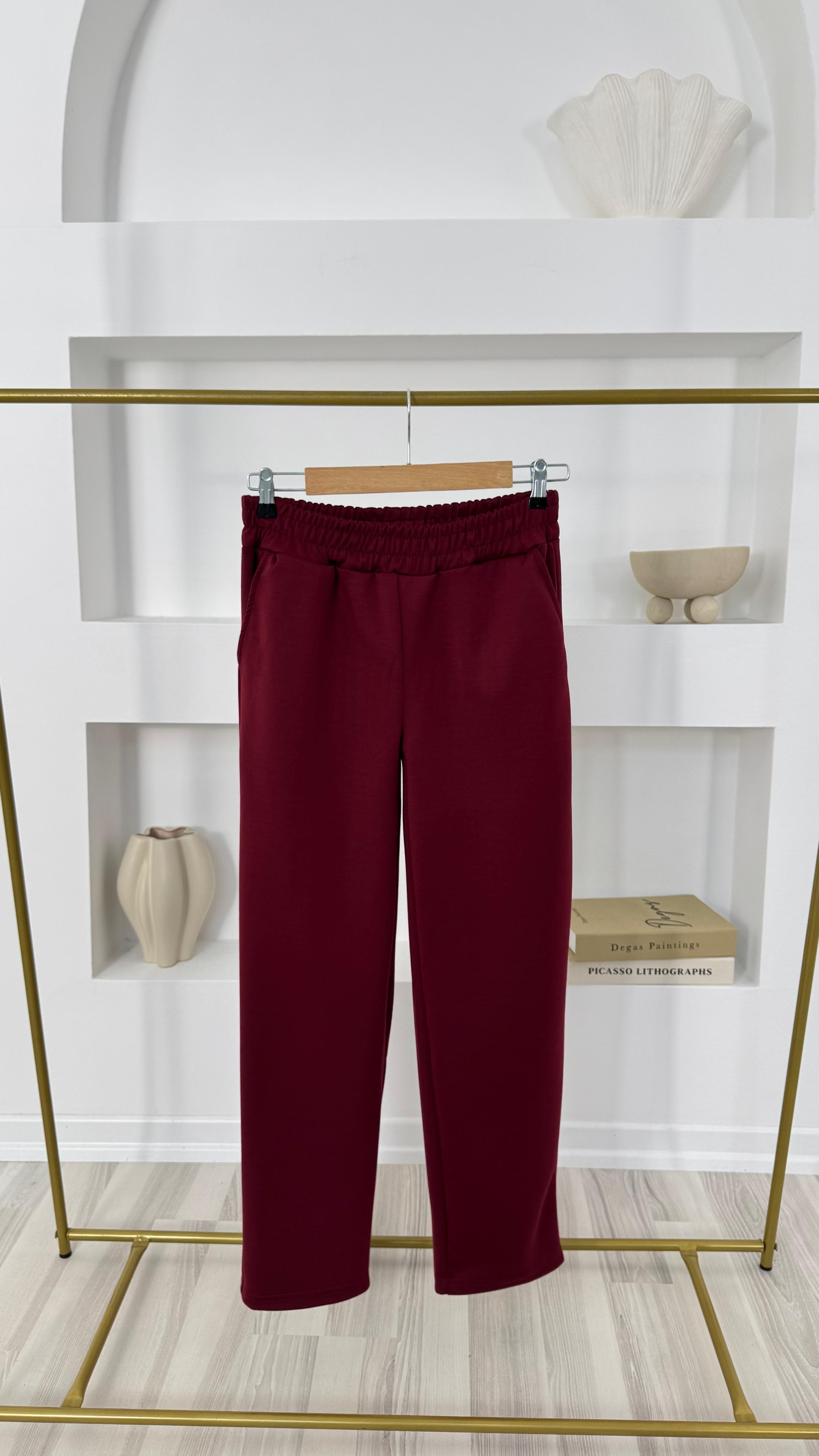 1836 - oysho kumaş bol paça pantolon - bordo (1836)