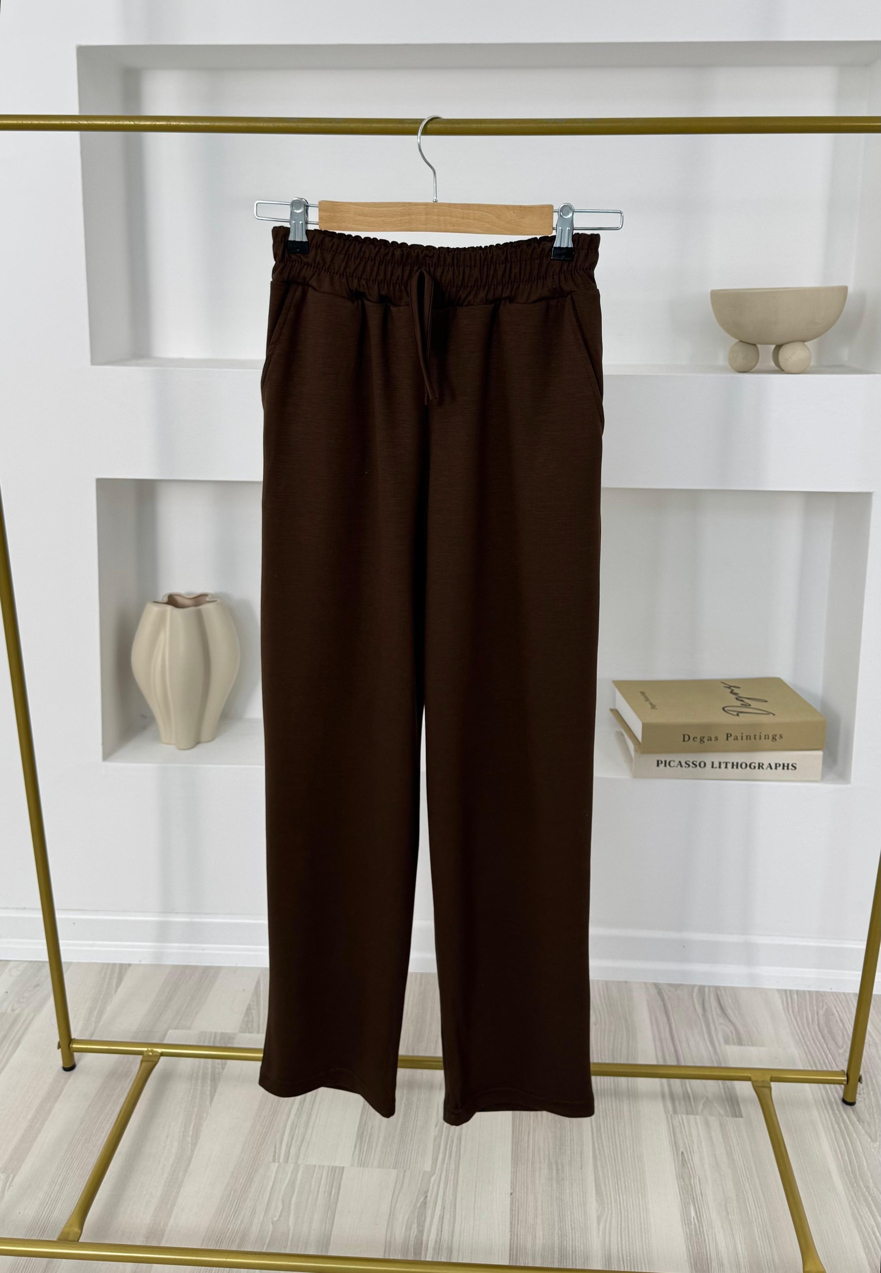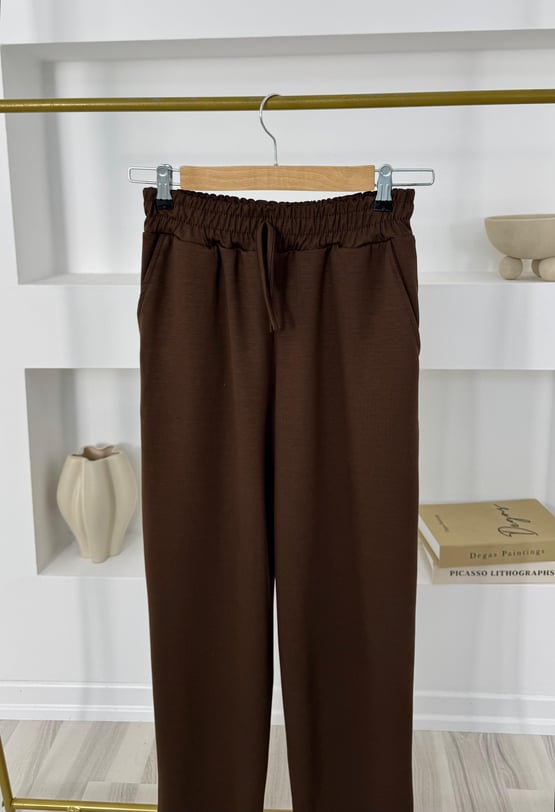 1836 - oysho kumaş bol paça pantolon - kahverengi (1836)