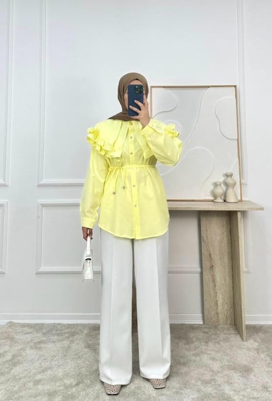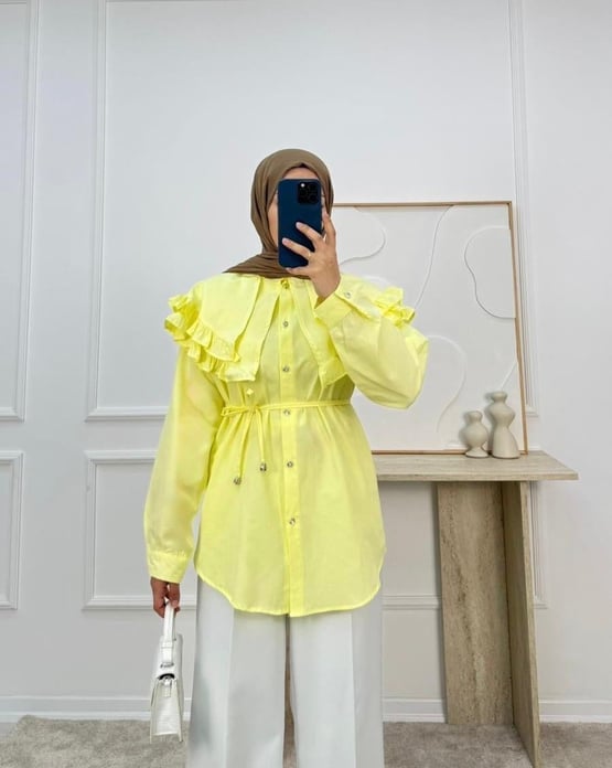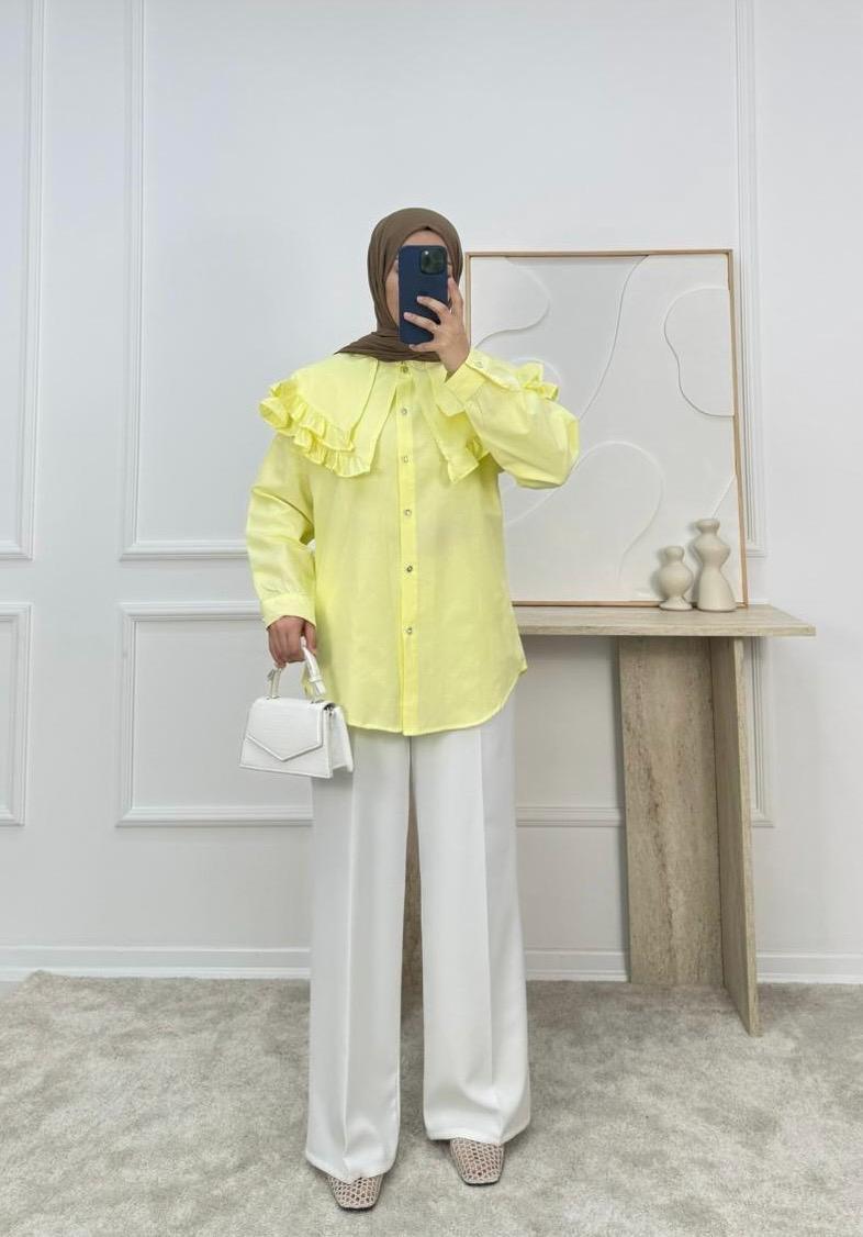 1854-terikoton kumaş yakalı kuşaklı gömlek-sarı (1854)