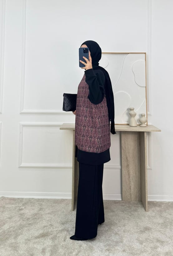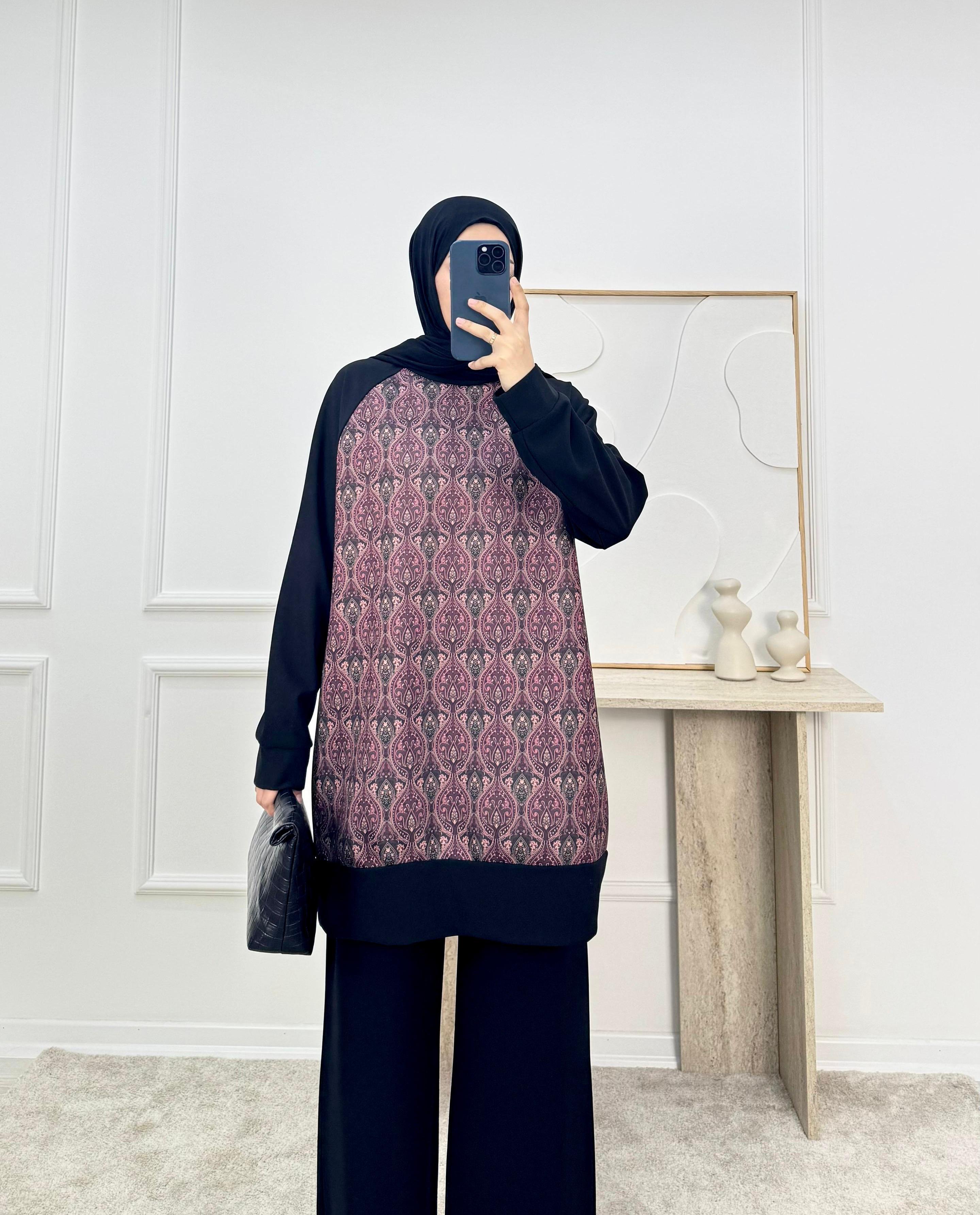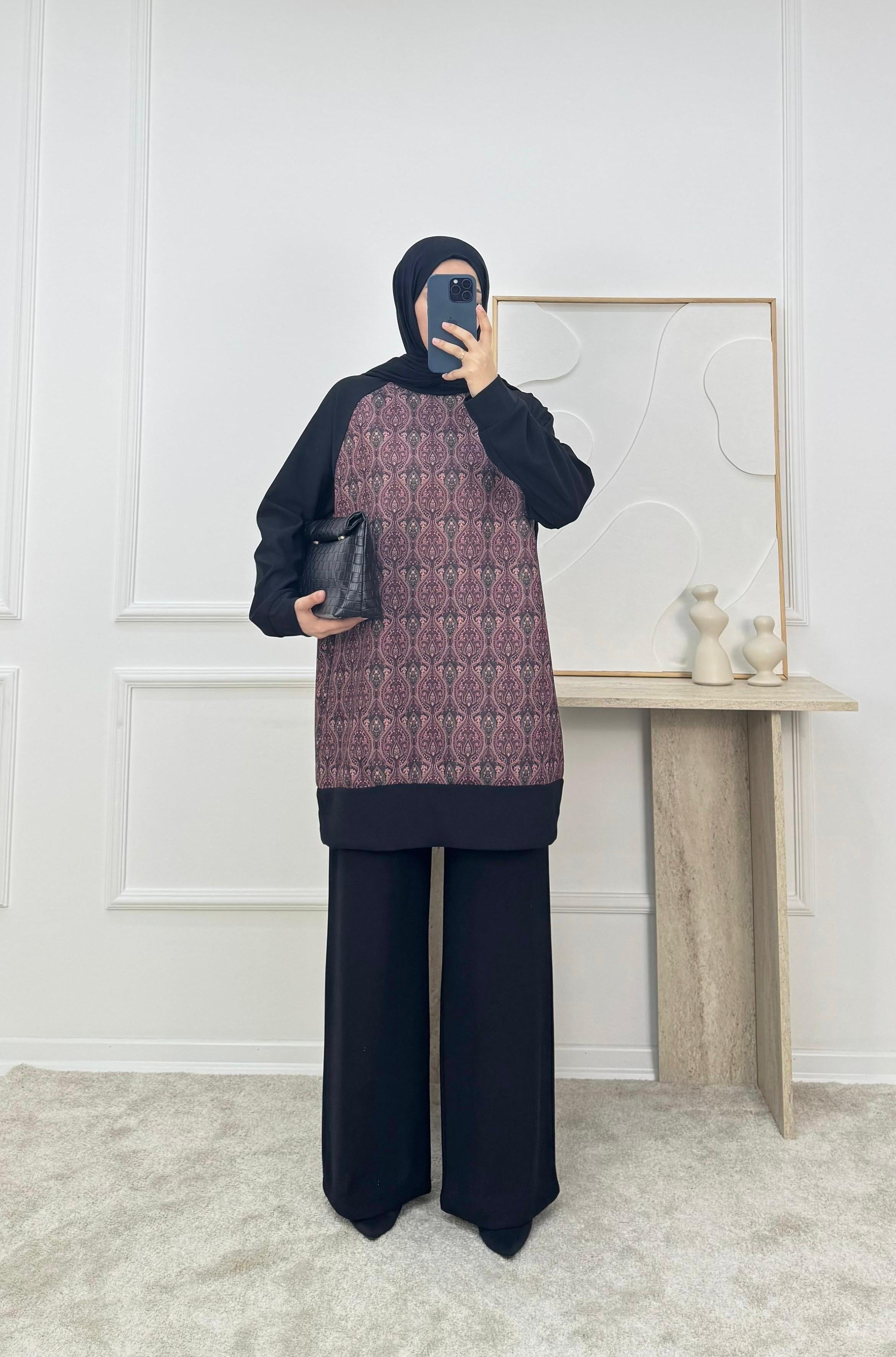 sukuba kumaş etnik desen pantolonlu takım