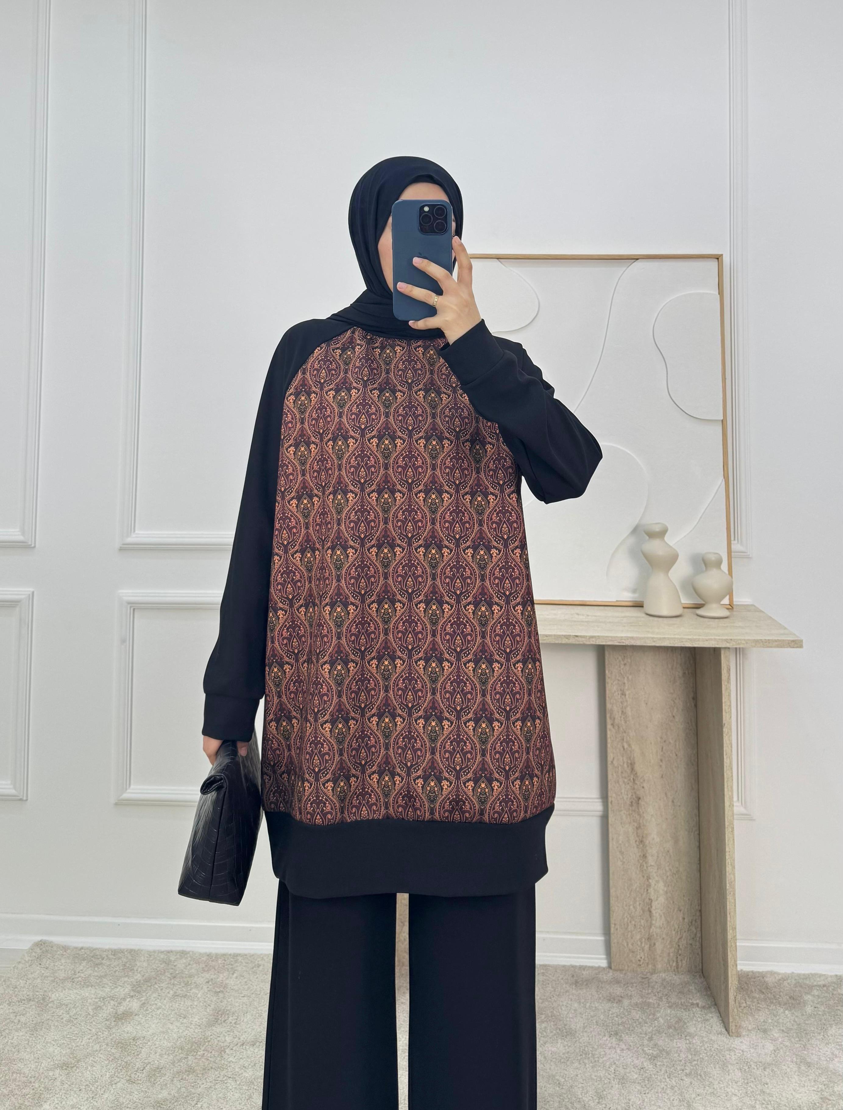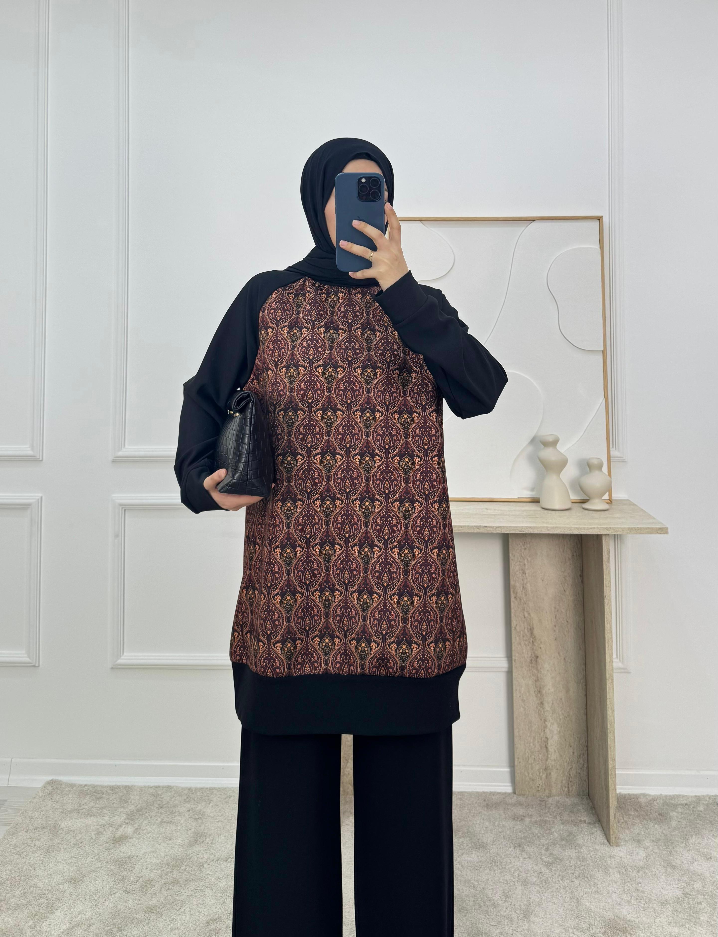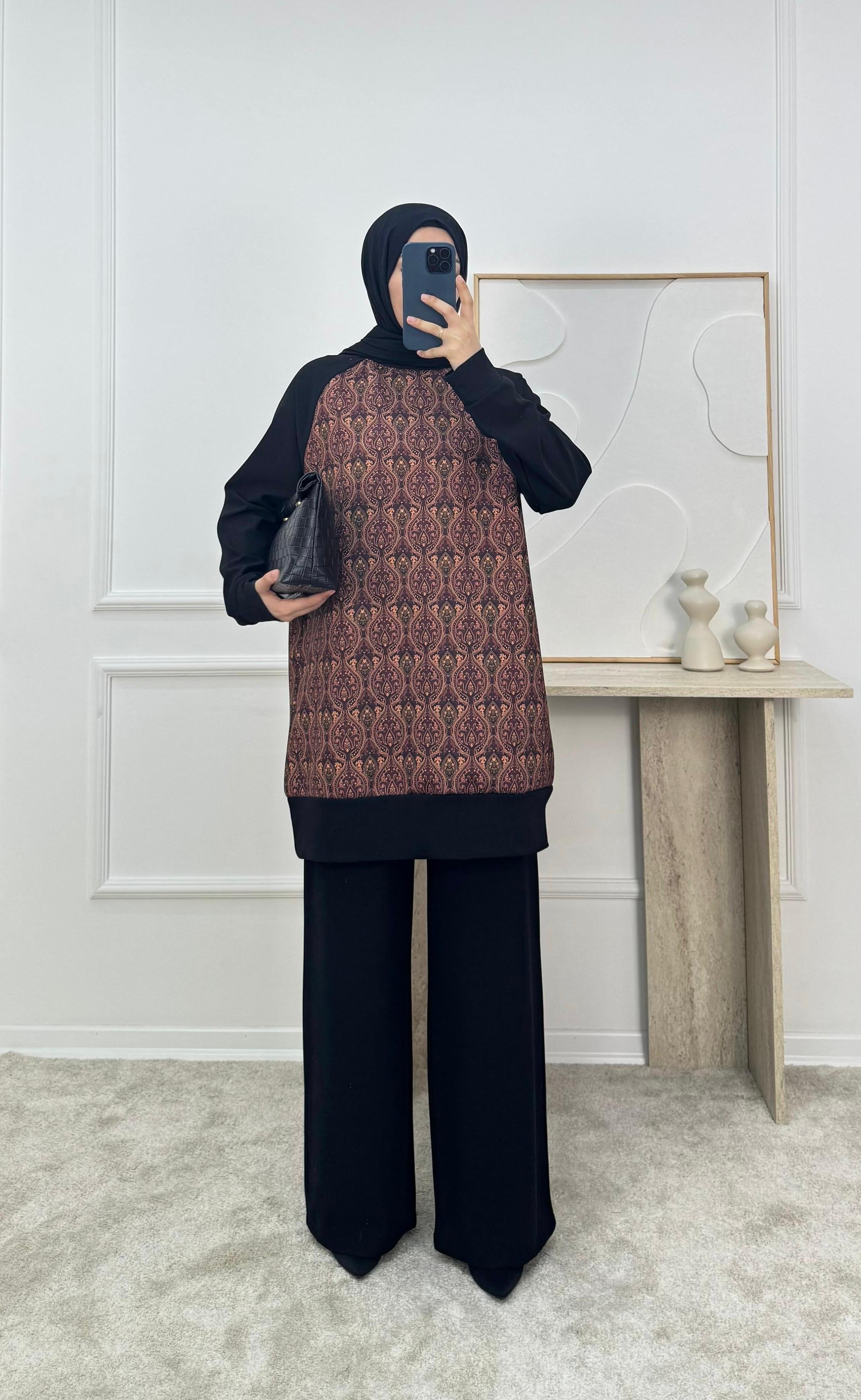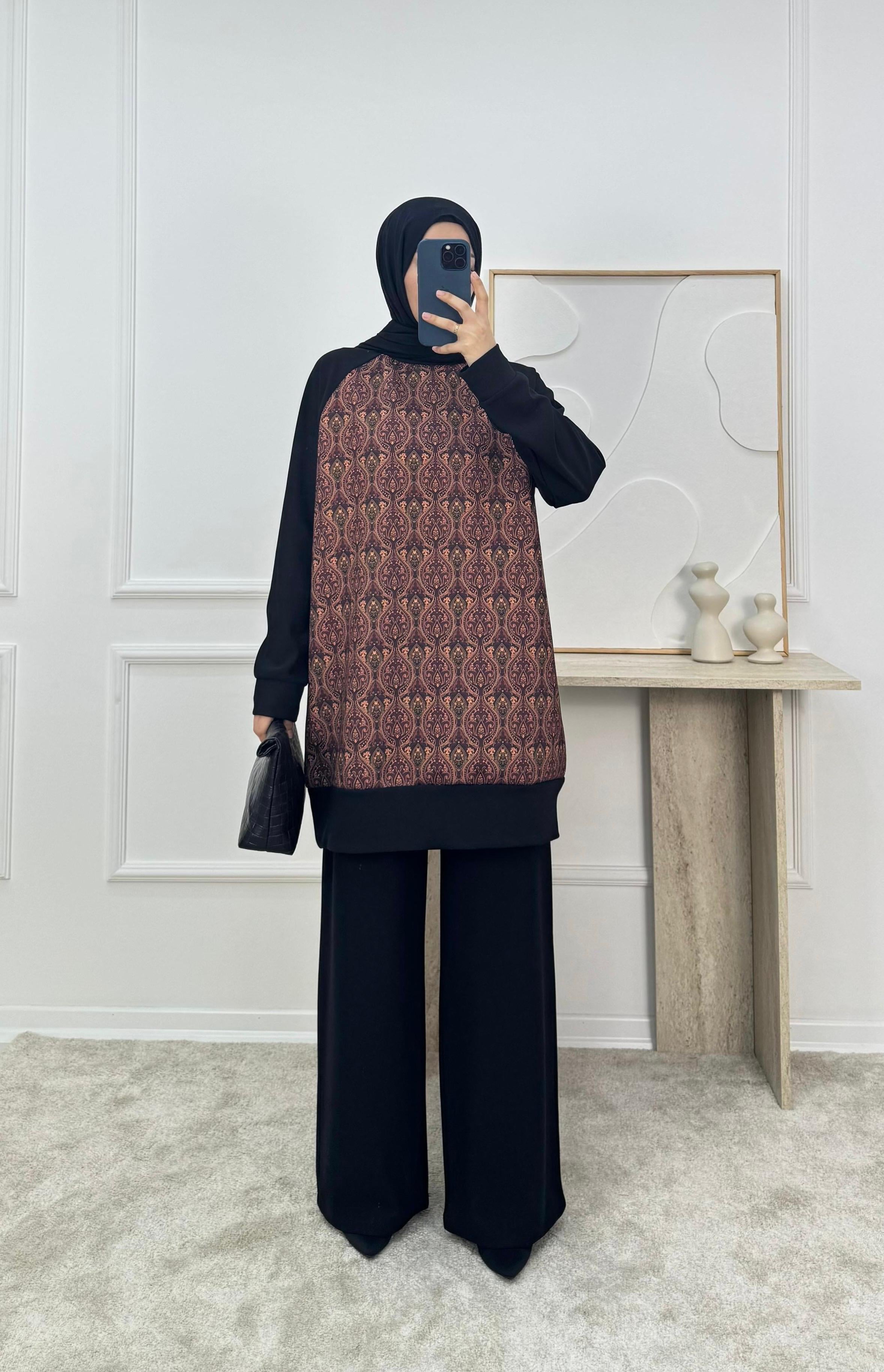sukuba kumaş etnik desen pantolonlu takım