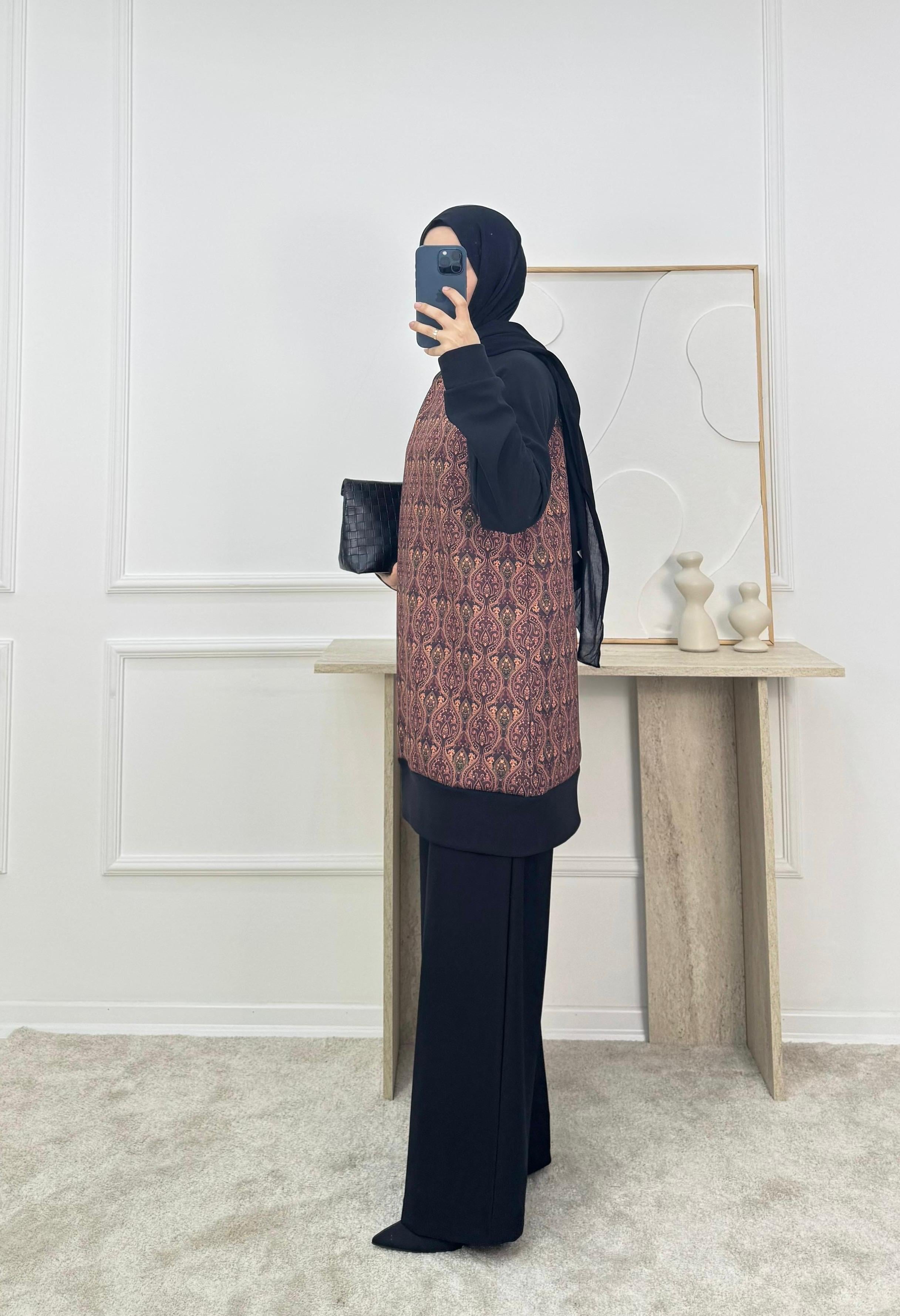 1866-sukuba kumaş etnik desen pantolonlu takım-kiremit (1866)