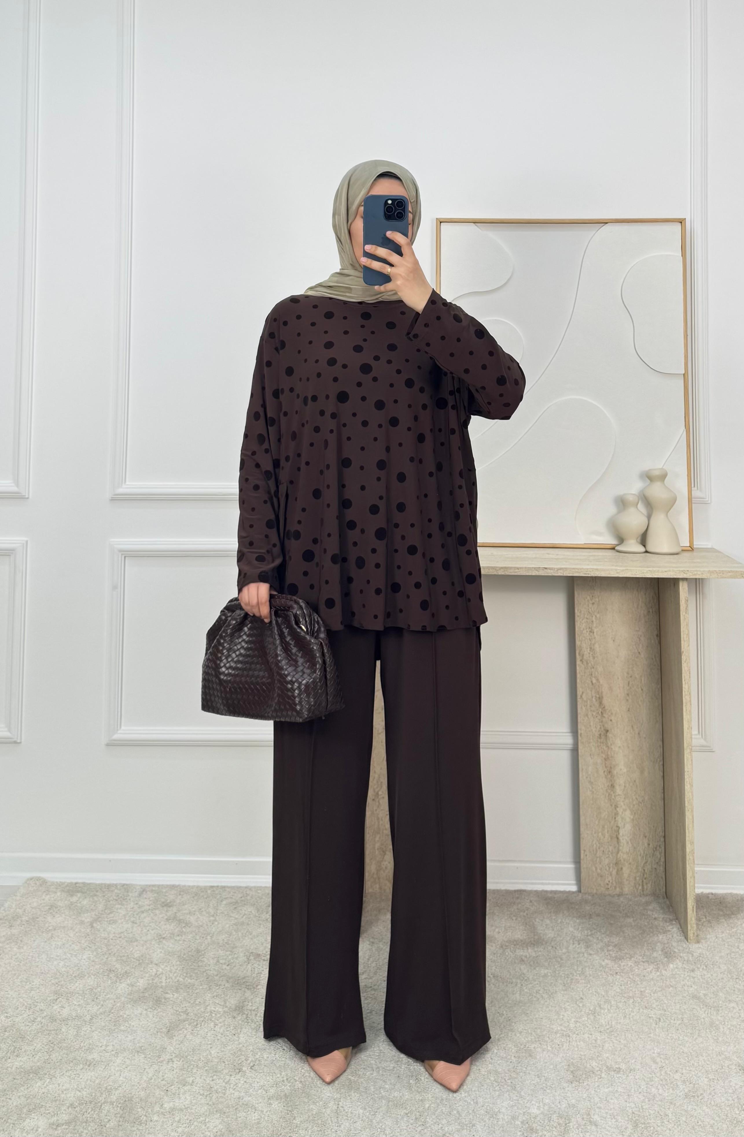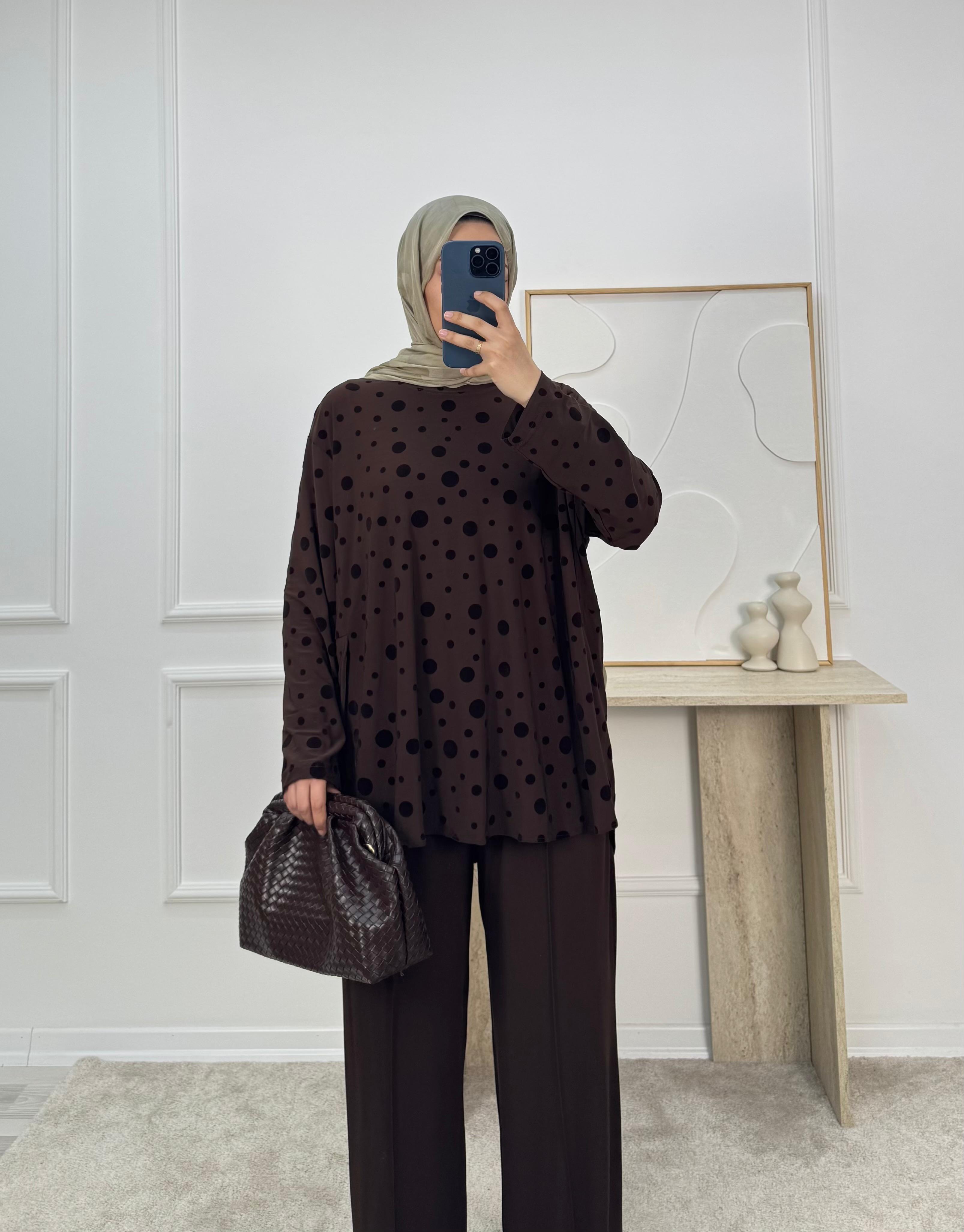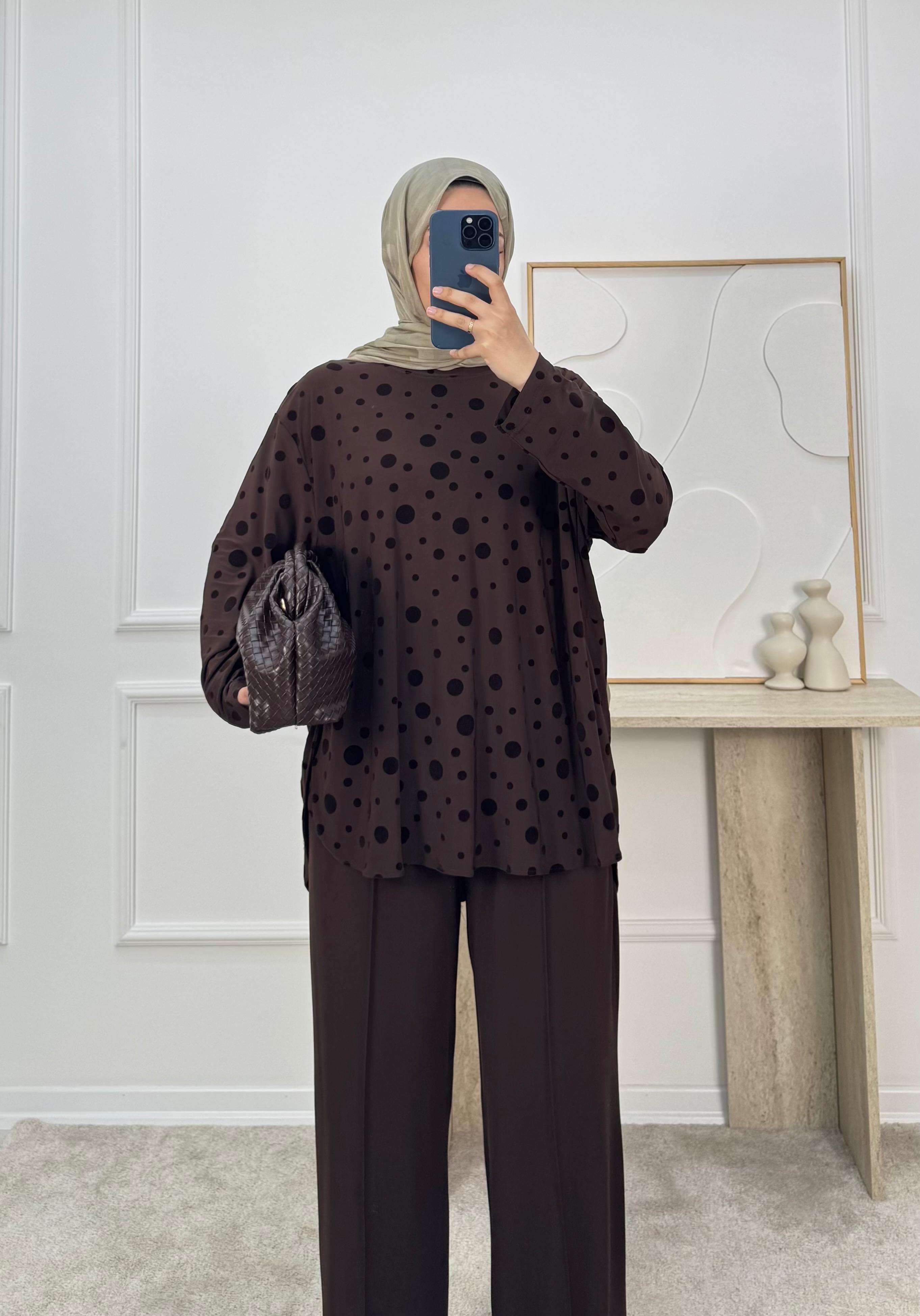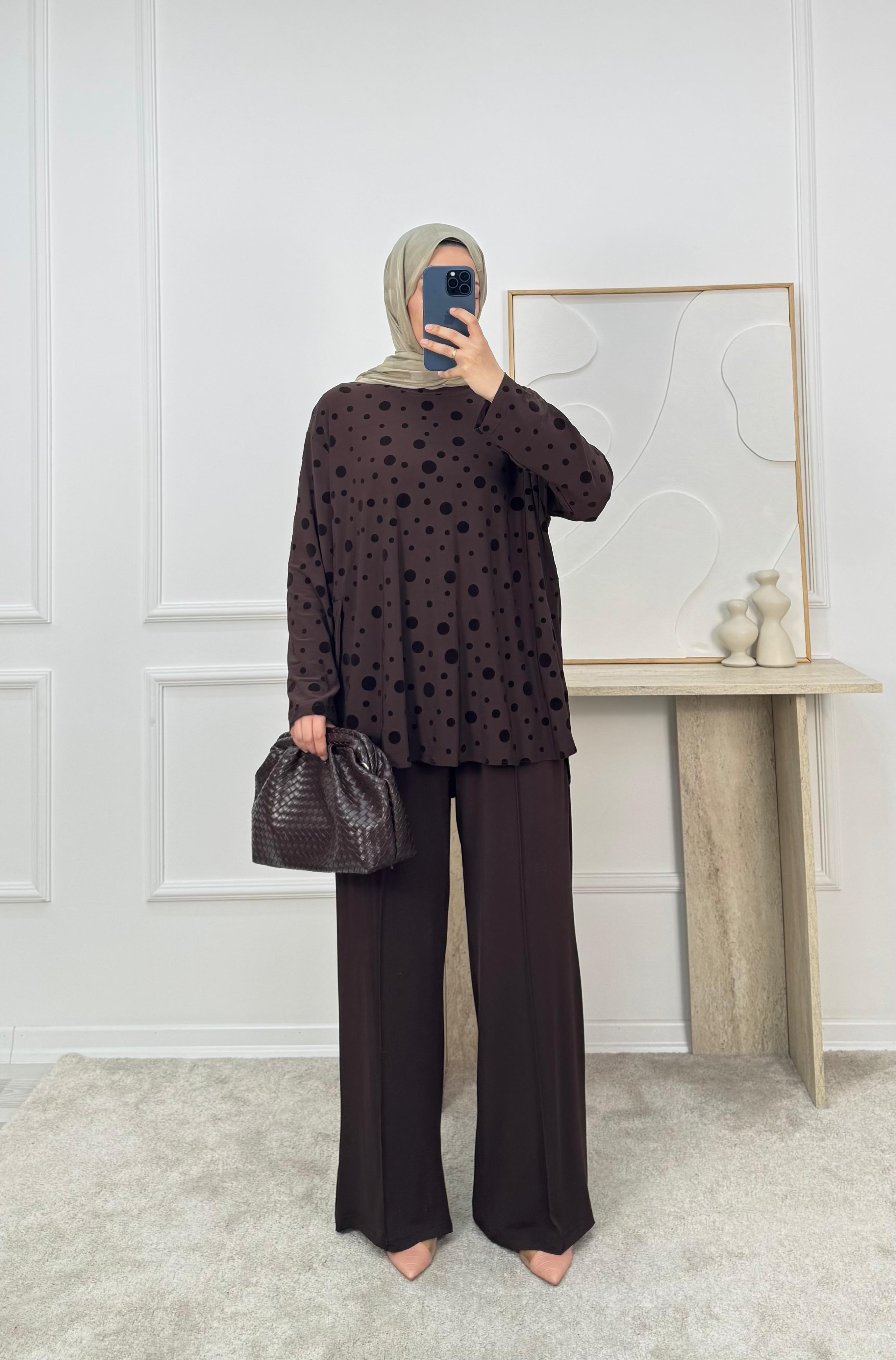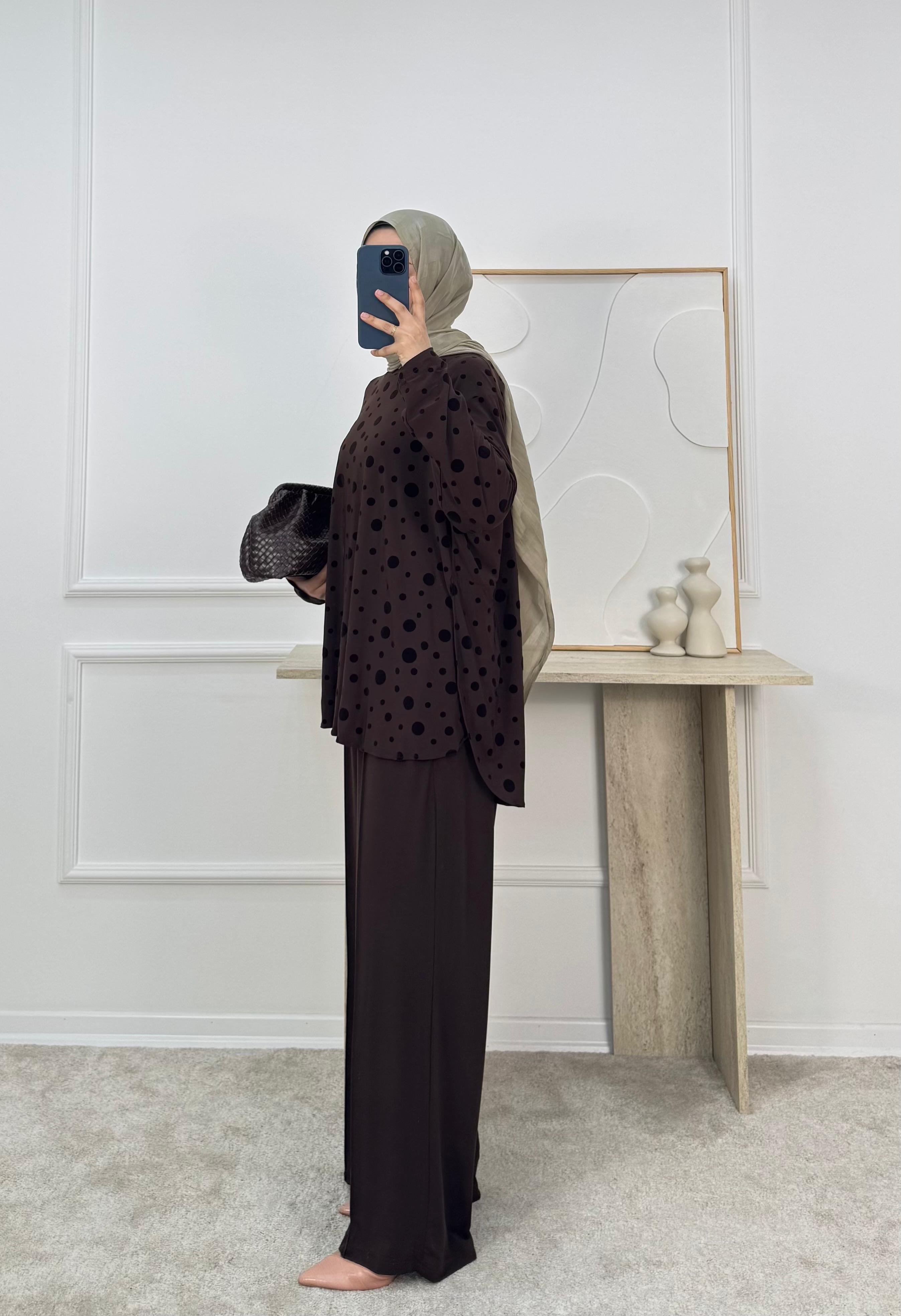 sandy kumaş benekli pantolonlu takım