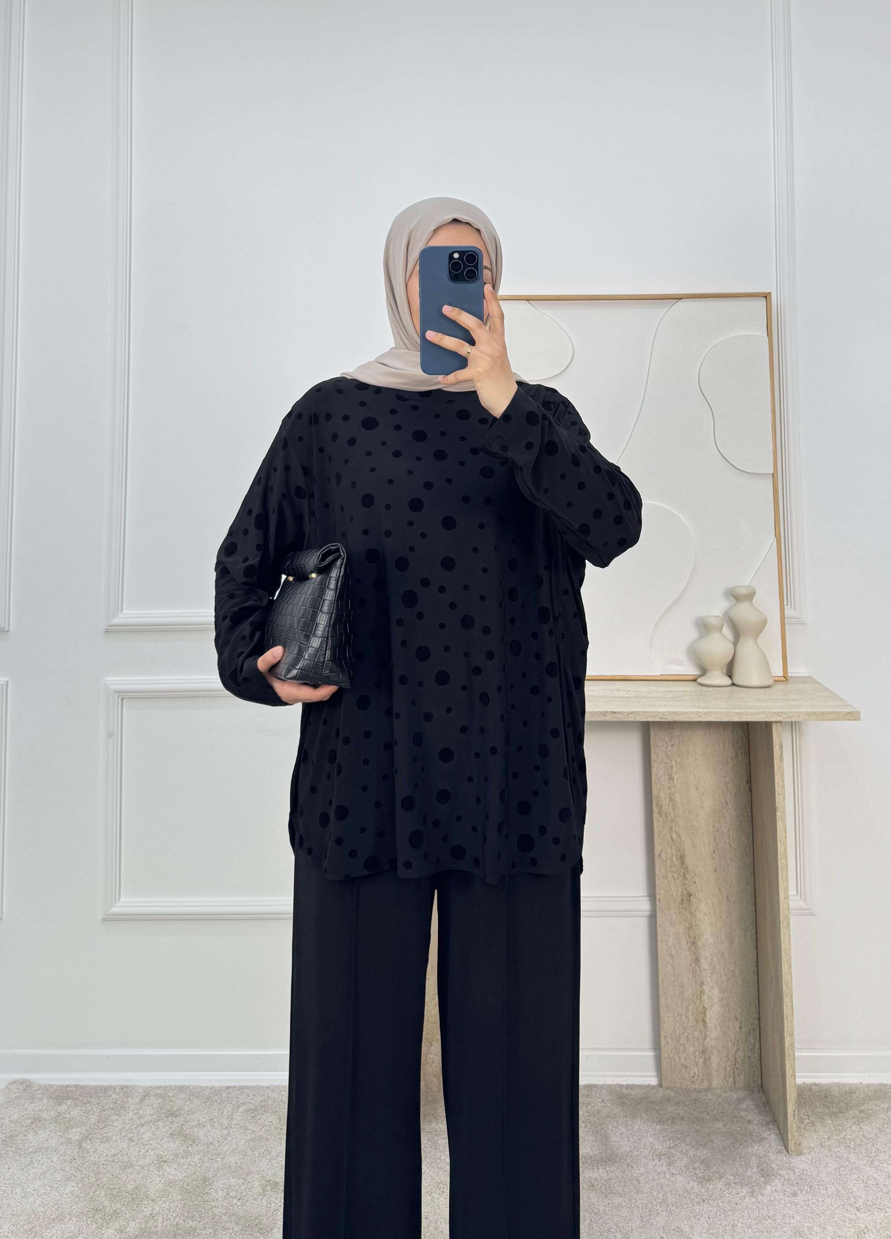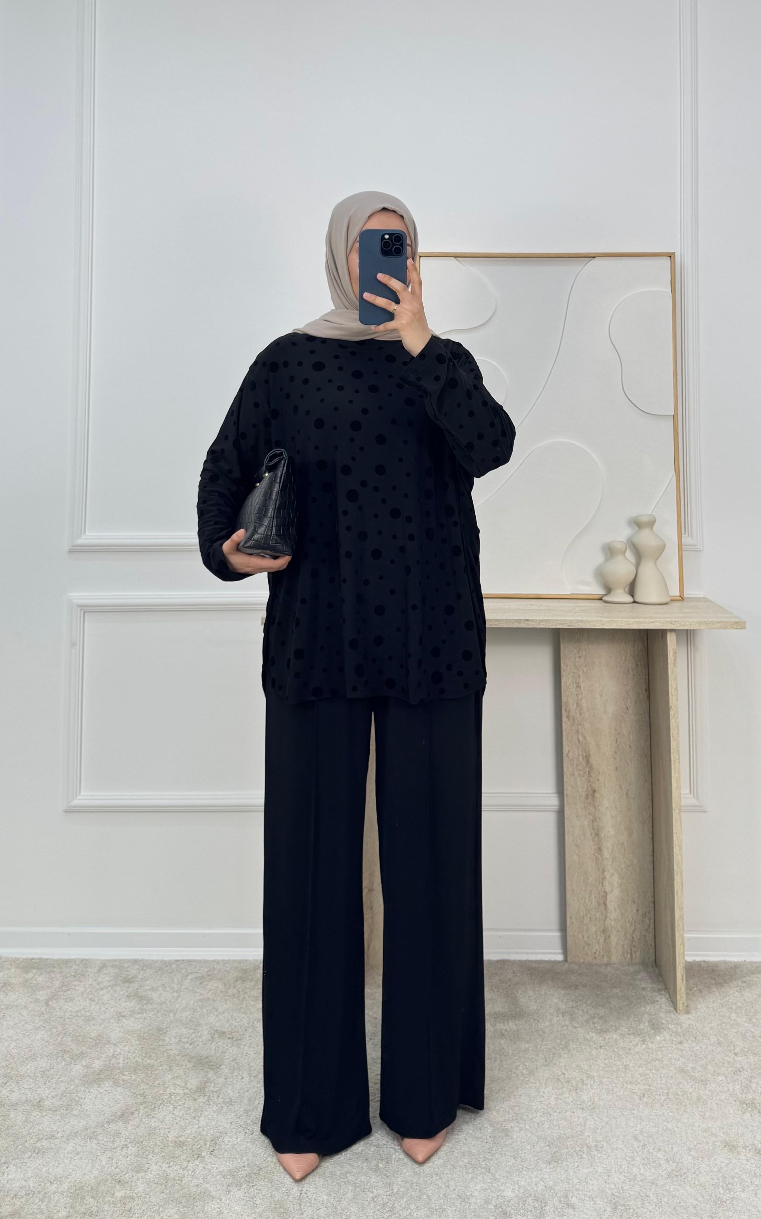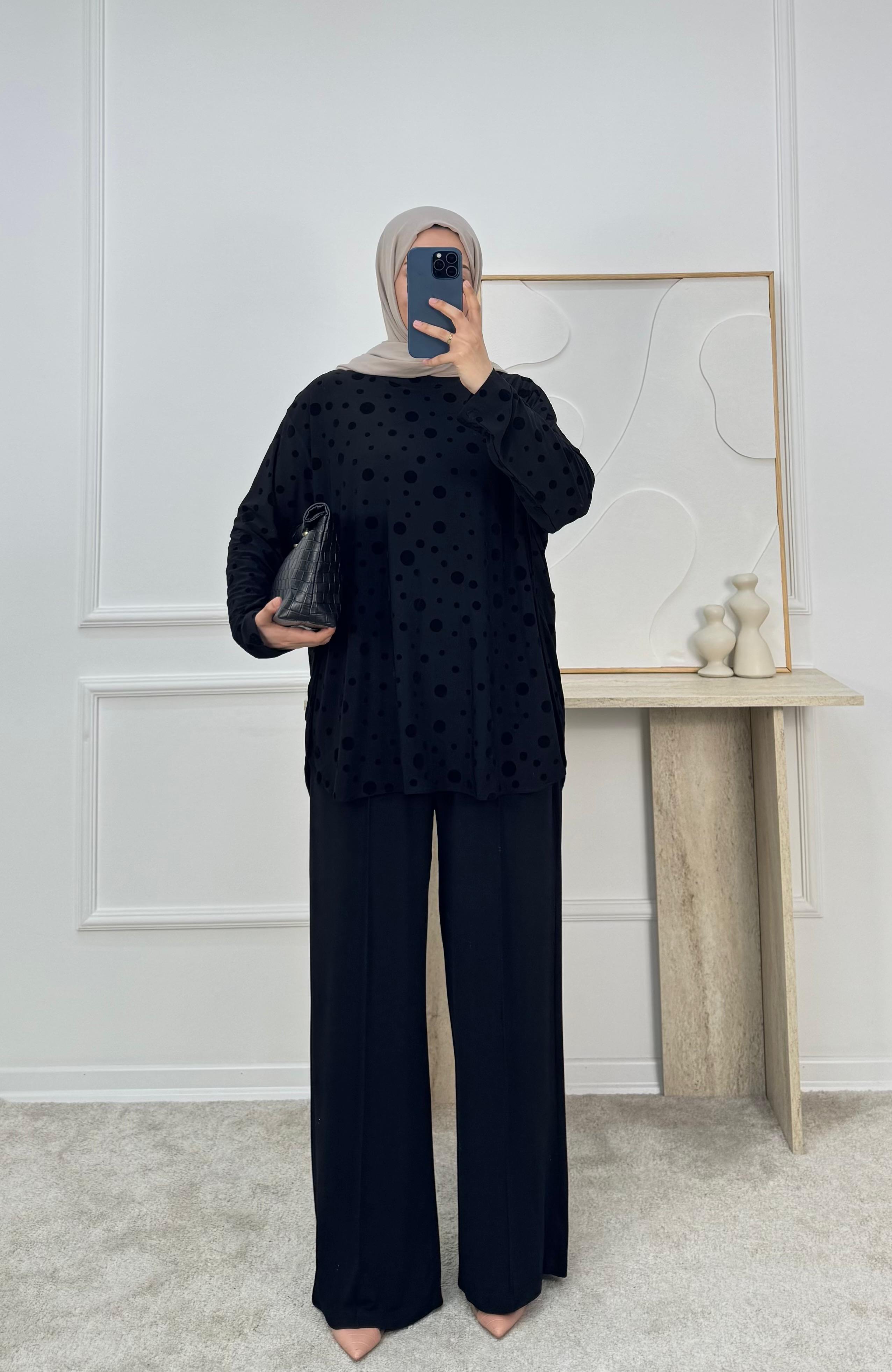 1869-sandy kumaş benekli pantolonlu takım-siyah (1869)