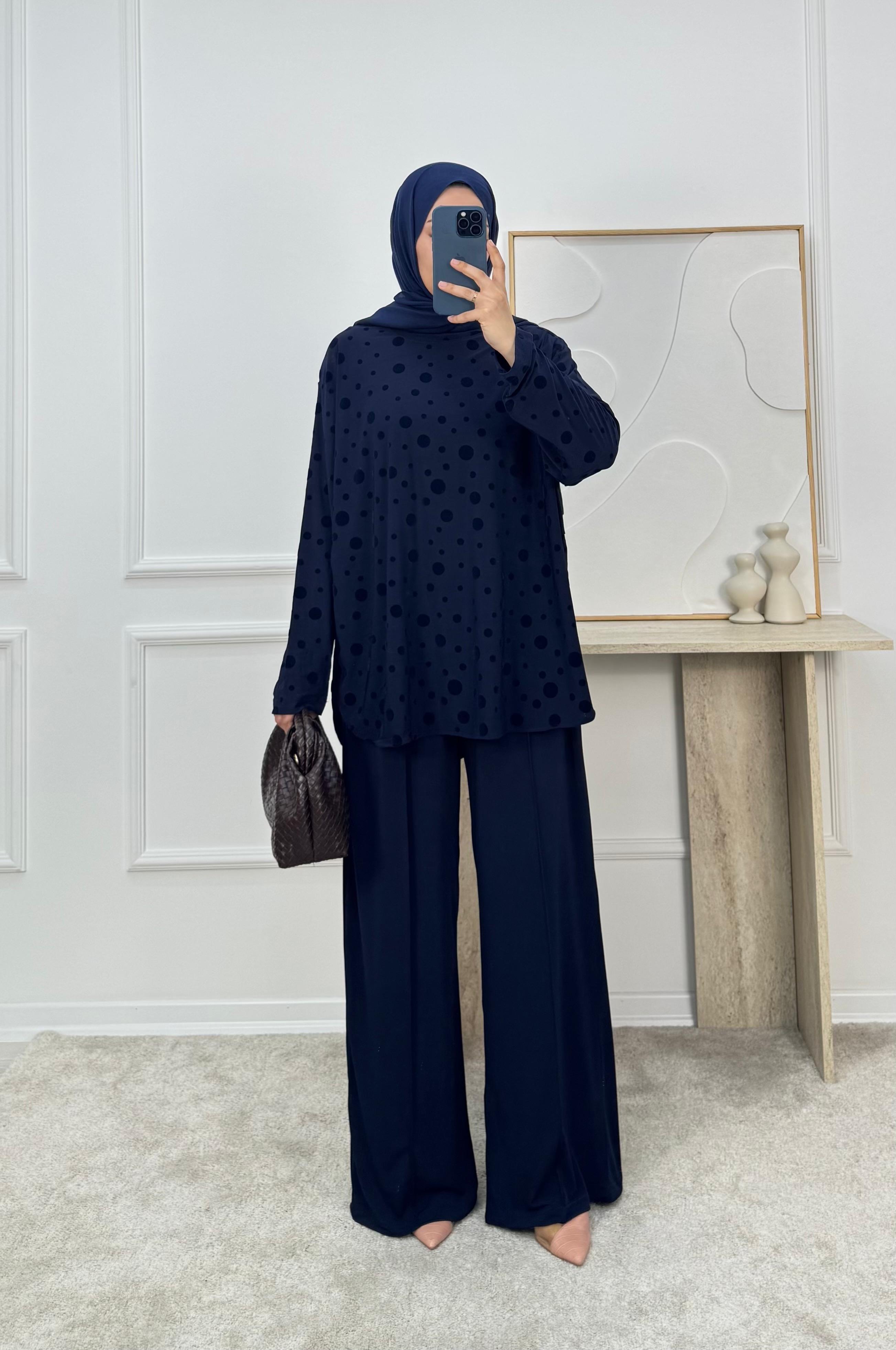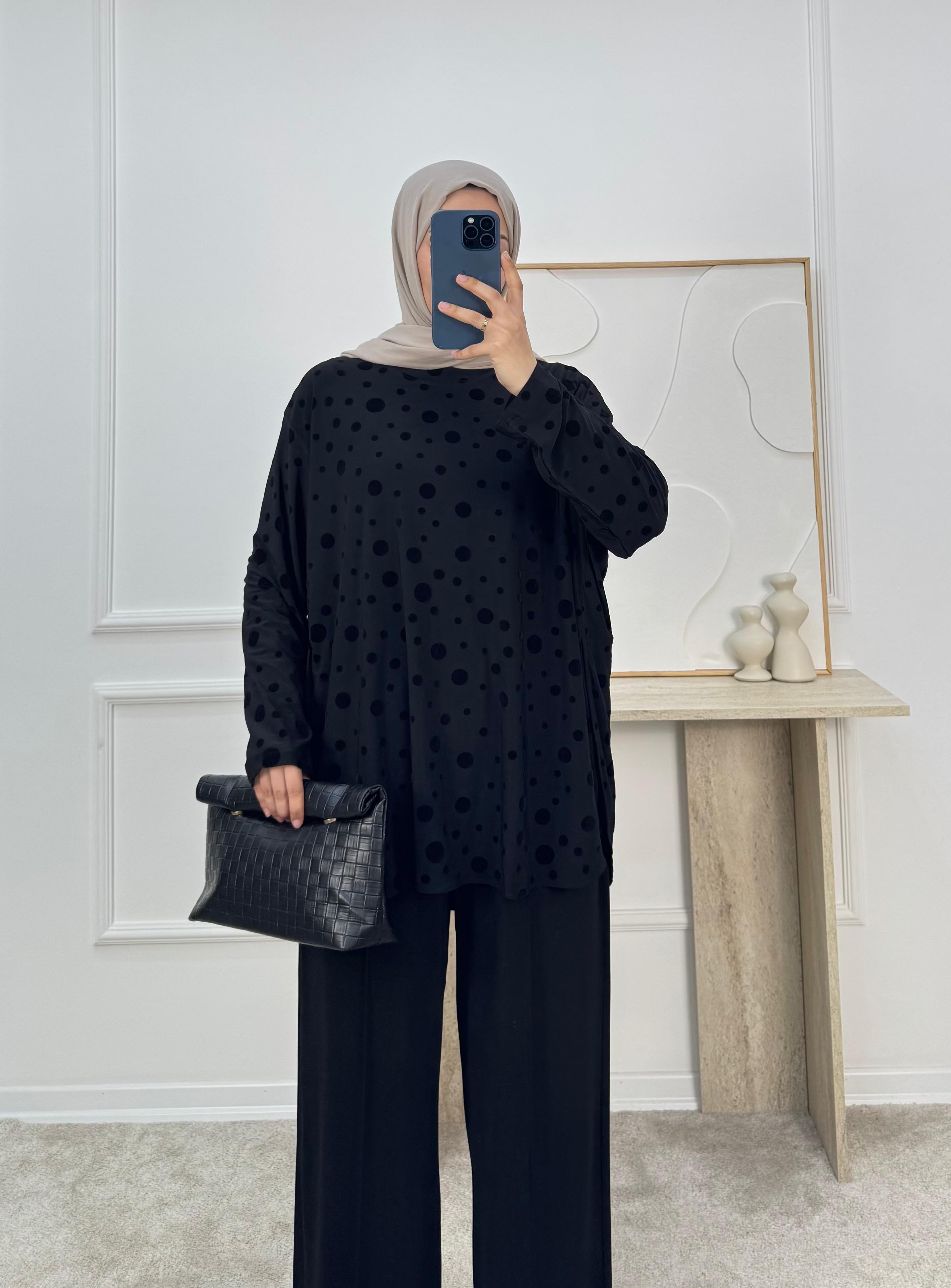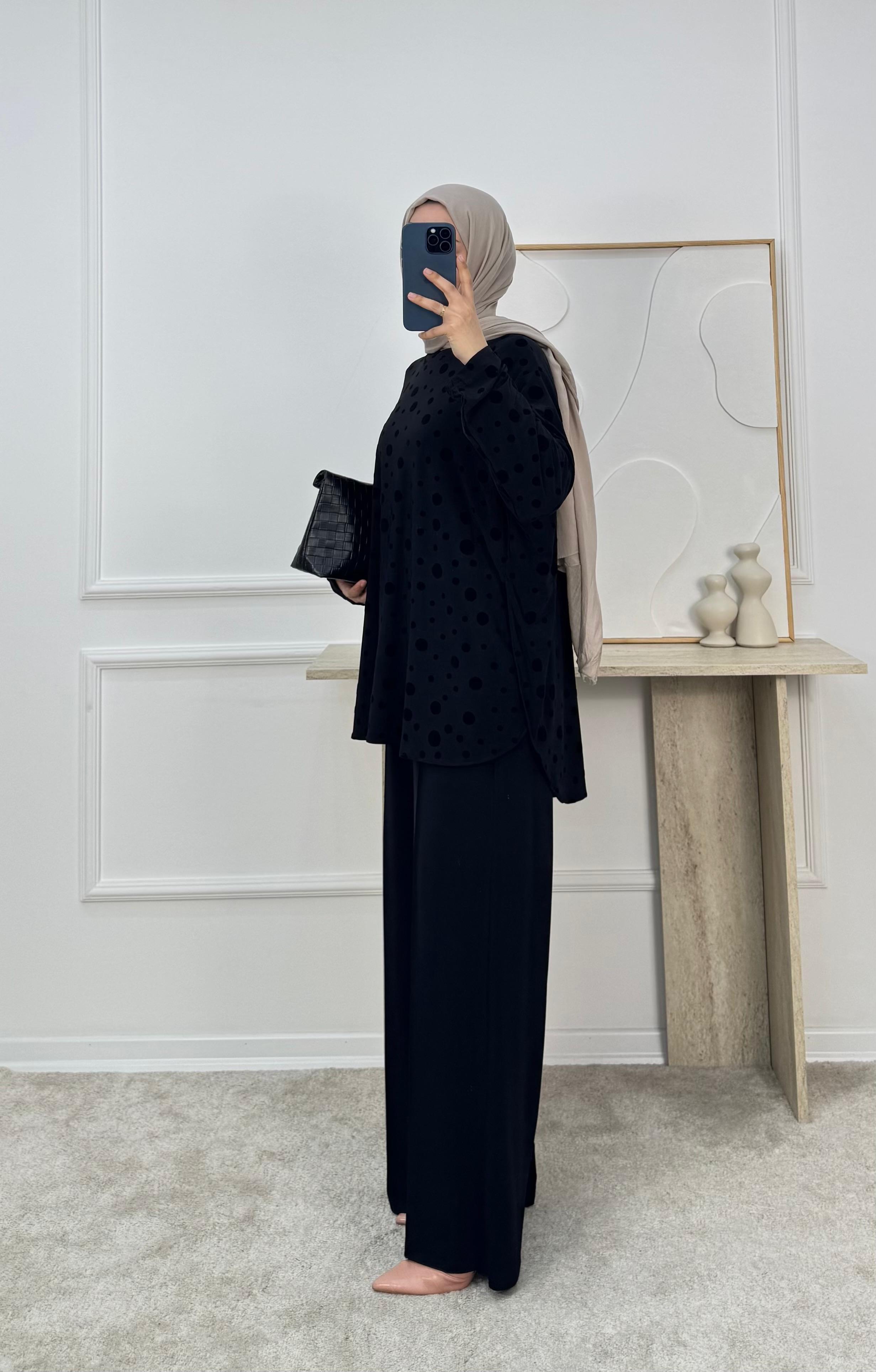 1869-sandy kumaş benekli pantolonlu takım-siyah (1869)
