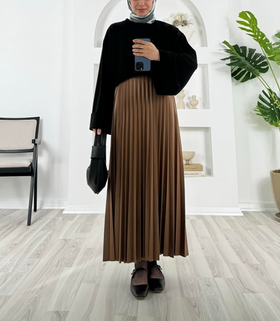 1901-piliseli sıvama kumaş-beli lastikli etek-kahverengi (1901)