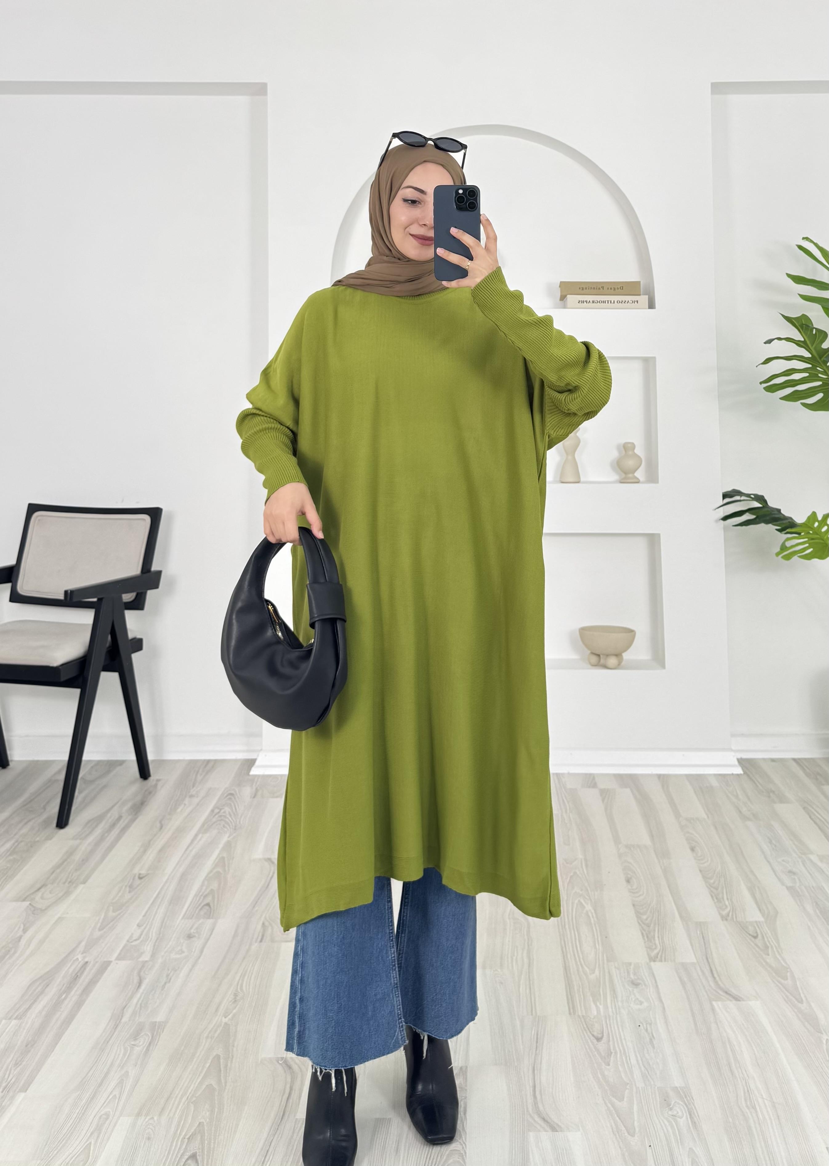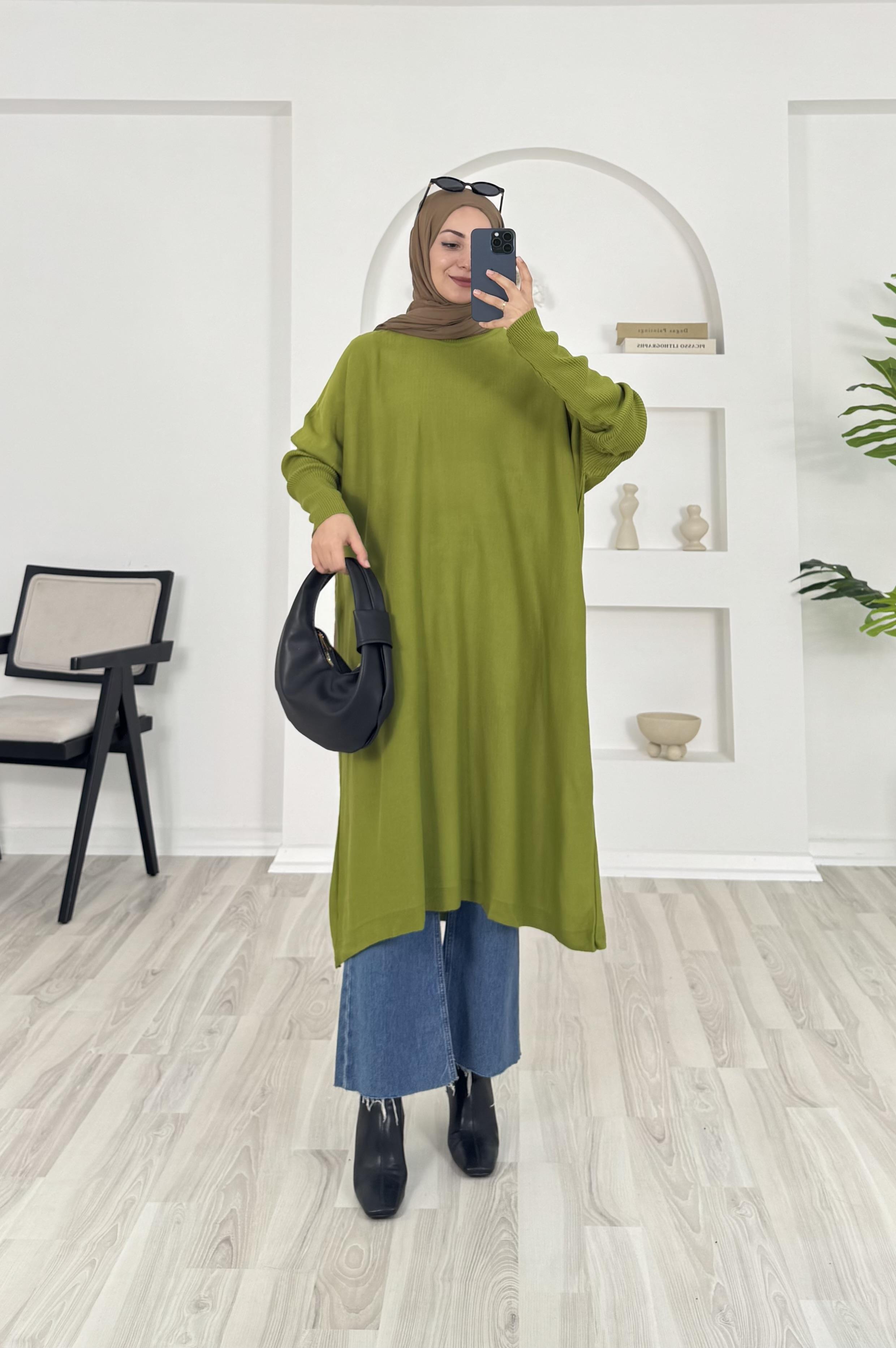 1928 SADE DİZ ALTI SALAŞ TRİKO TUNİK YAG YEŞİLİ (1928)