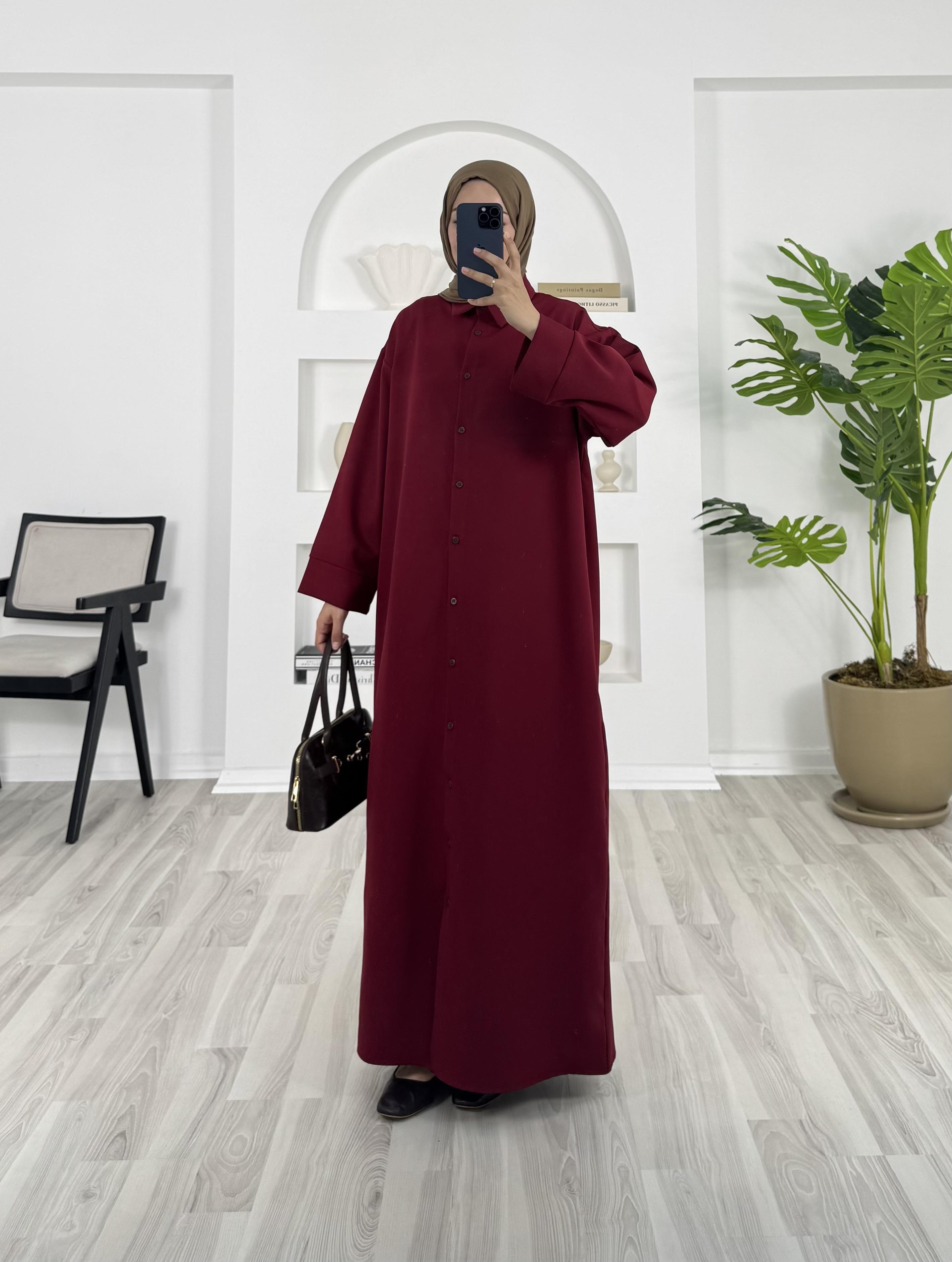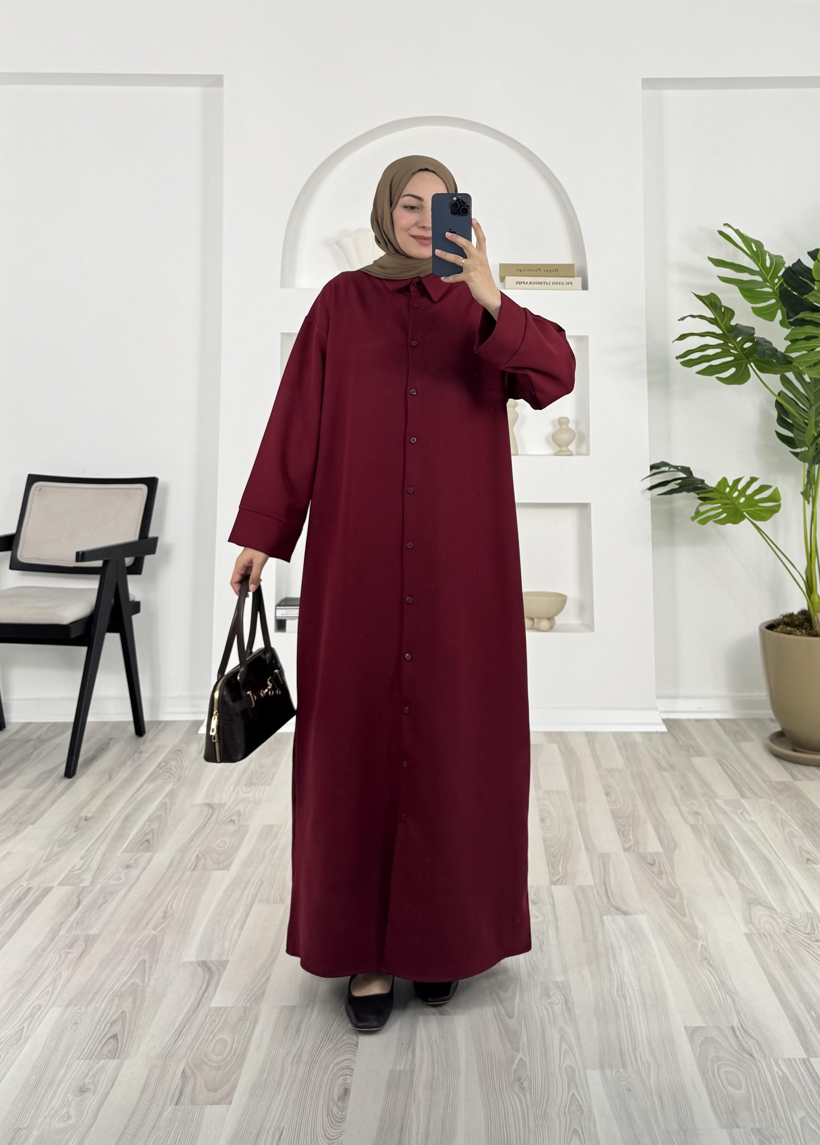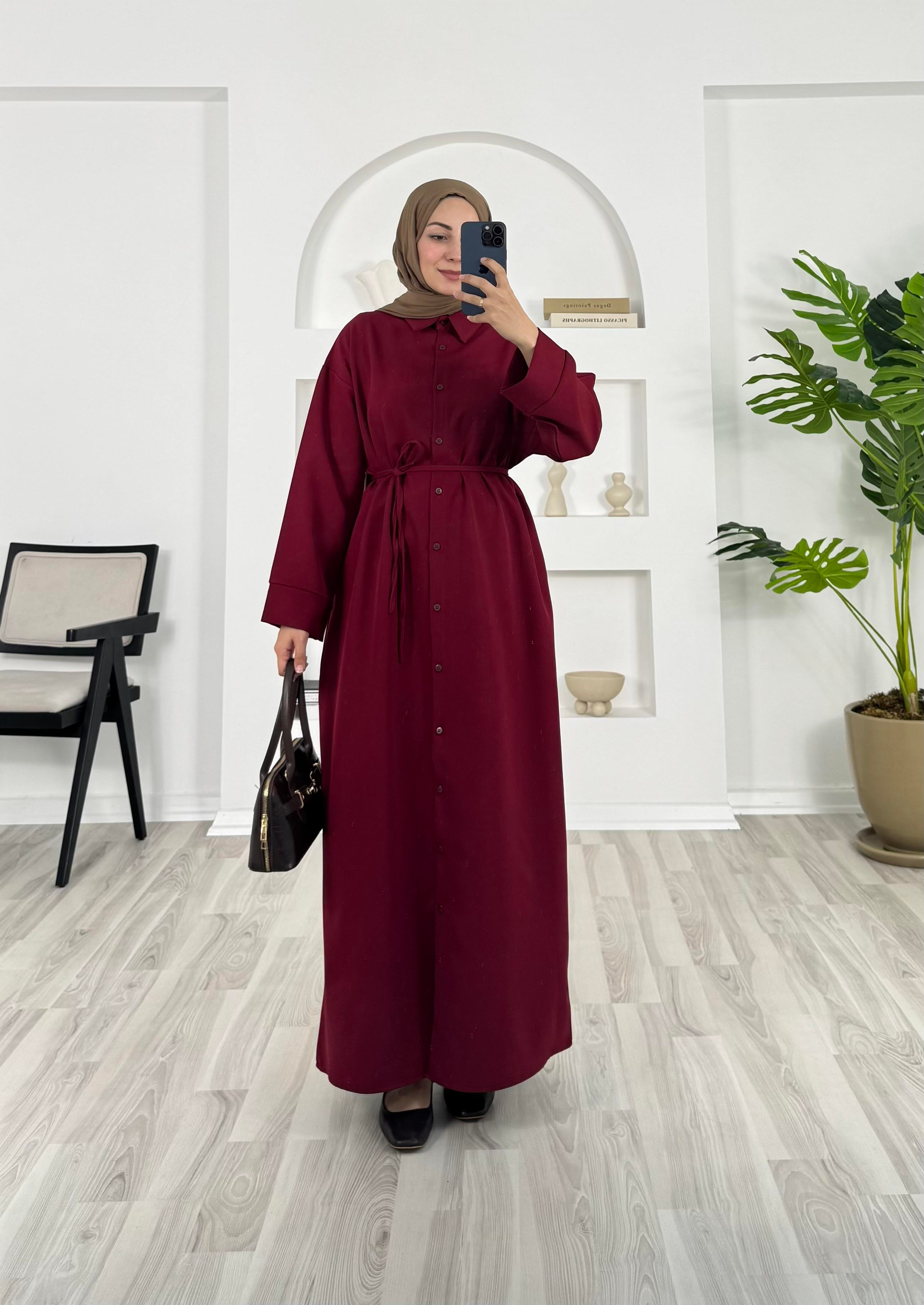 1963 - dabıl krep kumaş önü dügmeli elbise - bordo (1963)