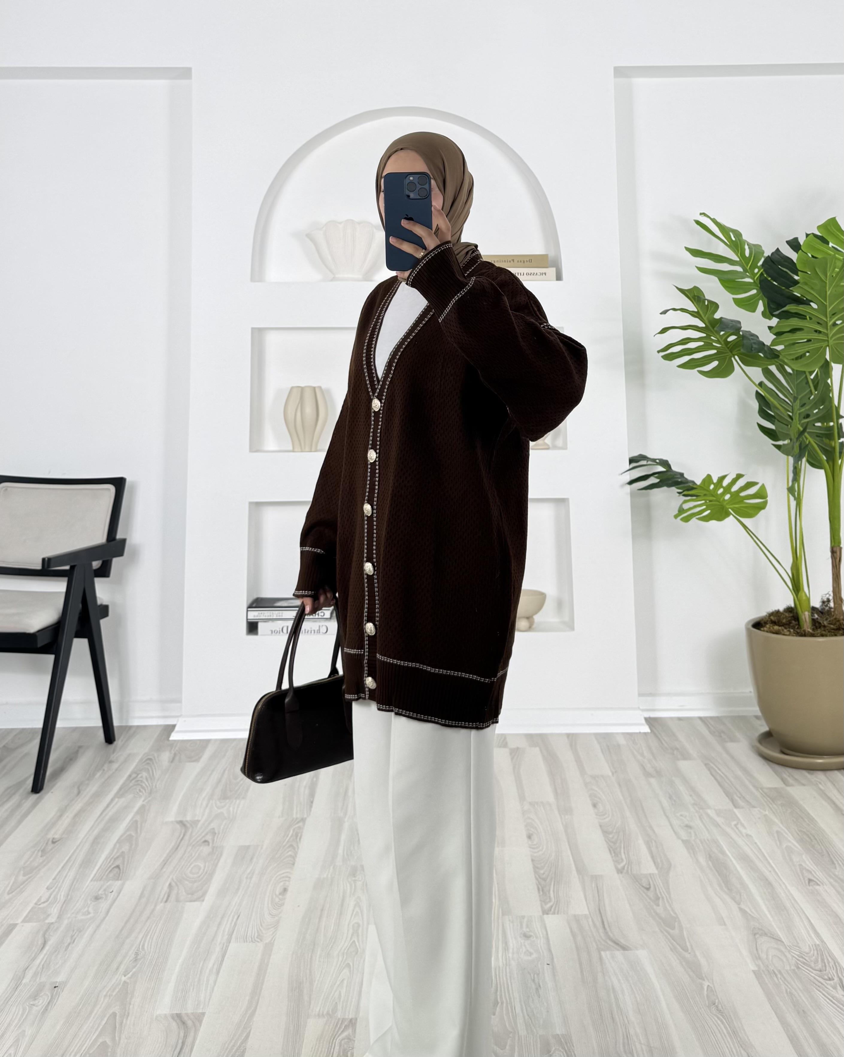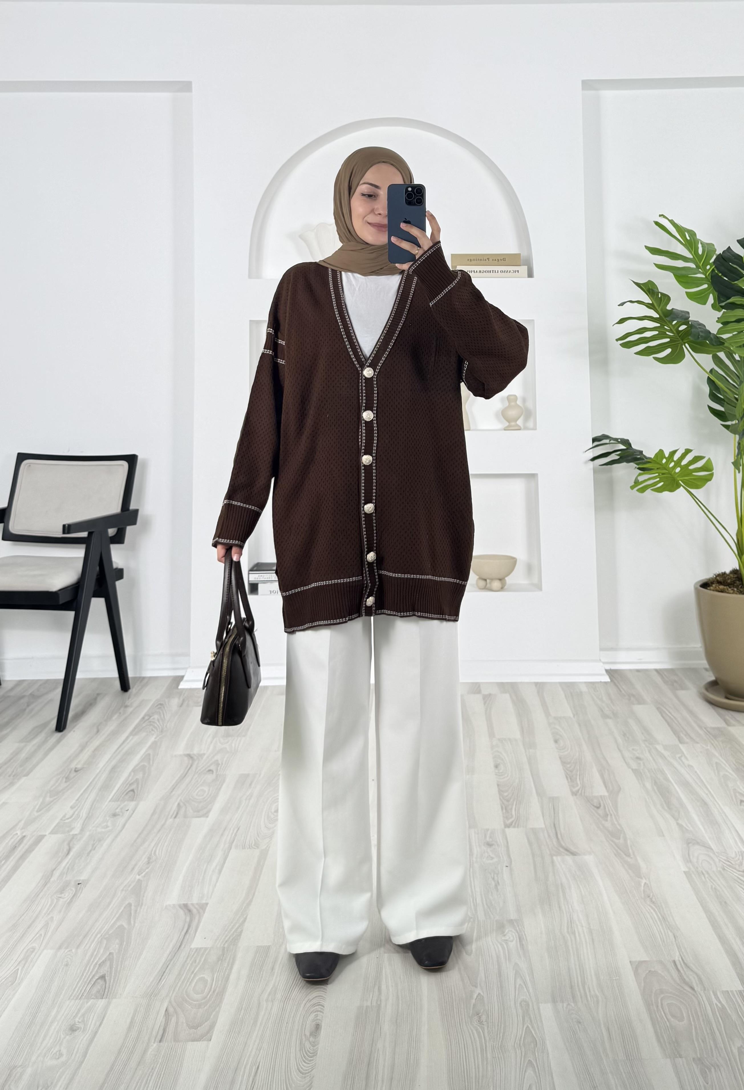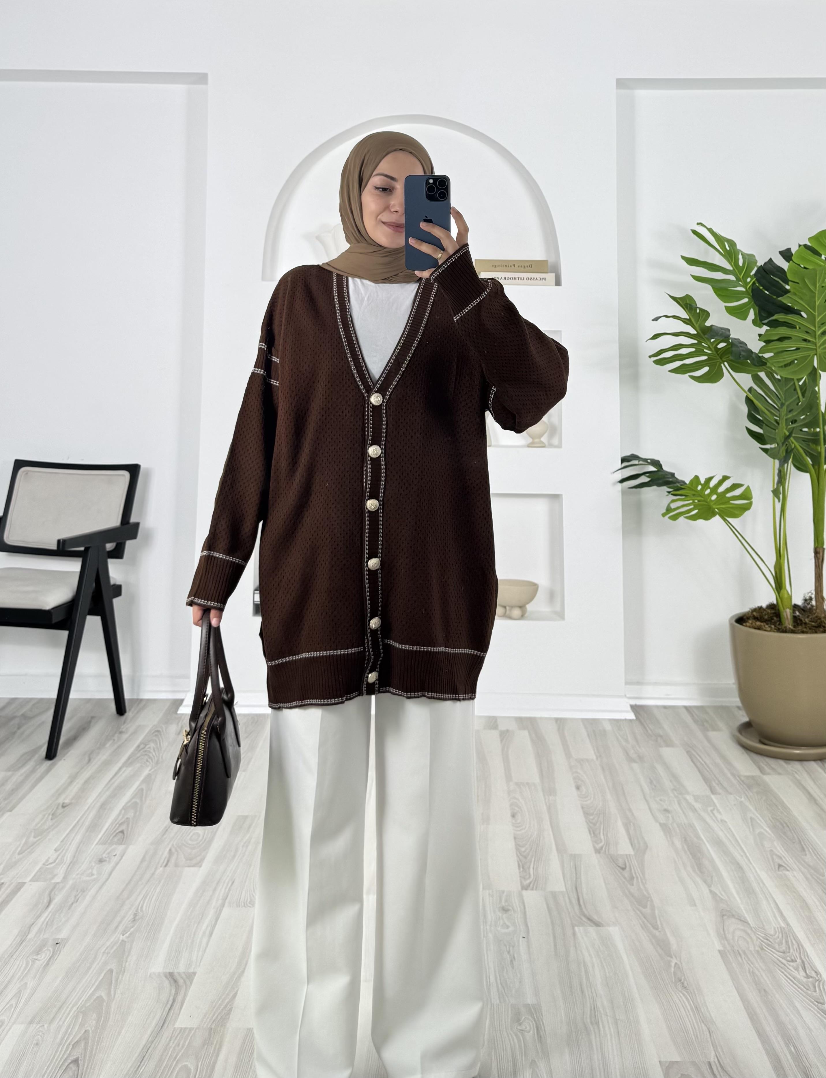 19634 - önü dügmeli çizgi detaylı triko hırka - acı kahve (19634)