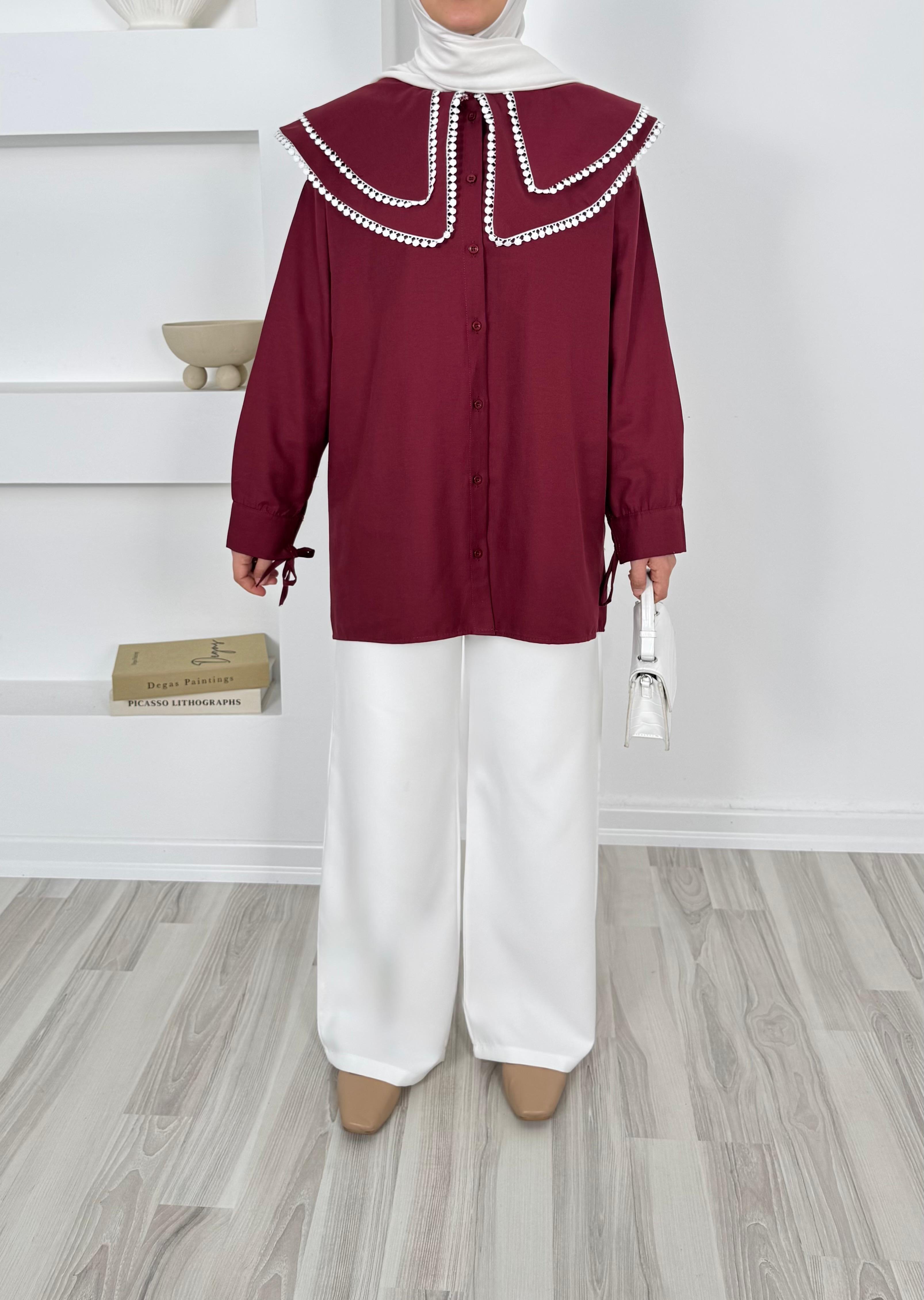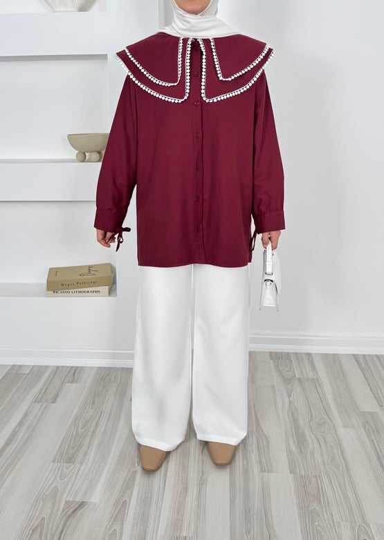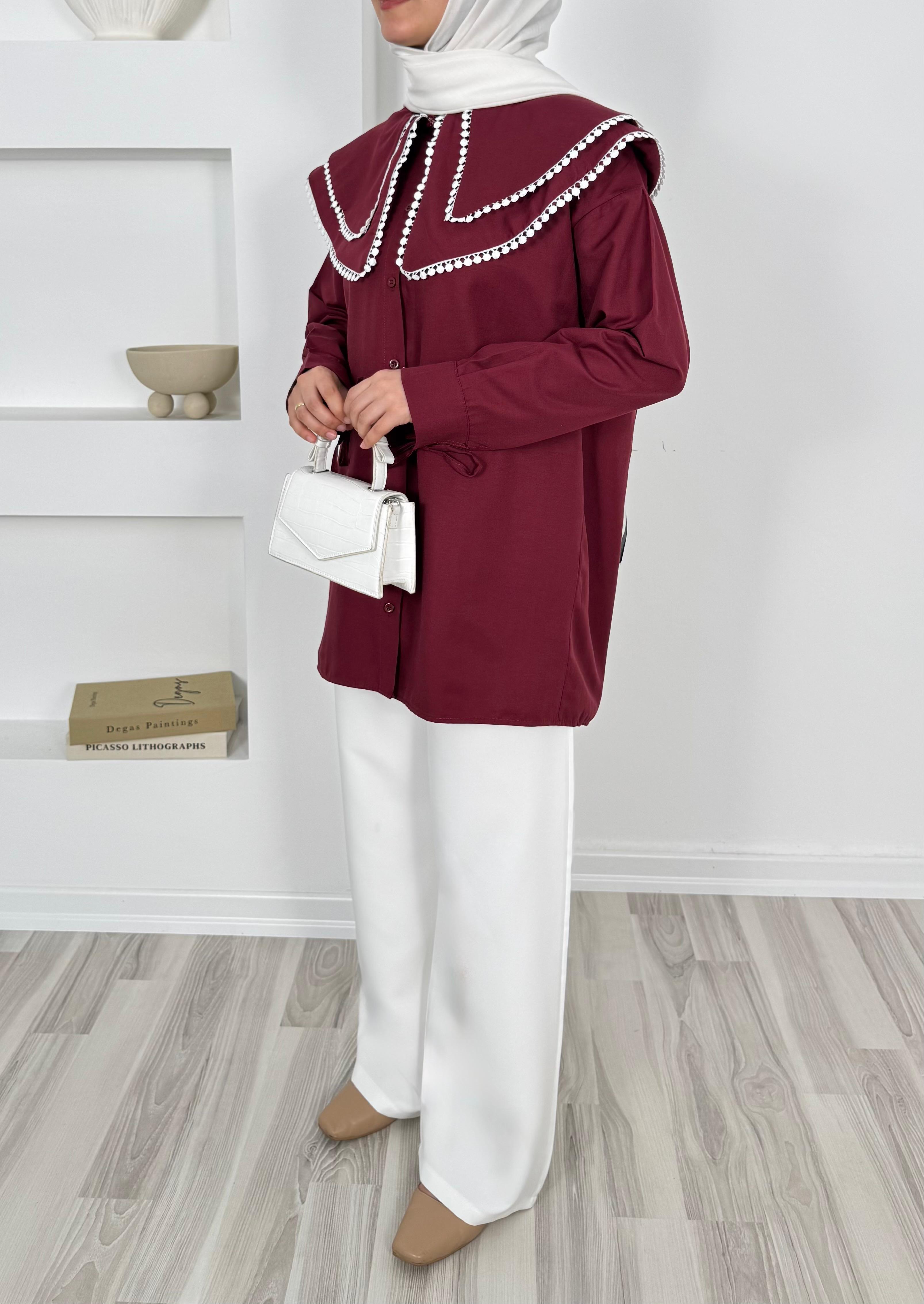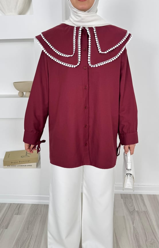 2026-terikoton kumaş bebe yaka tunik-bordo (2026)