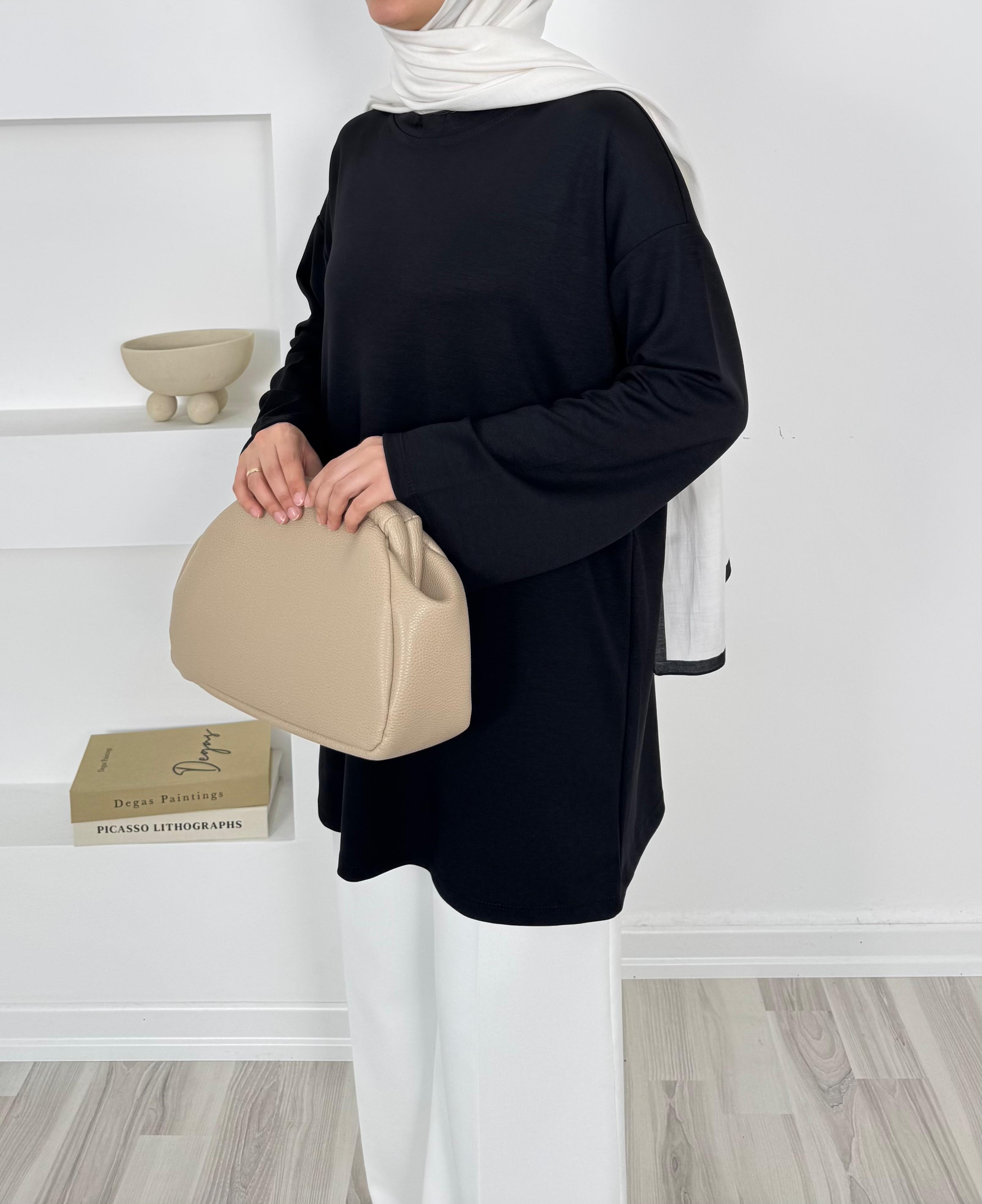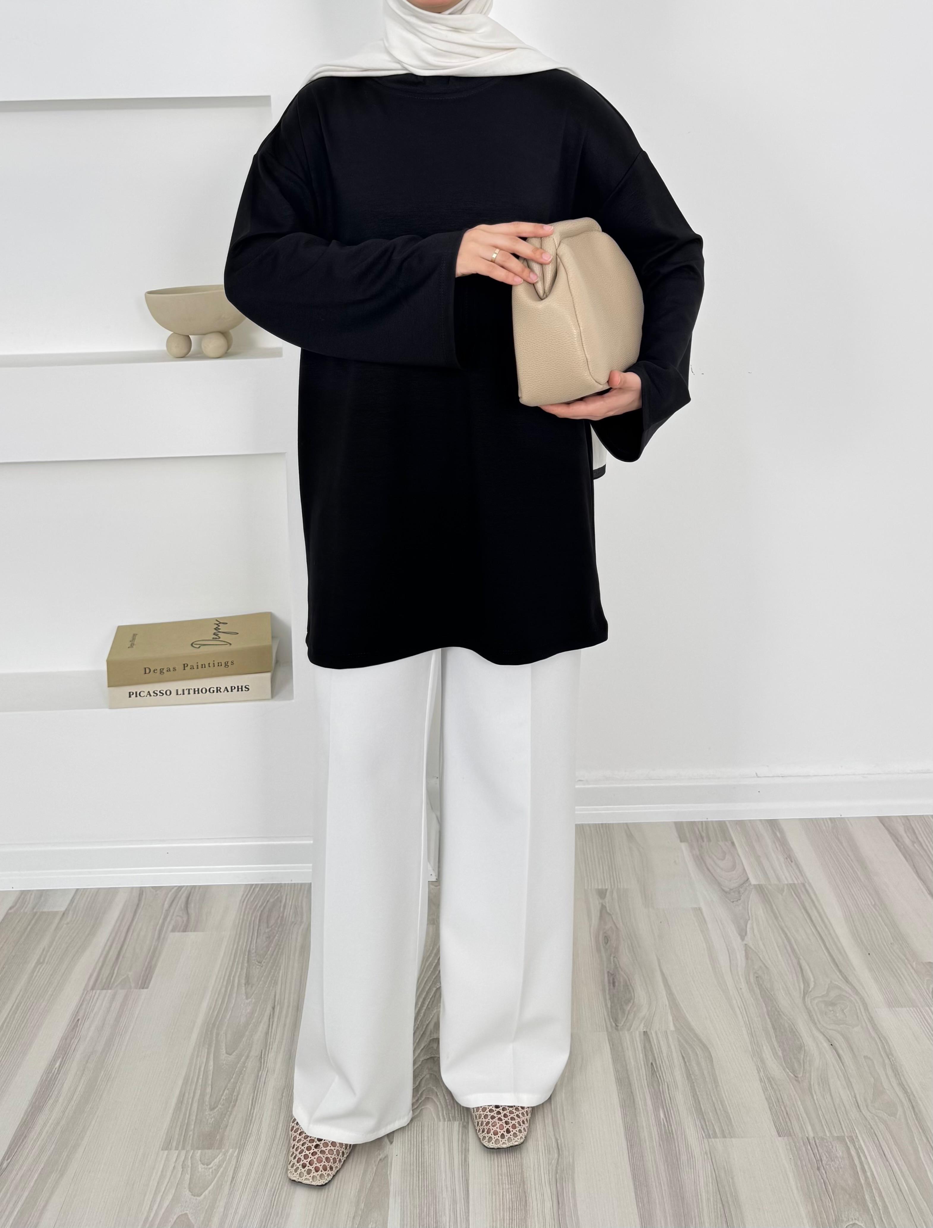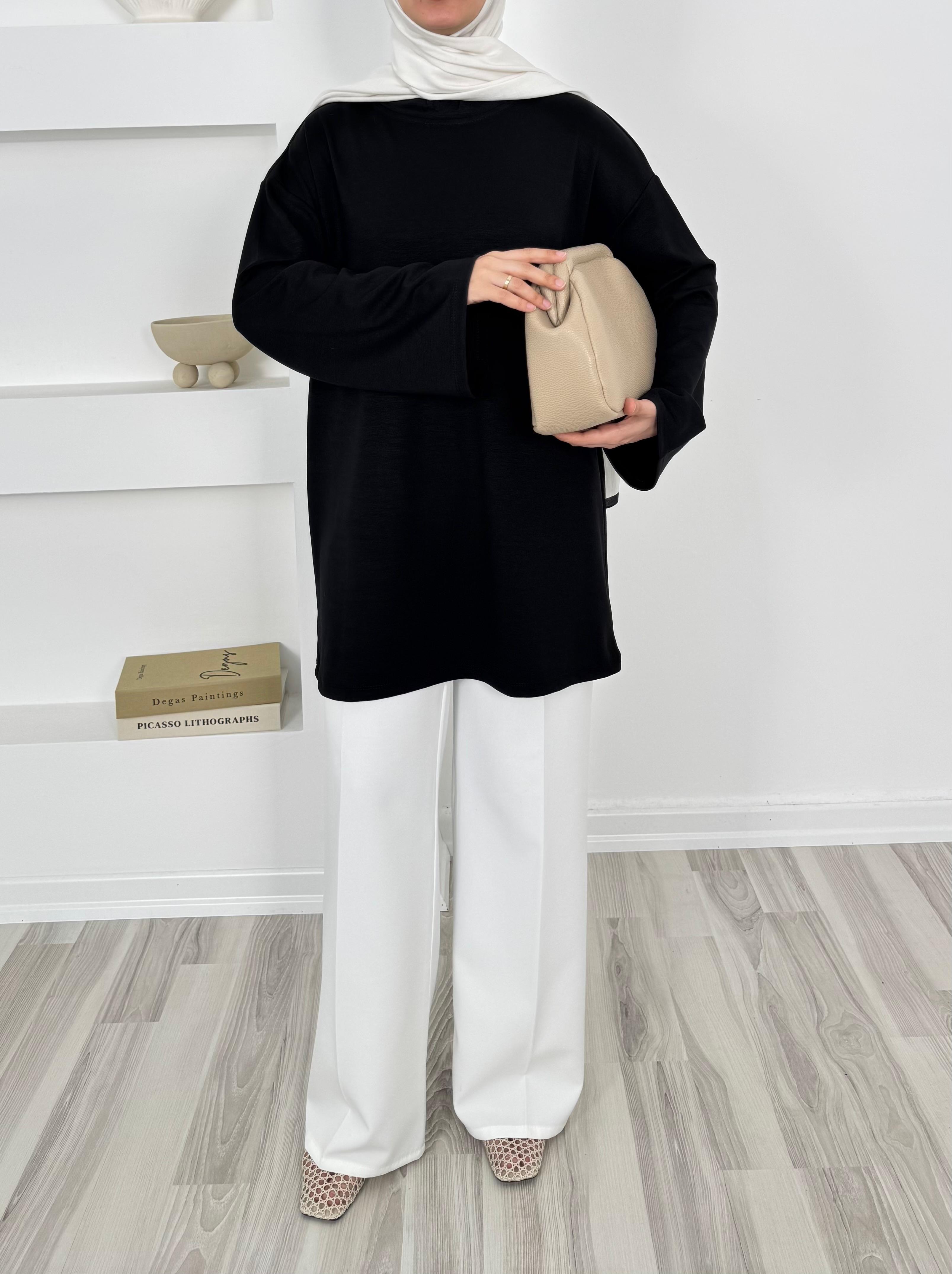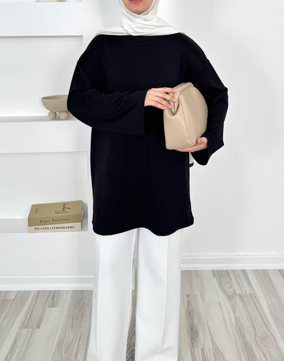 2083-oysho kumaş kolları bol tunik-siyah (2083)